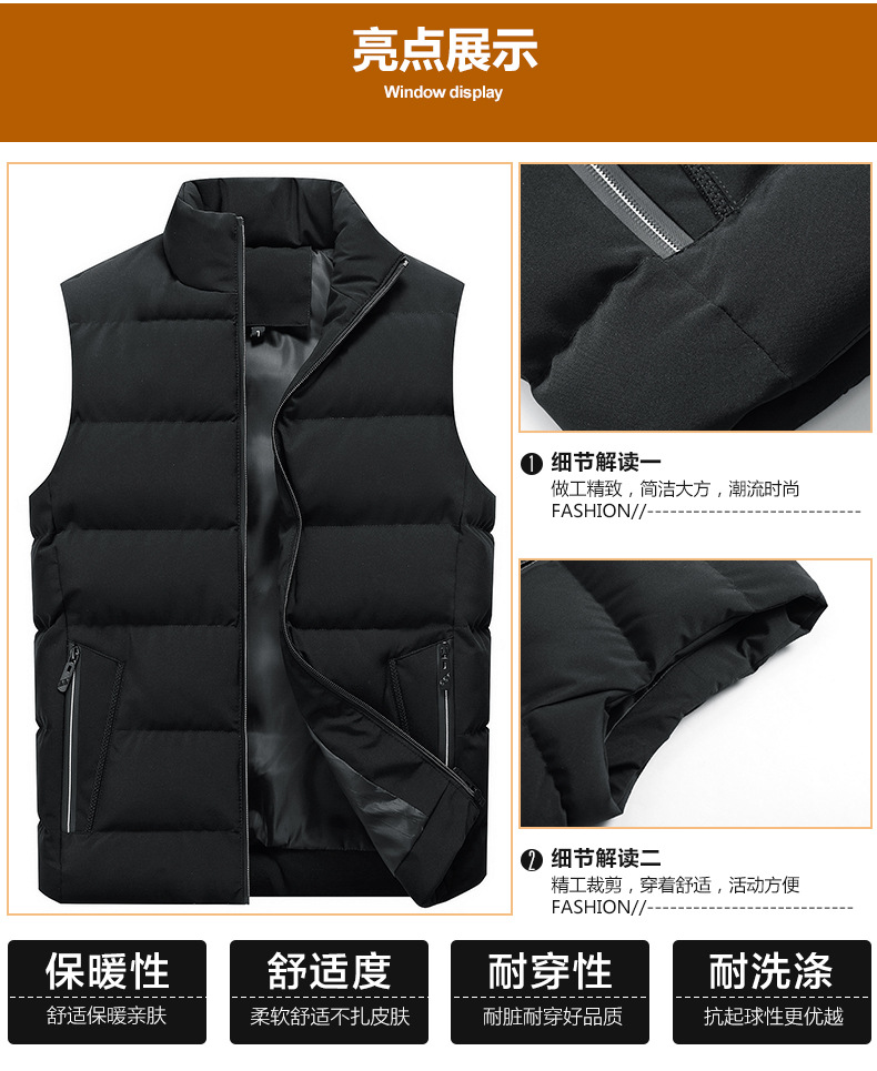 Otoño y invierno nuevo chaleco de ocio de hombre de color sólido chaleco de cuello caliente chaleco de hombro chaleco de algodón transfronterizo de tamaño grande hombre chaleco