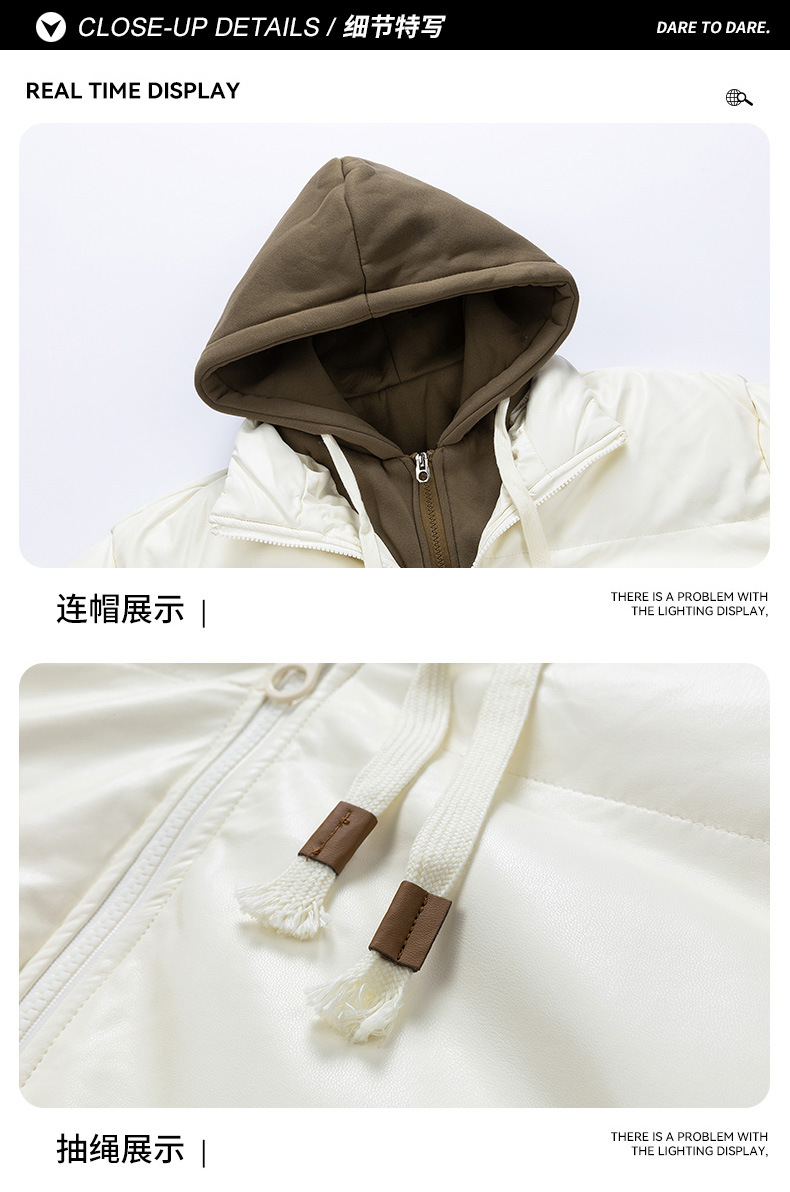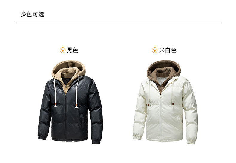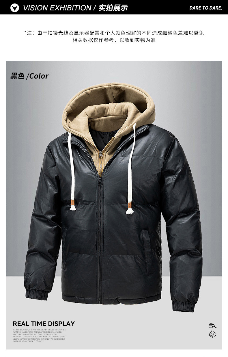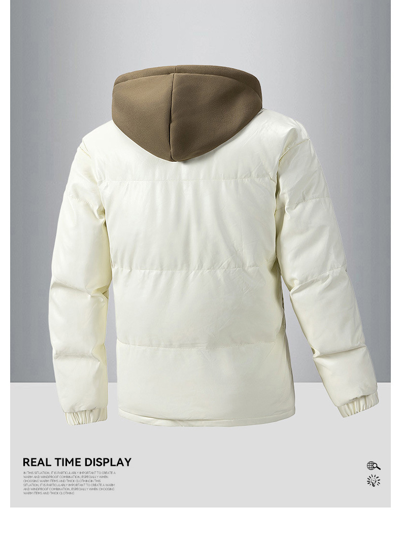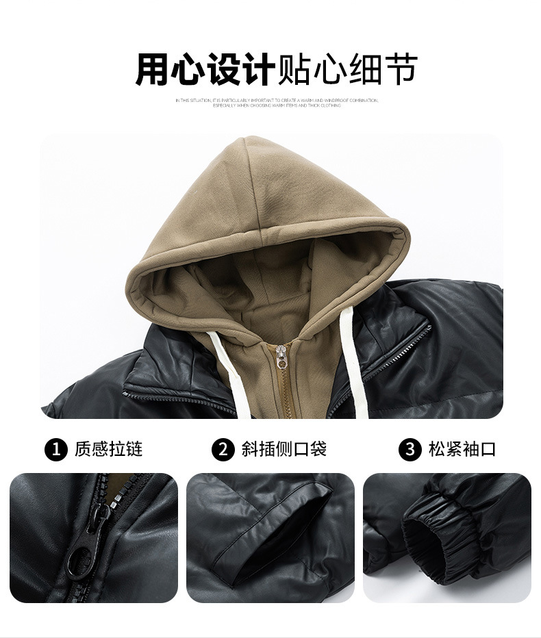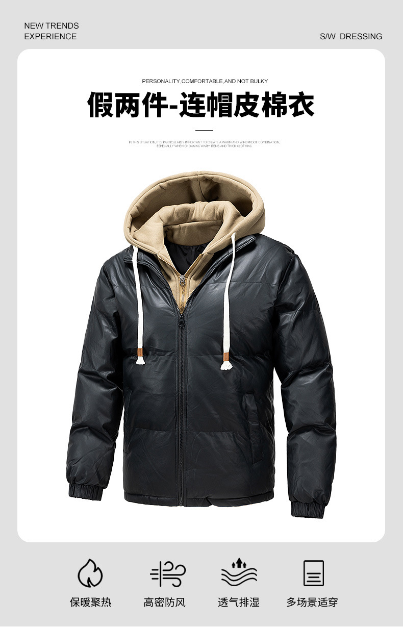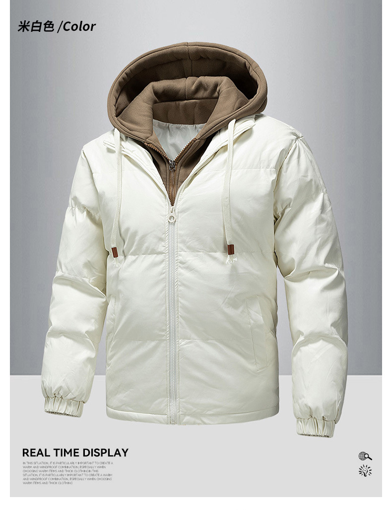 2024 nueva chaqueta acolchada de algodón para hombres, ropa acolchada de plumón gruesa para jóvenes de invierno, dos piezas falsas con capucha, algodón casual de moda