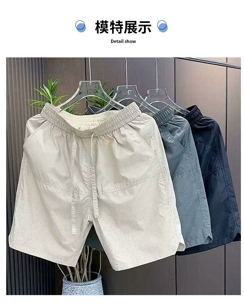 Pantalones cortos casuales de color sólido verano nuevo estilo delgado perforado transpirable pantalones de cinco puntos pantalones sueltos casuales de cinco puntos