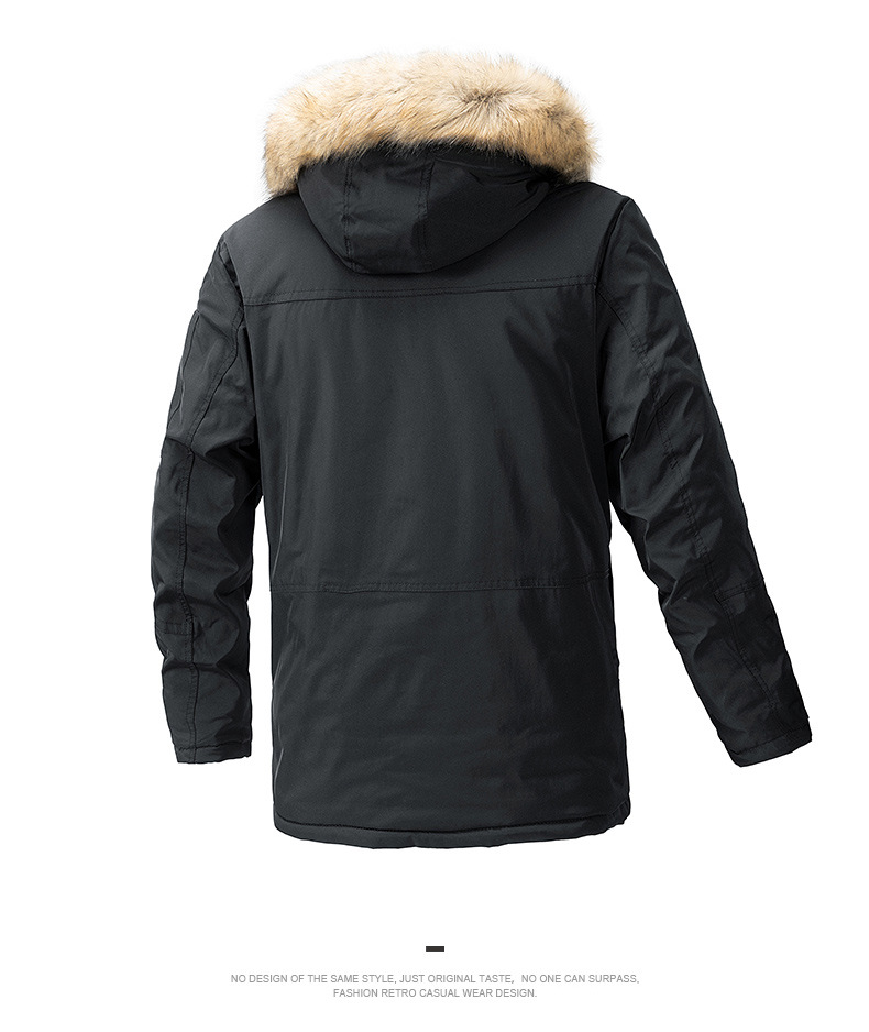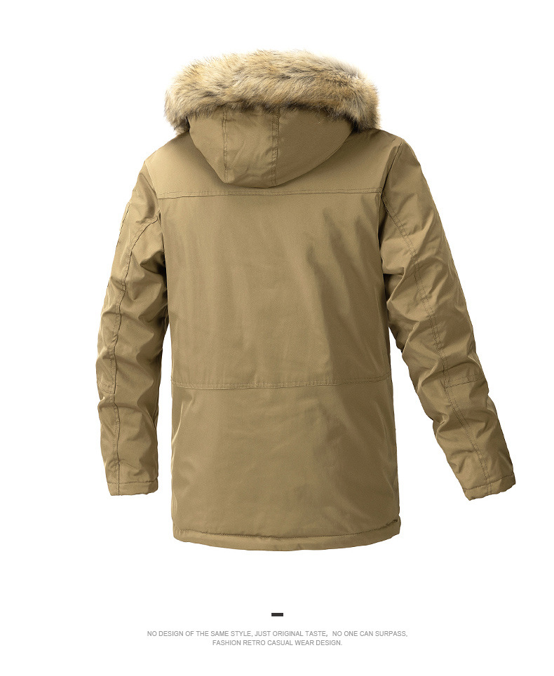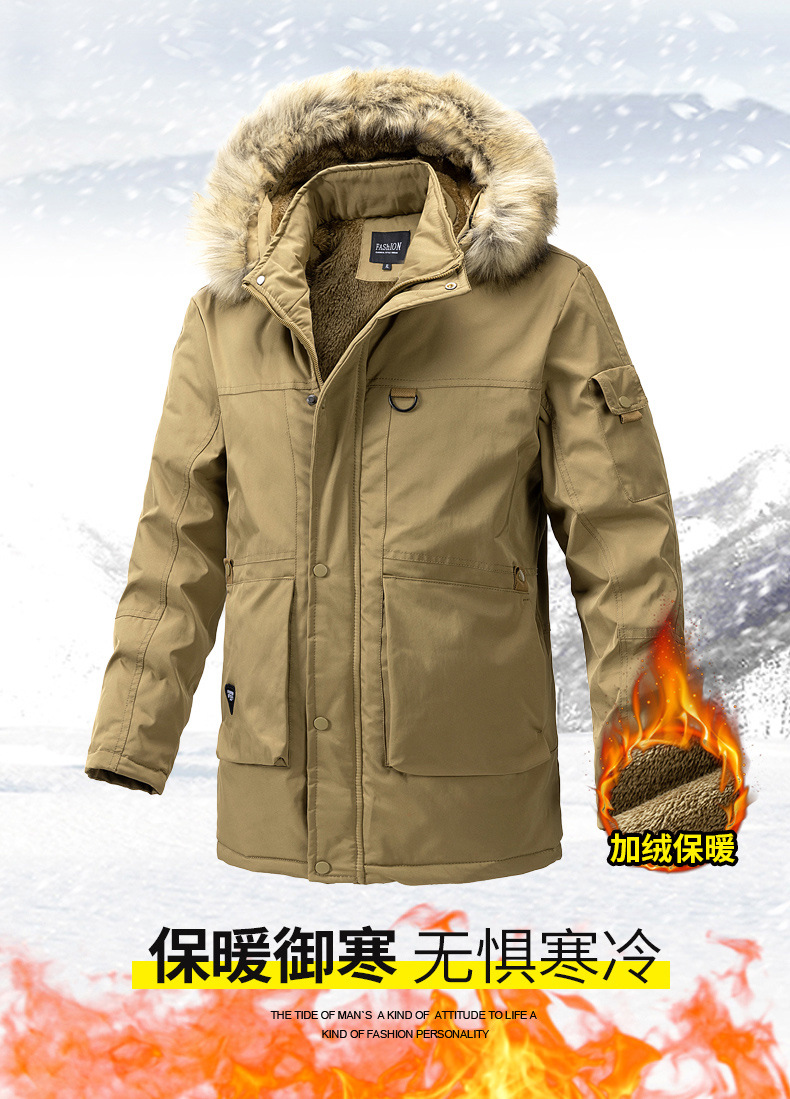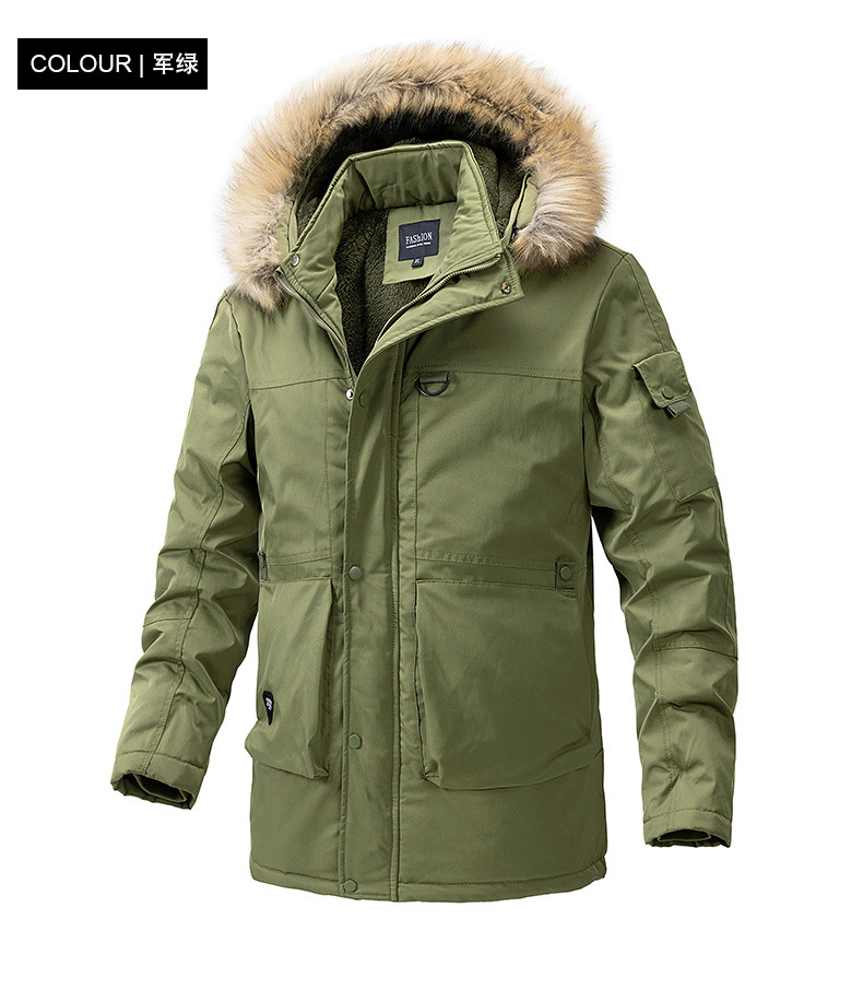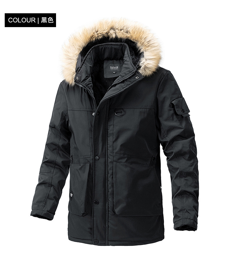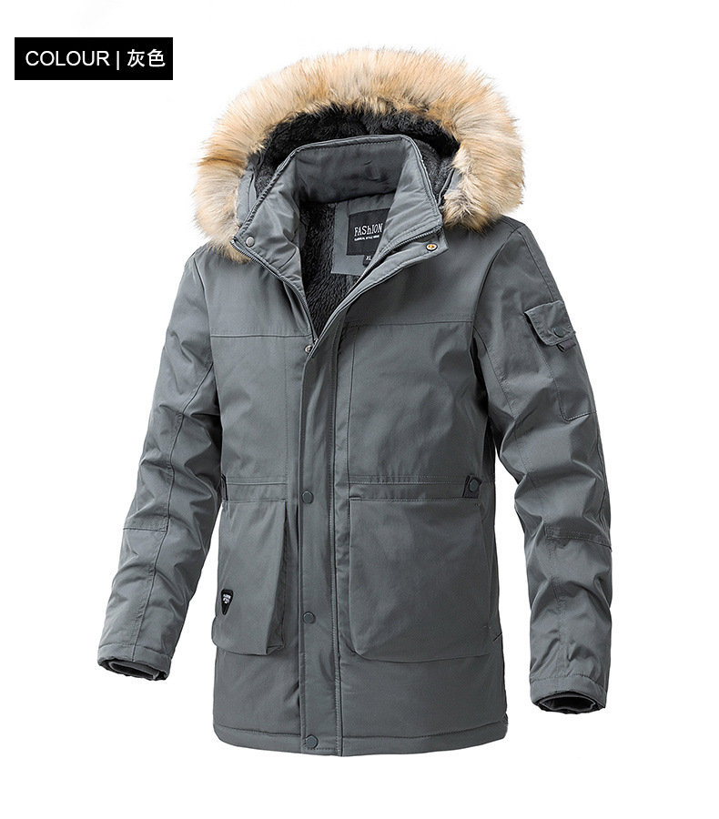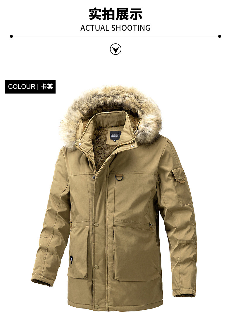 2023 otoño e invierno nuevo estilo suelto, grueso, cálido y frío, cuello de piel con capucha, chaqueta de algodón de todo fósforo