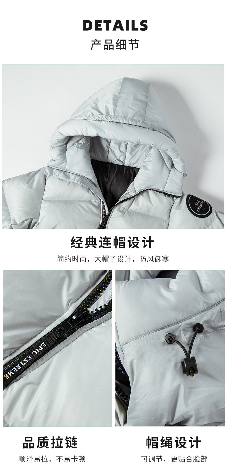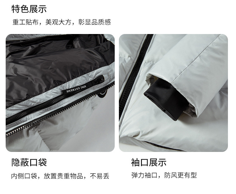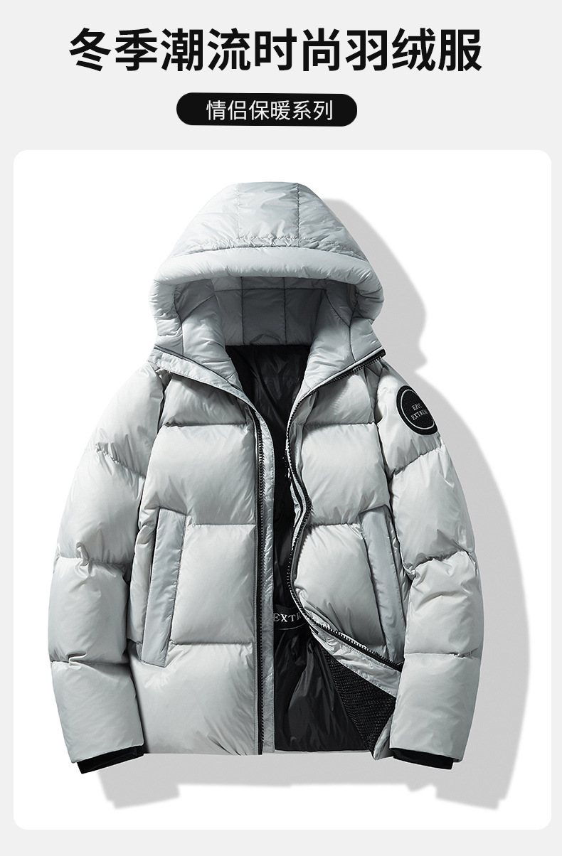 Hombres y mujeres del mismo estilo otoño e invierno pareja de terciopelo grueso resistente a los diamantes 80% terciopelo de pato blanco chaqueta deportiva con capucha cálida a prueba de viento