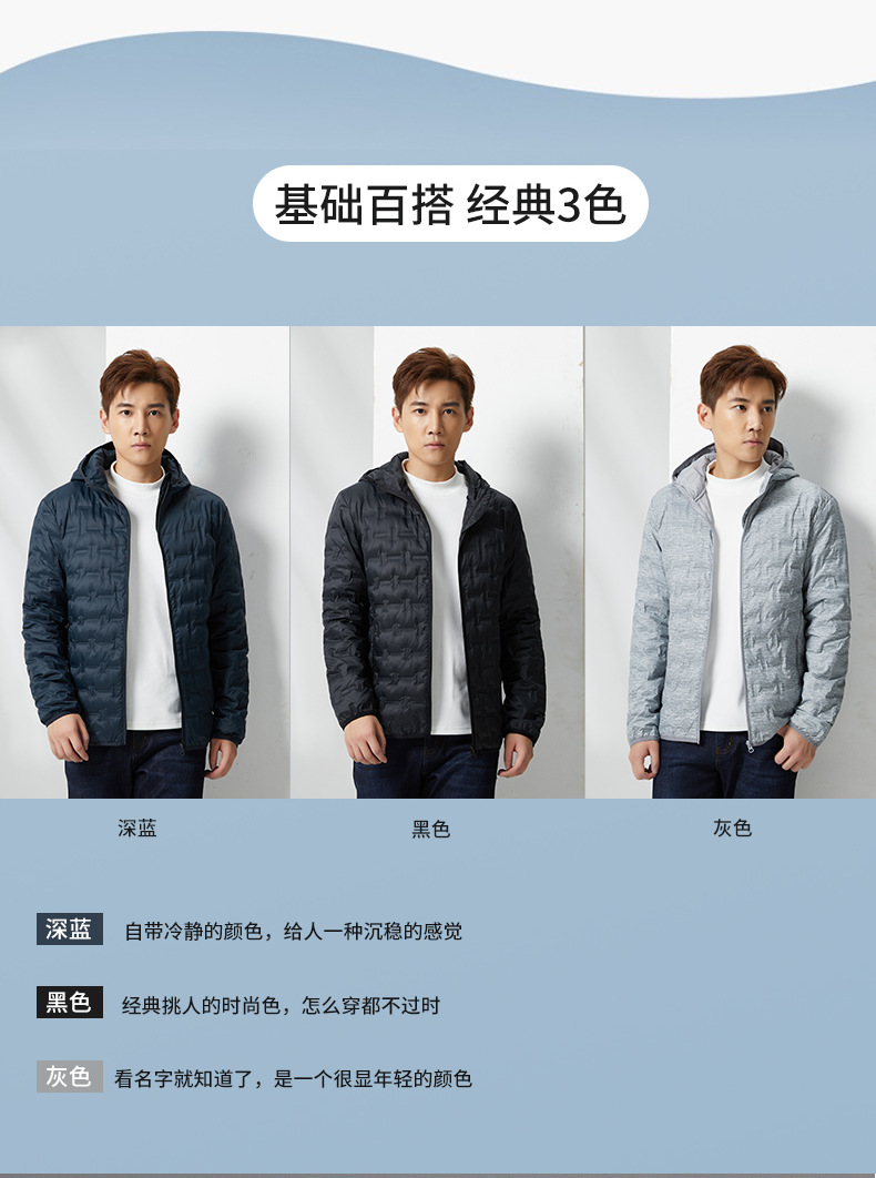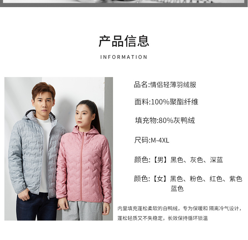 Hombre Omi Thermal Printer 2024 Nuevo invierno chaqueta ligera chaqueta con capucha pareja femenina