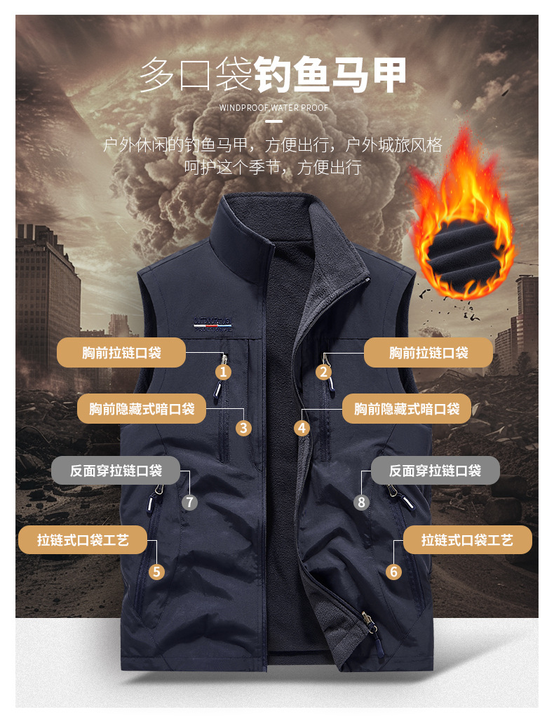 Nuevo chaleco al aire libre transfronterizo hombre multibolsillo chaleco de herramientas de mediana edad suelta chaleco de ocio chaleco 3908