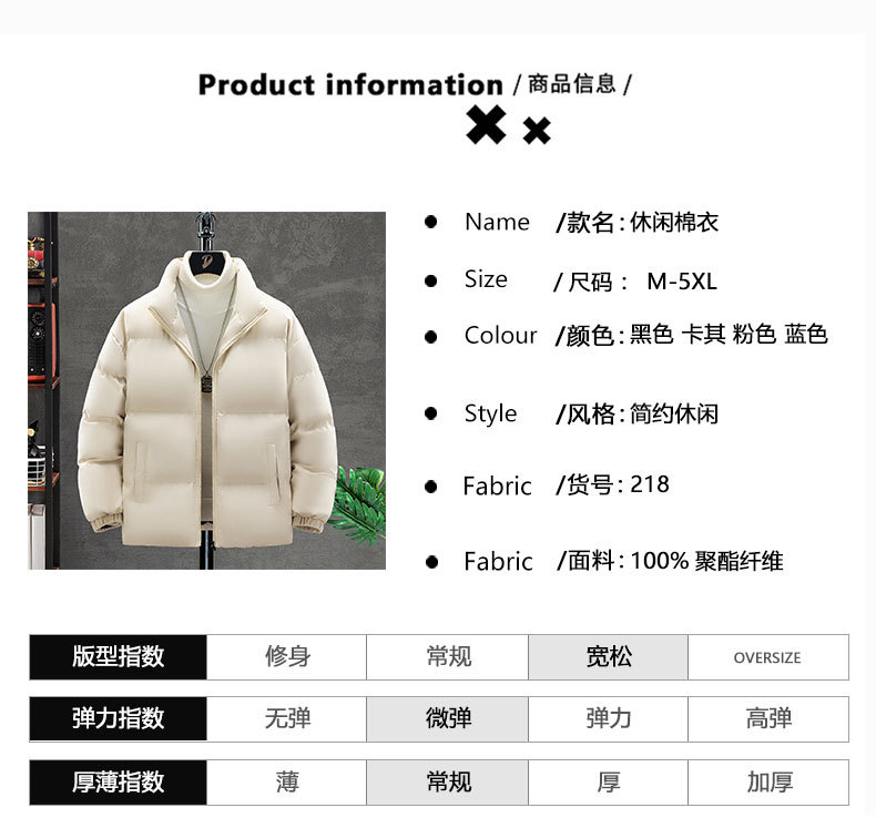 2024 nueva chaqueta de algodón principal para hombres, chaqueta de algodón caliente gruesa y suelta de cuello vertical, chaqueta de algodón frío