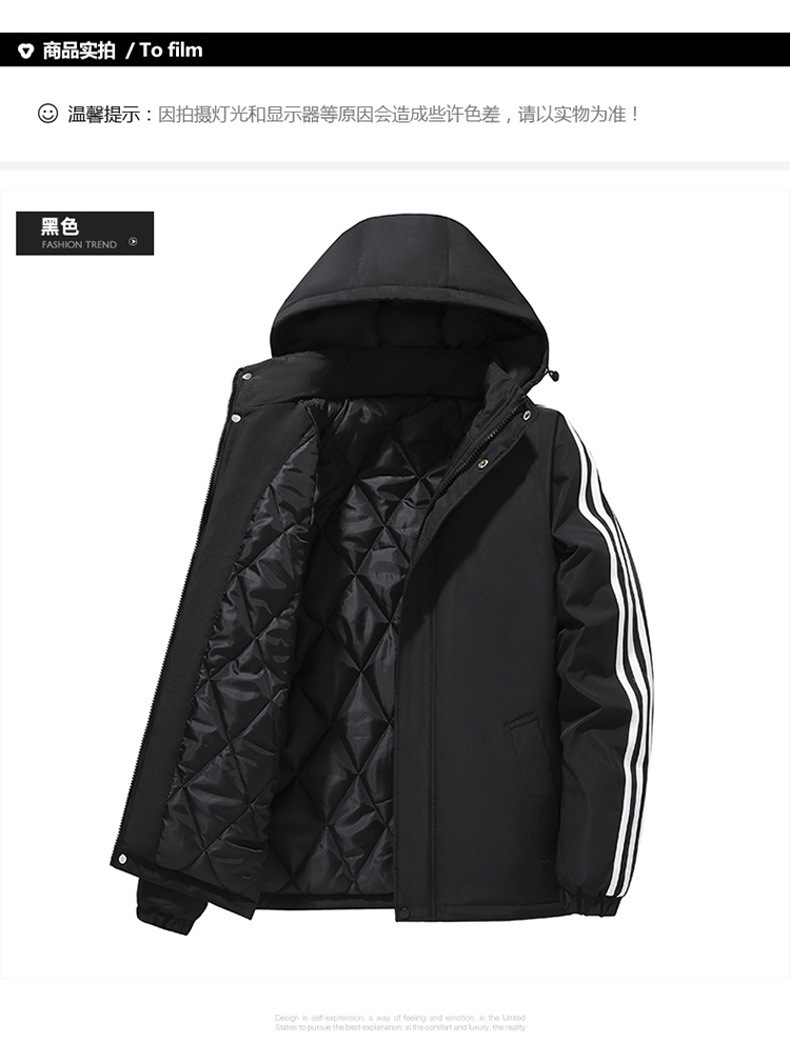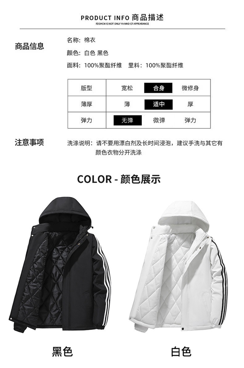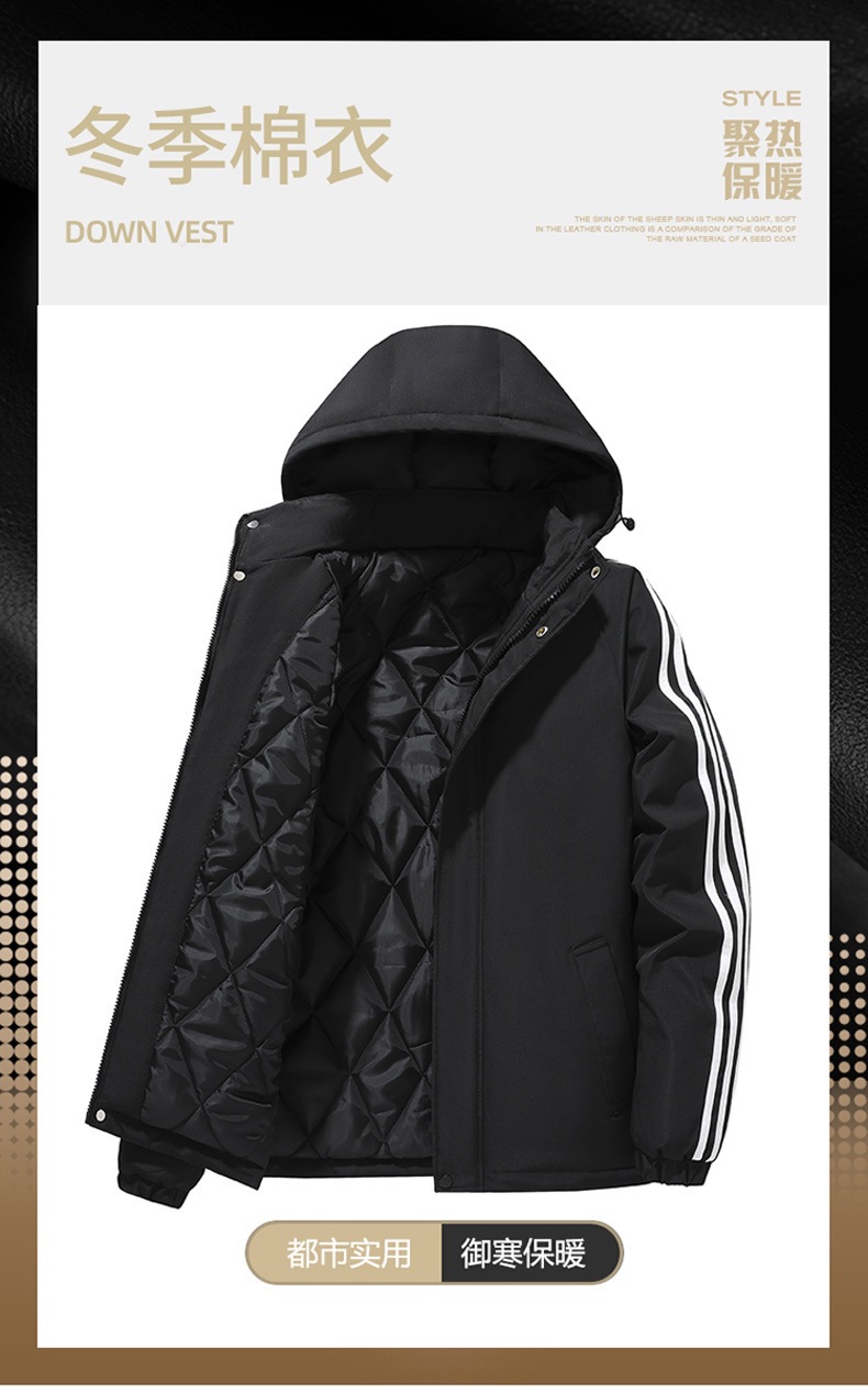 Capa de algodón de invierno para hombres gruesa con capuzas de tres barras de algodón sombrero desmontable chaqueta de algodón suelta de gran tamaño calentamiento ropa de pan casual