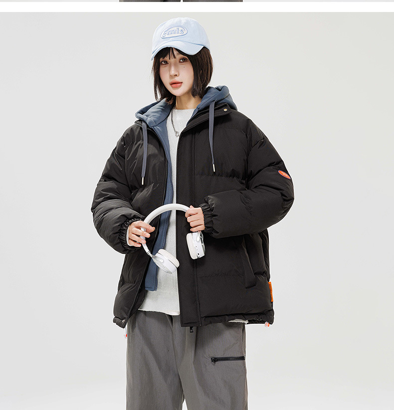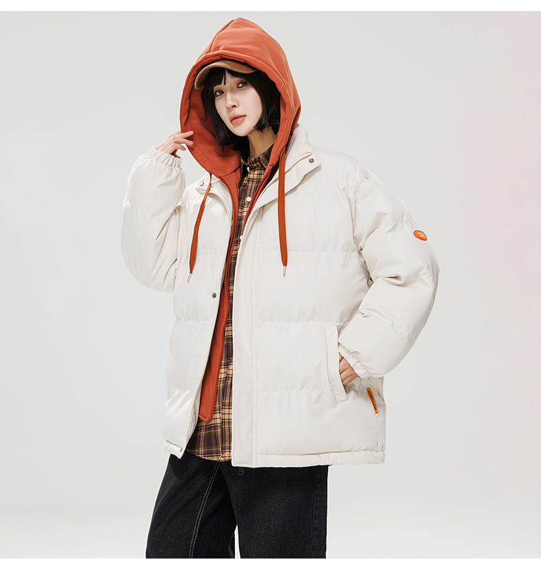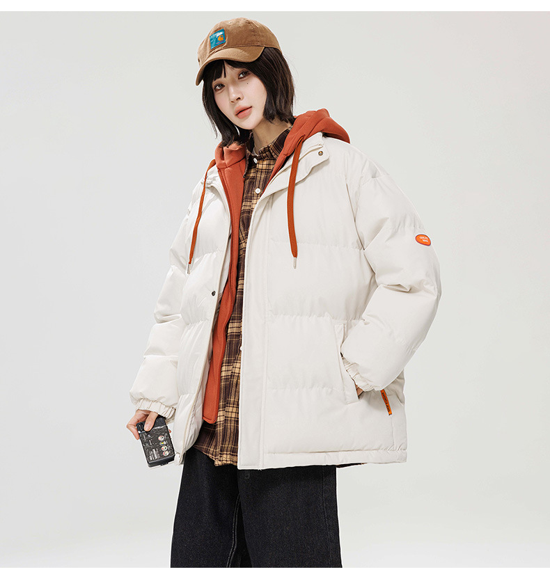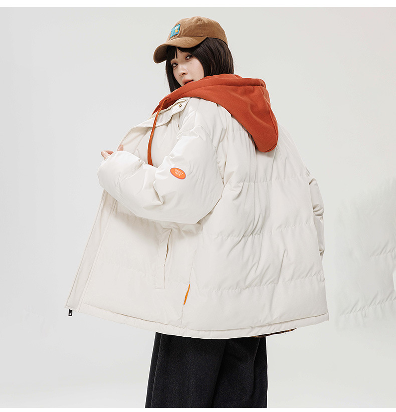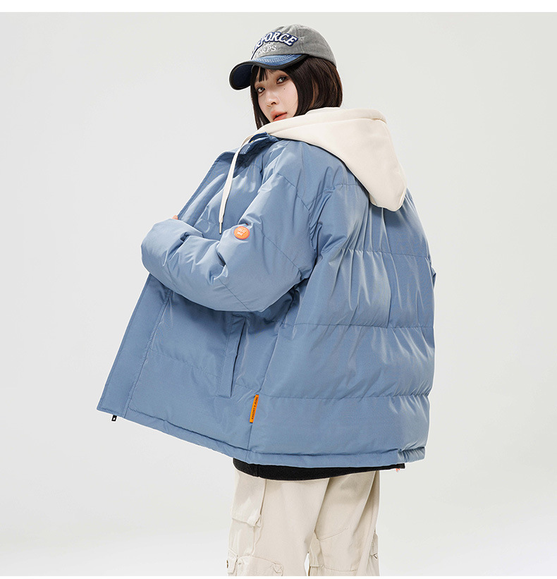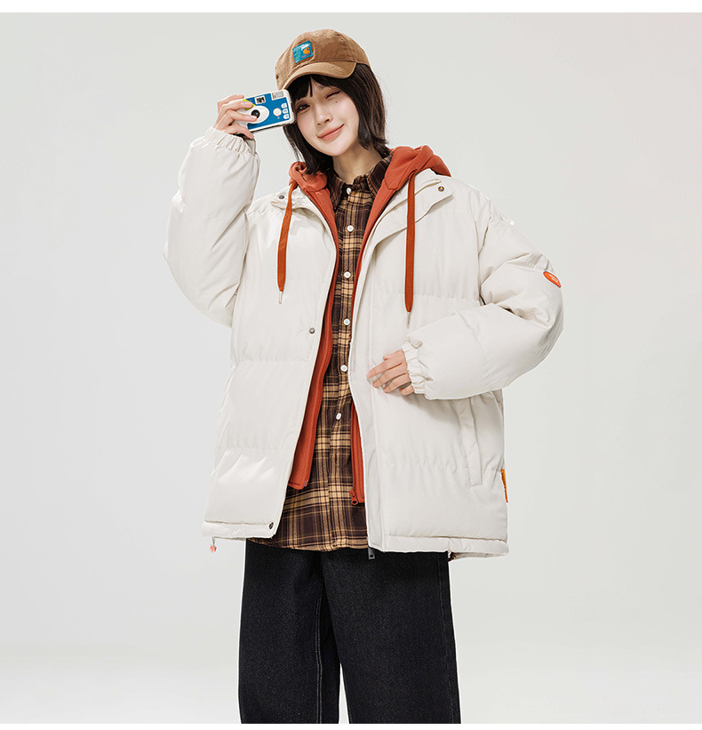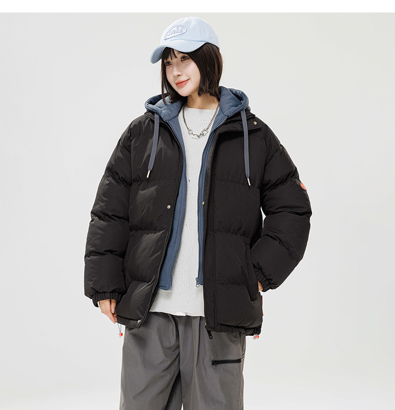 2024 invierno nuevo engrosado calentamiento con capuchón ropa de algodón suelta de tamaño grande juvenil falso de dos chaquetas casuales de algodón