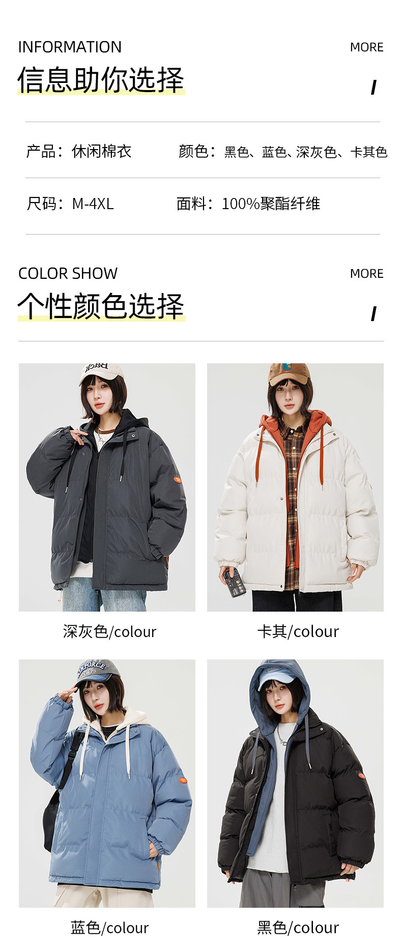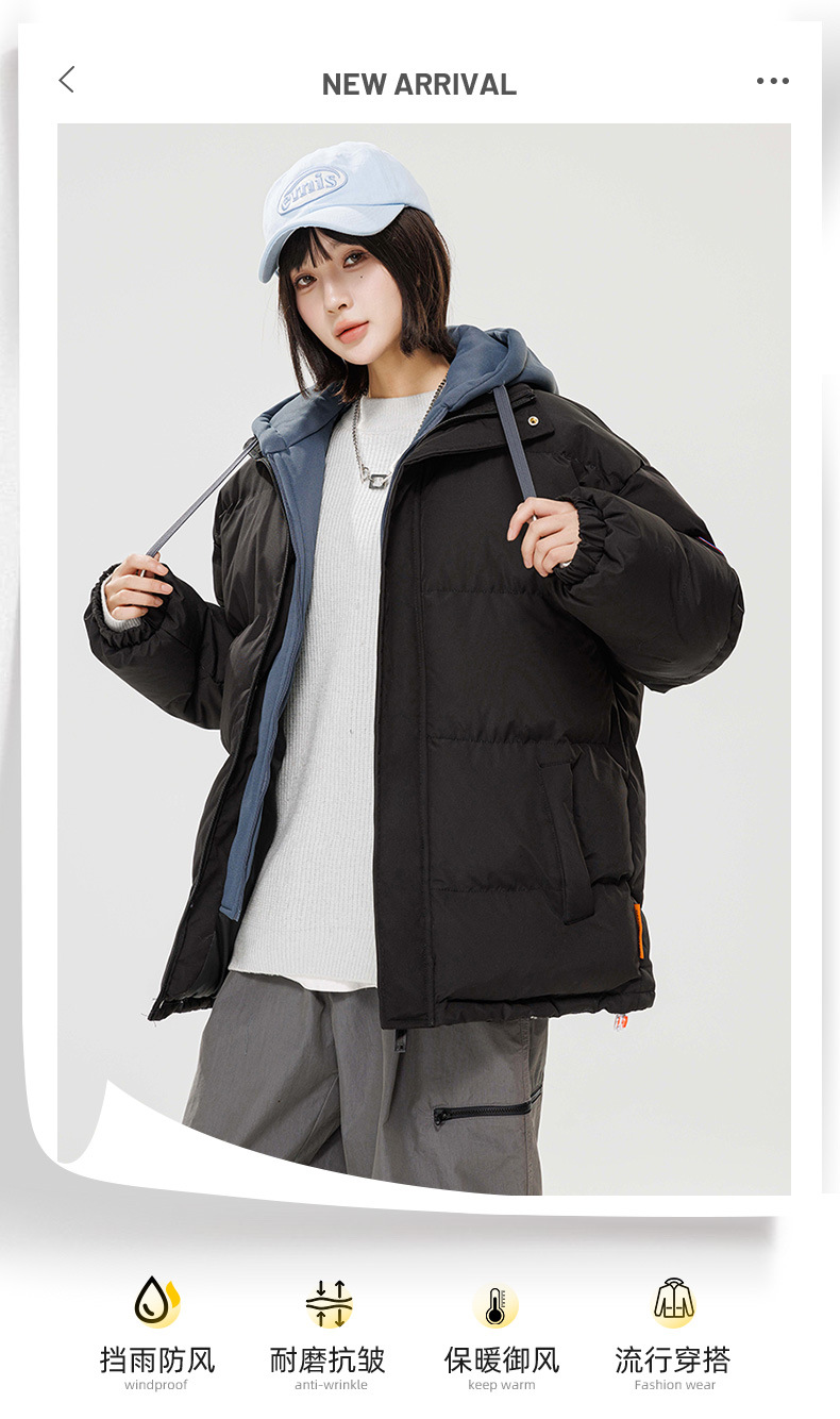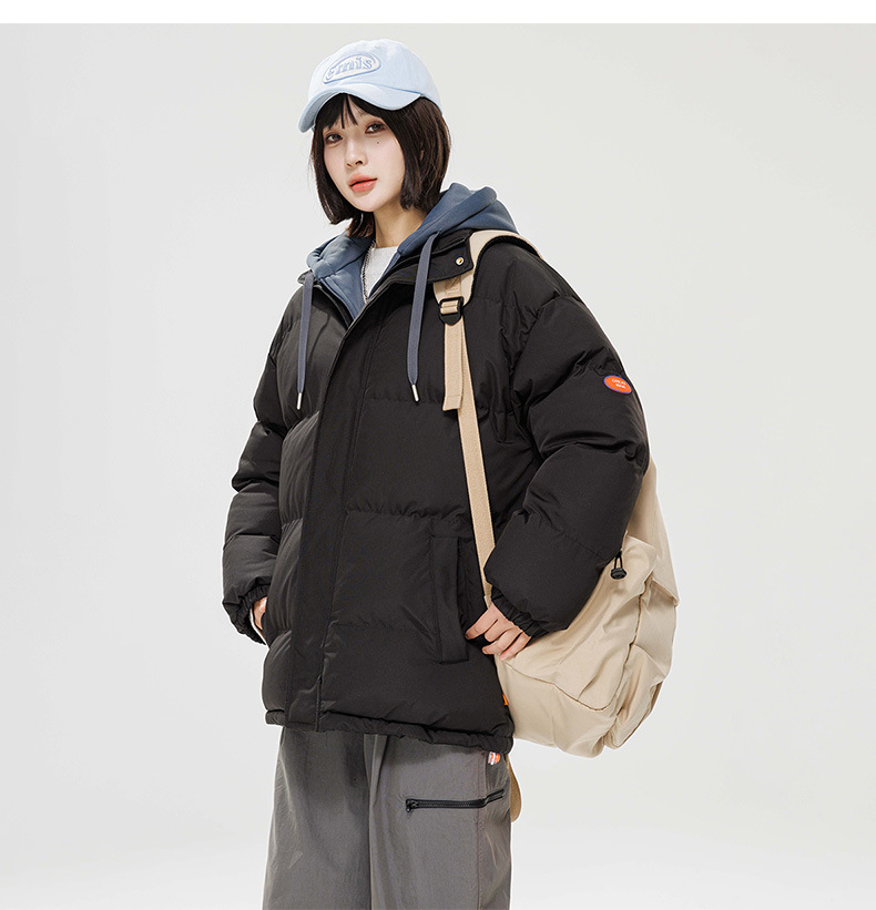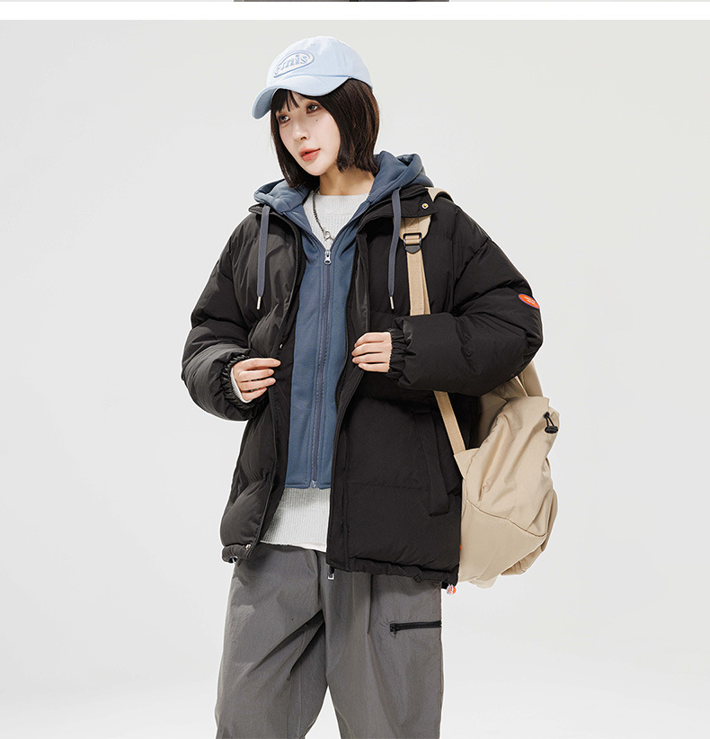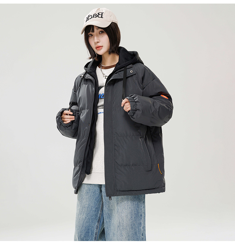 2024 invierno nuevo engrosado calentamiento con capuchón ropa de algodón suelta de tamaño grande juvenil falso de dos chaquetas casuales de algodón