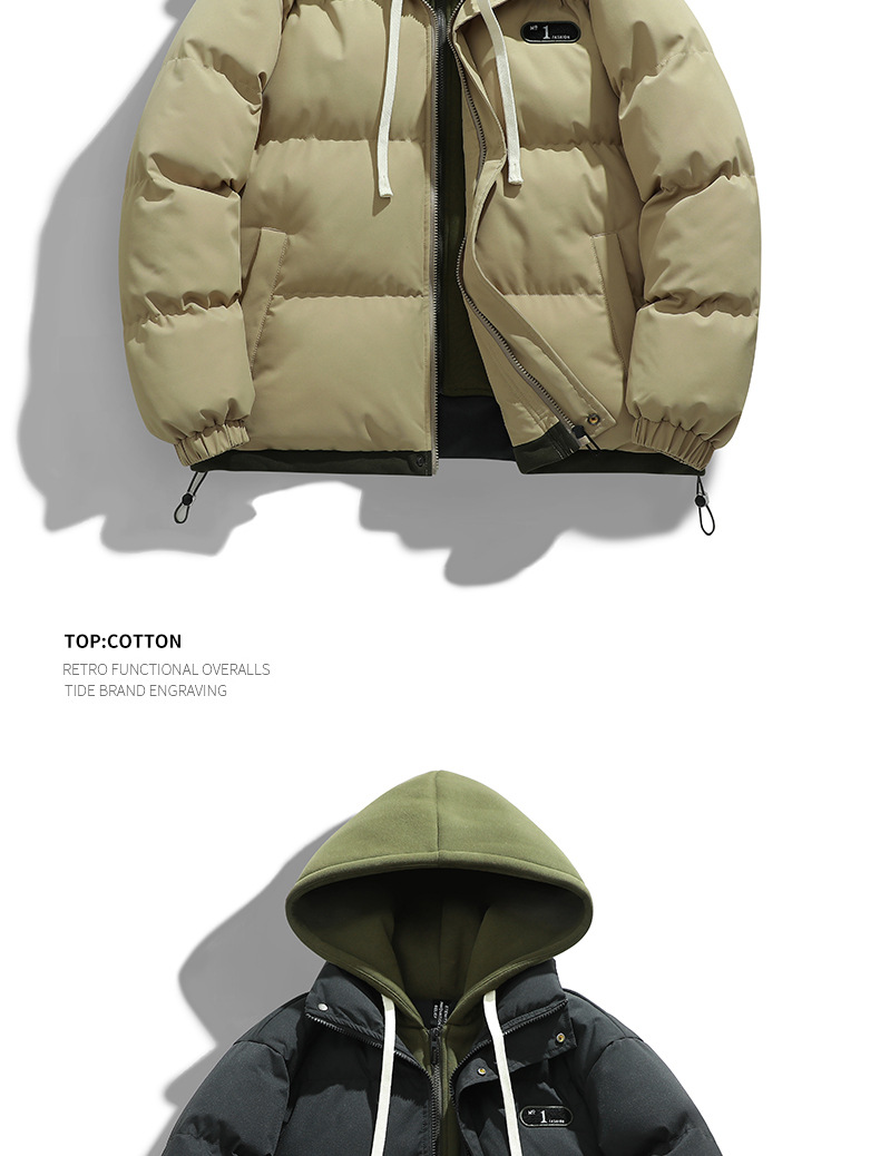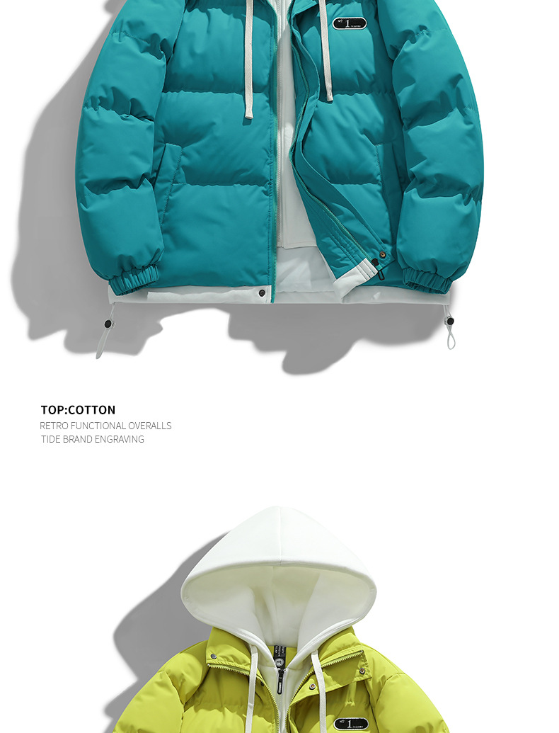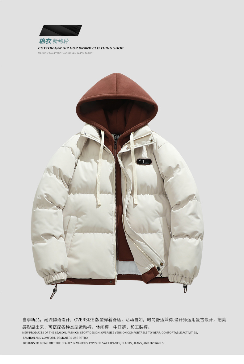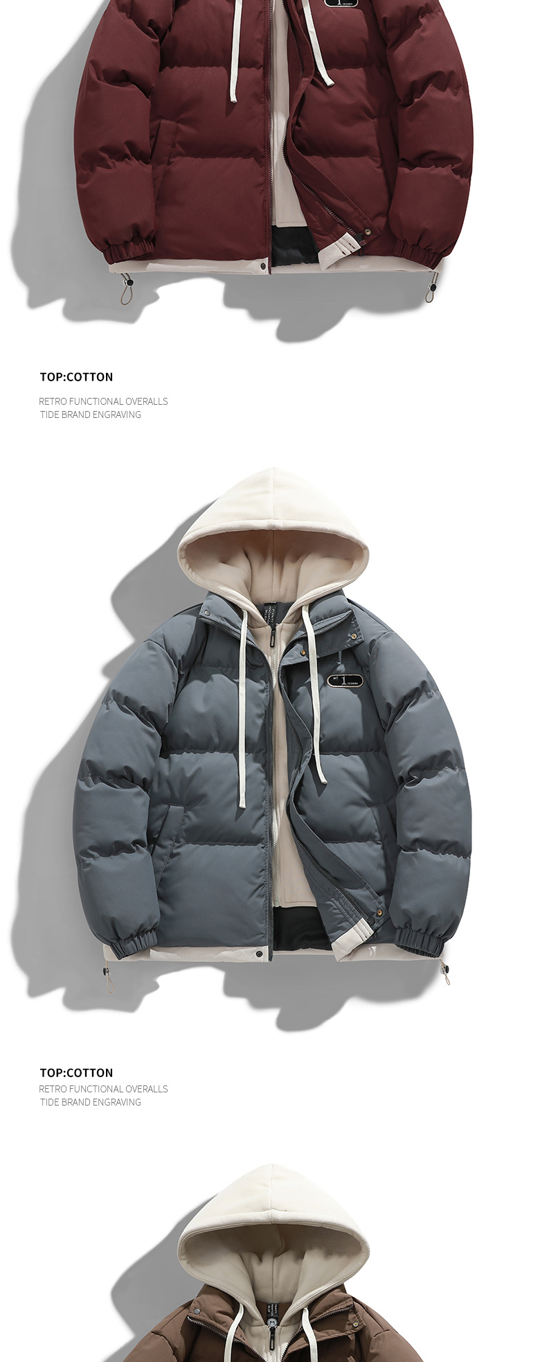Falso de dos piezas de algodón hombre invierno 2023 nuevo suelto chaqueta de algodón de color caramelo chaqueta de invierno de hombre