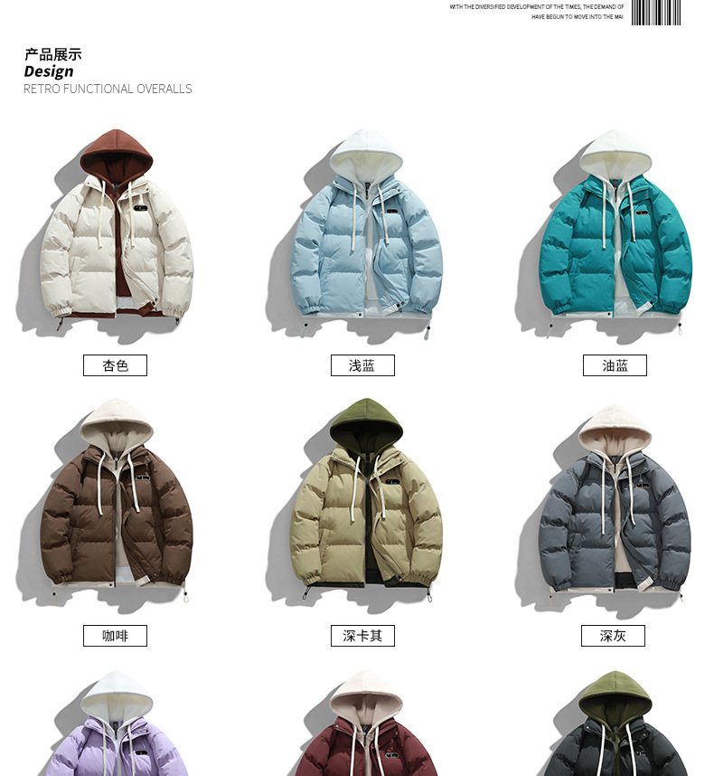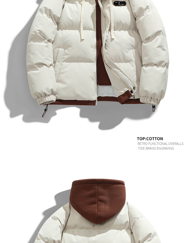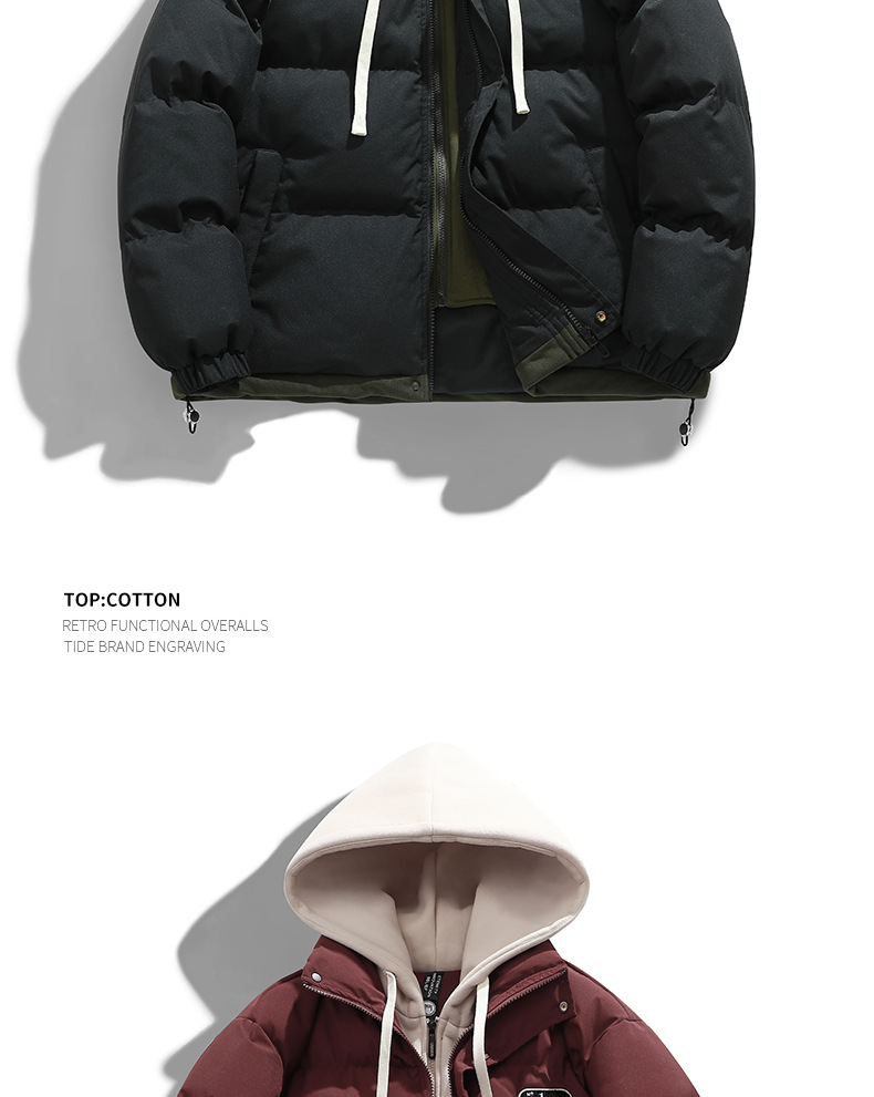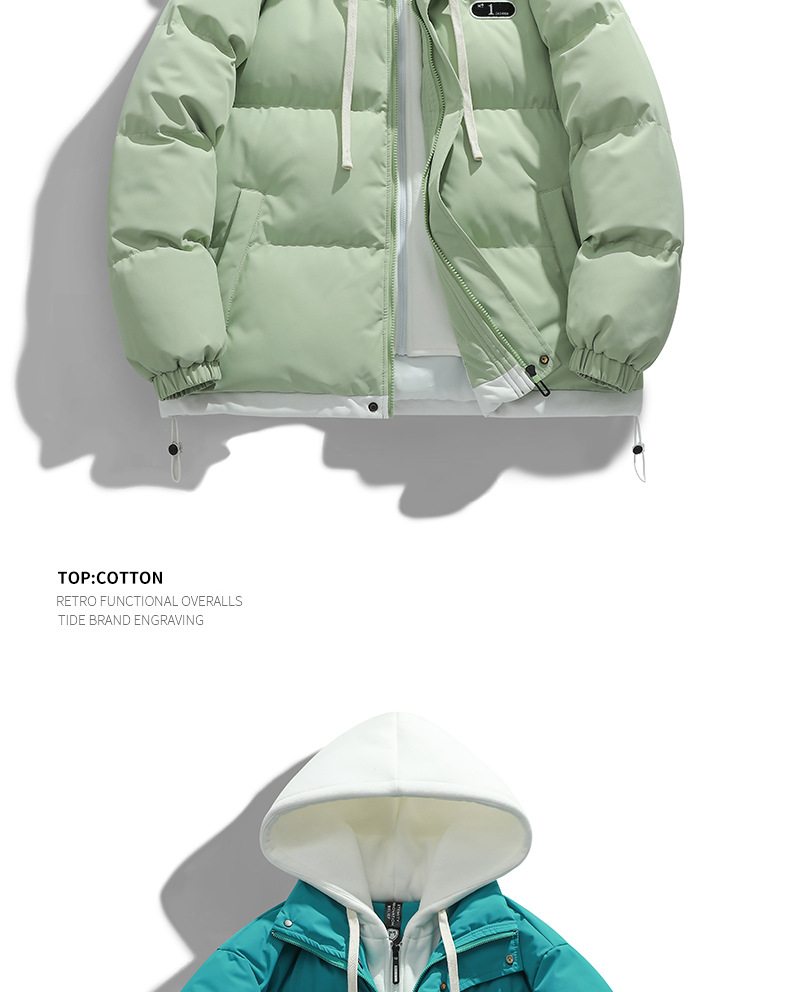 Falso de dos piezas de algodón hombre invierno 2023 nuevo suelto chaqueta de algodón de color caramelo chaqueta de invierno de hombre