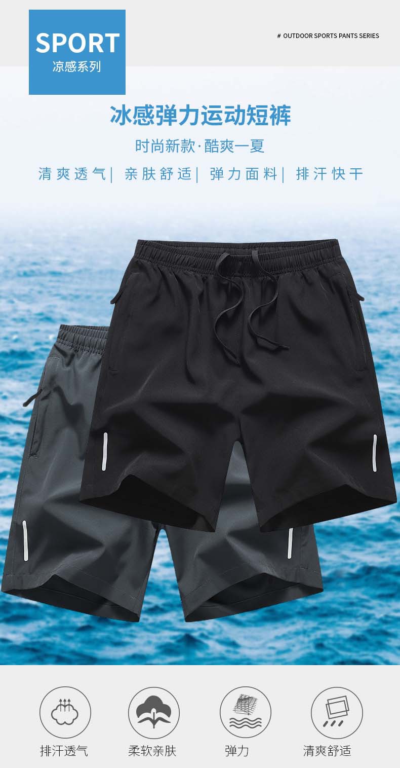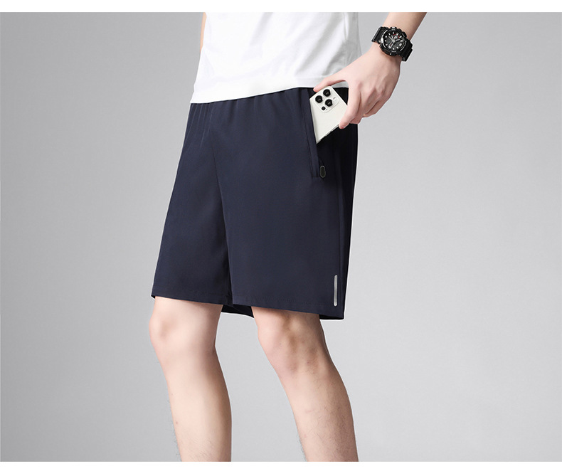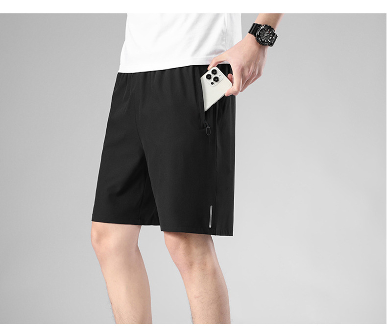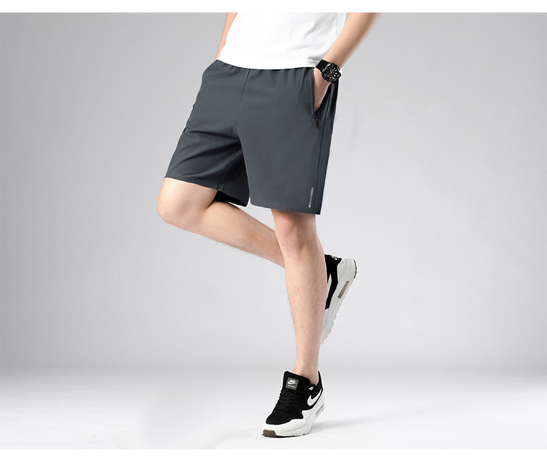 Pantalones cortos deportivos simples para hombres de verano delgados hielo rápido secado pantalones de ejercicio sueltos respirables pantalones casuales de cinco puntos