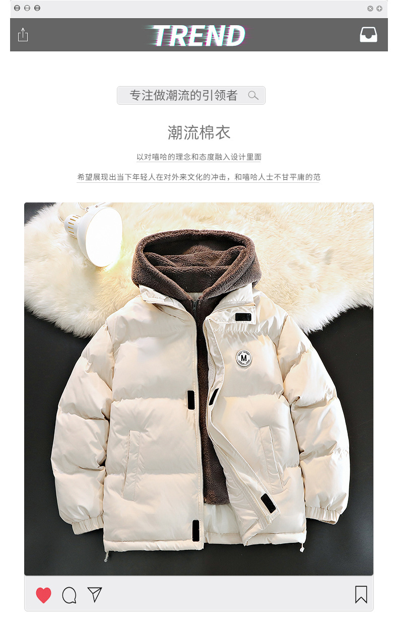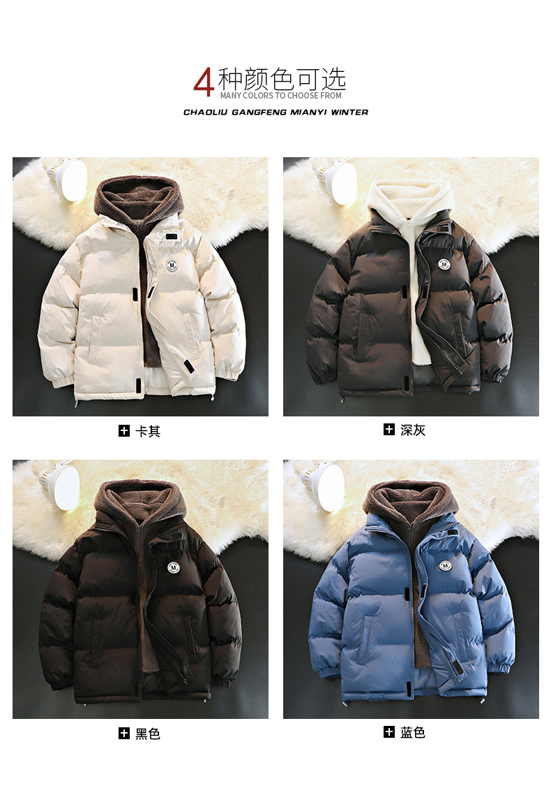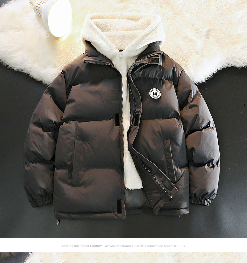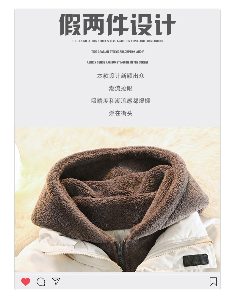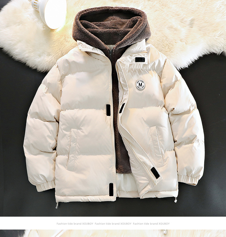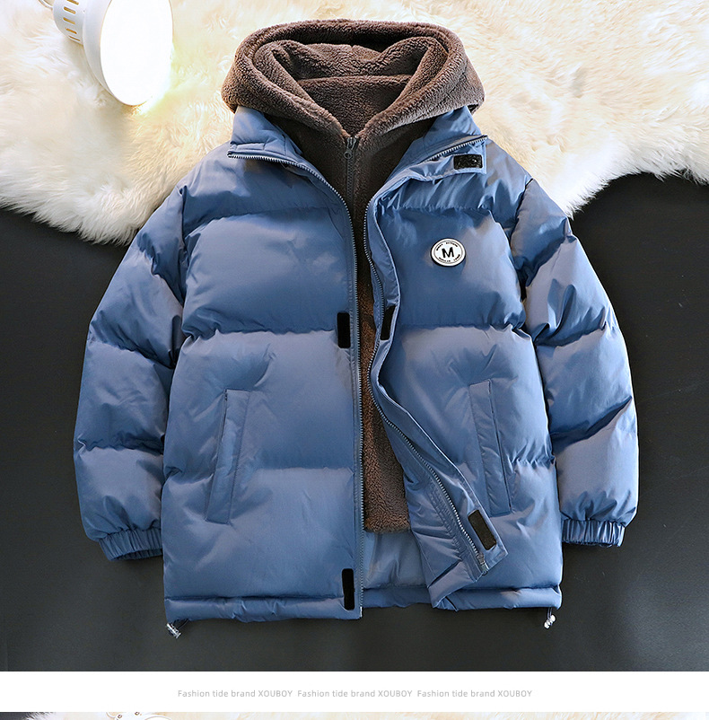 Otoño y invierno nuevo diseño de capuzas sueltas de tamaño grande falso de dos piezas de abrigo de moda adolescente casual grueso abrigo de algodón cálido
