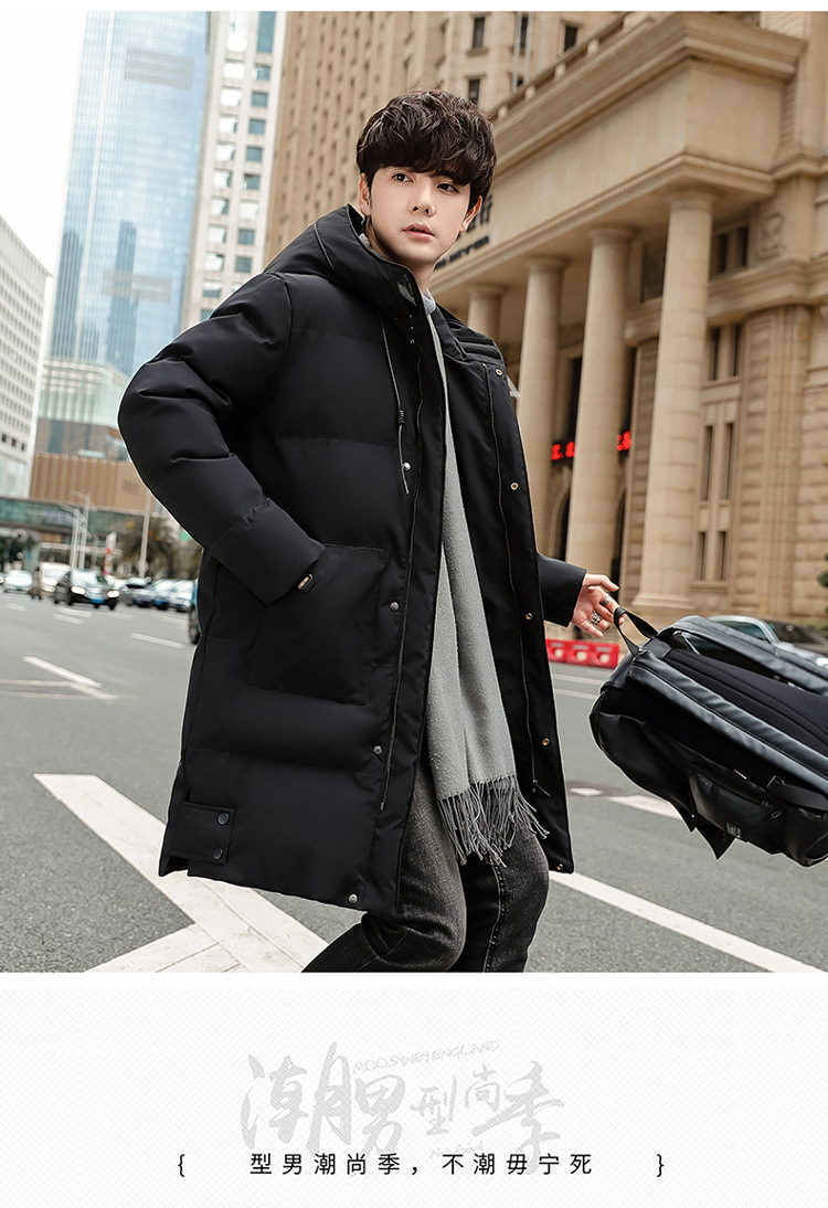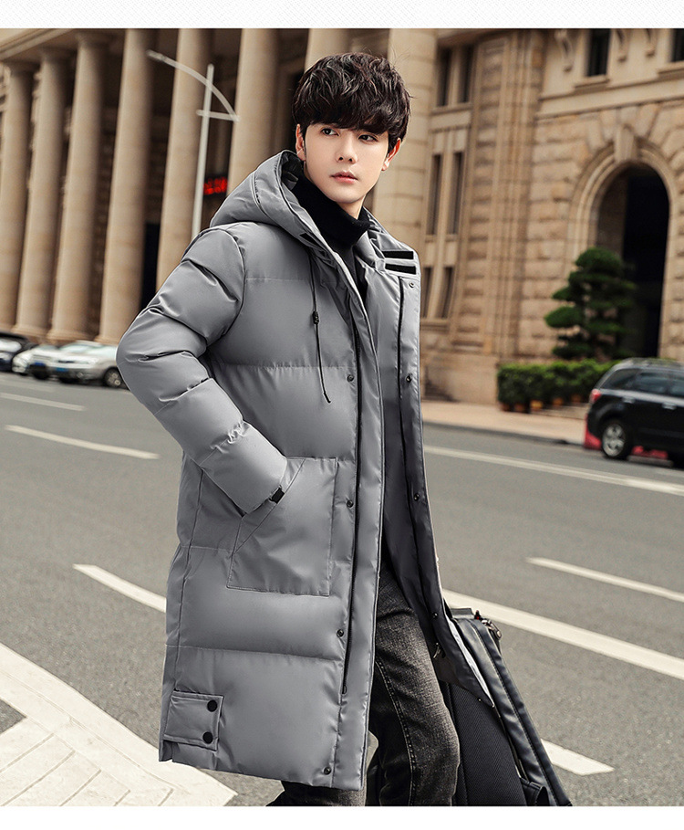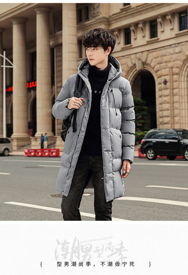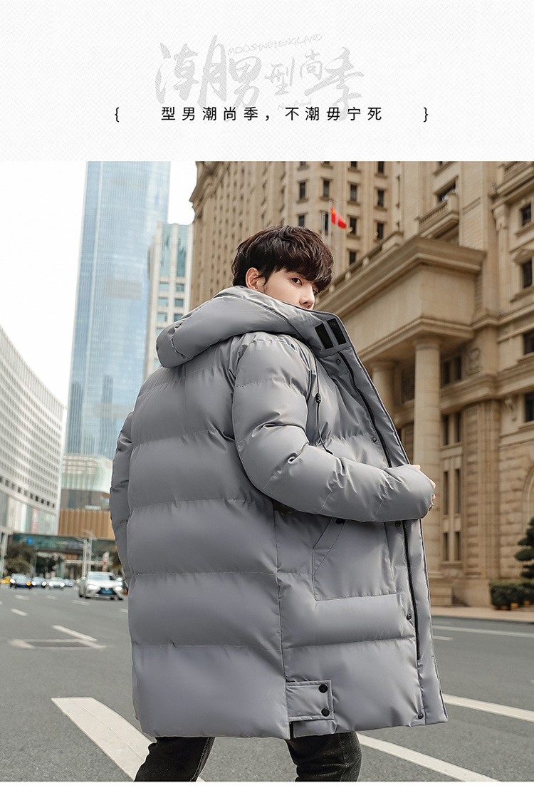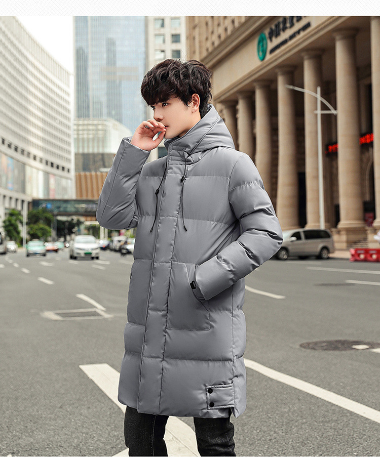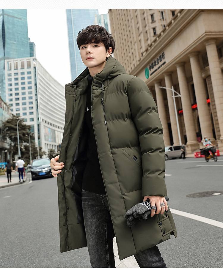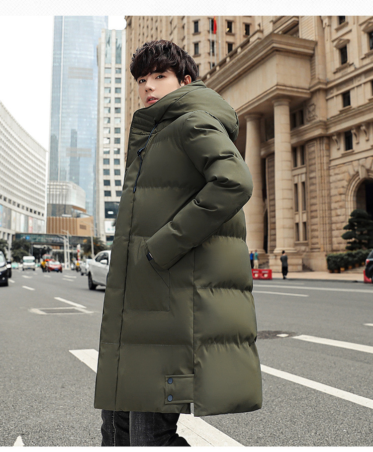 Invierno chaqueta de algodón con capuzas de gran tamaño de moda coreana largo y grueso chaqueta cálida para hombres de color sólido