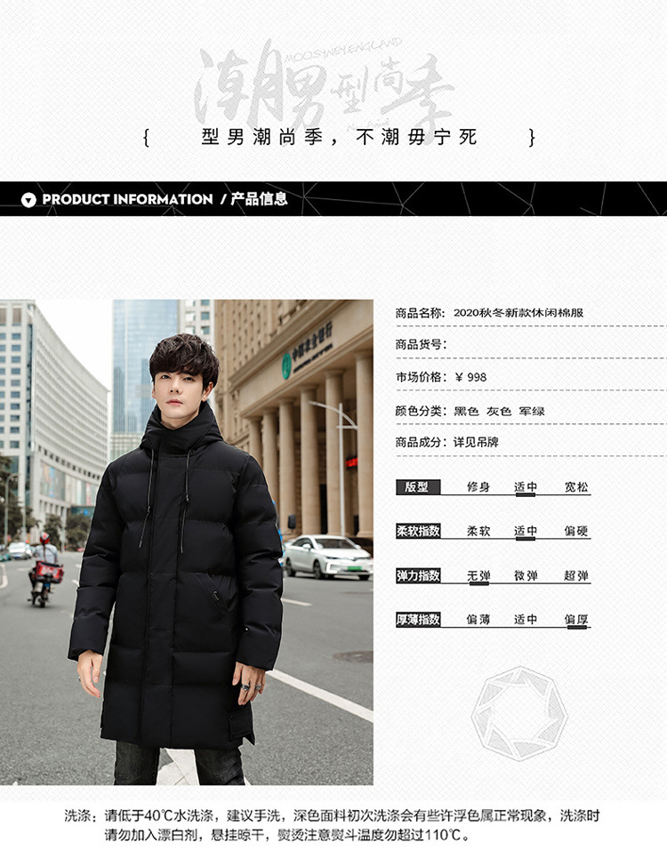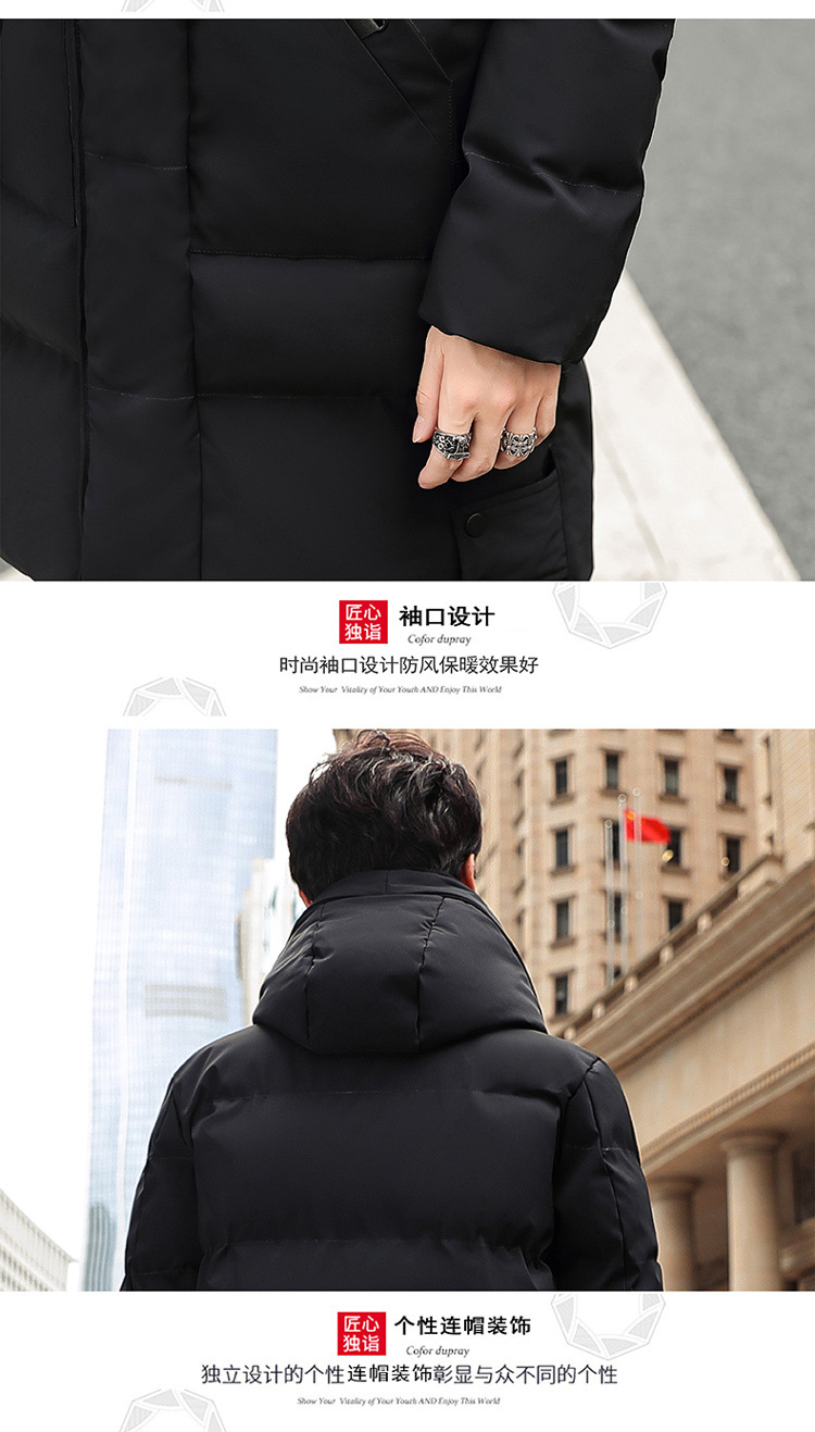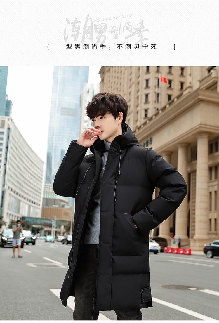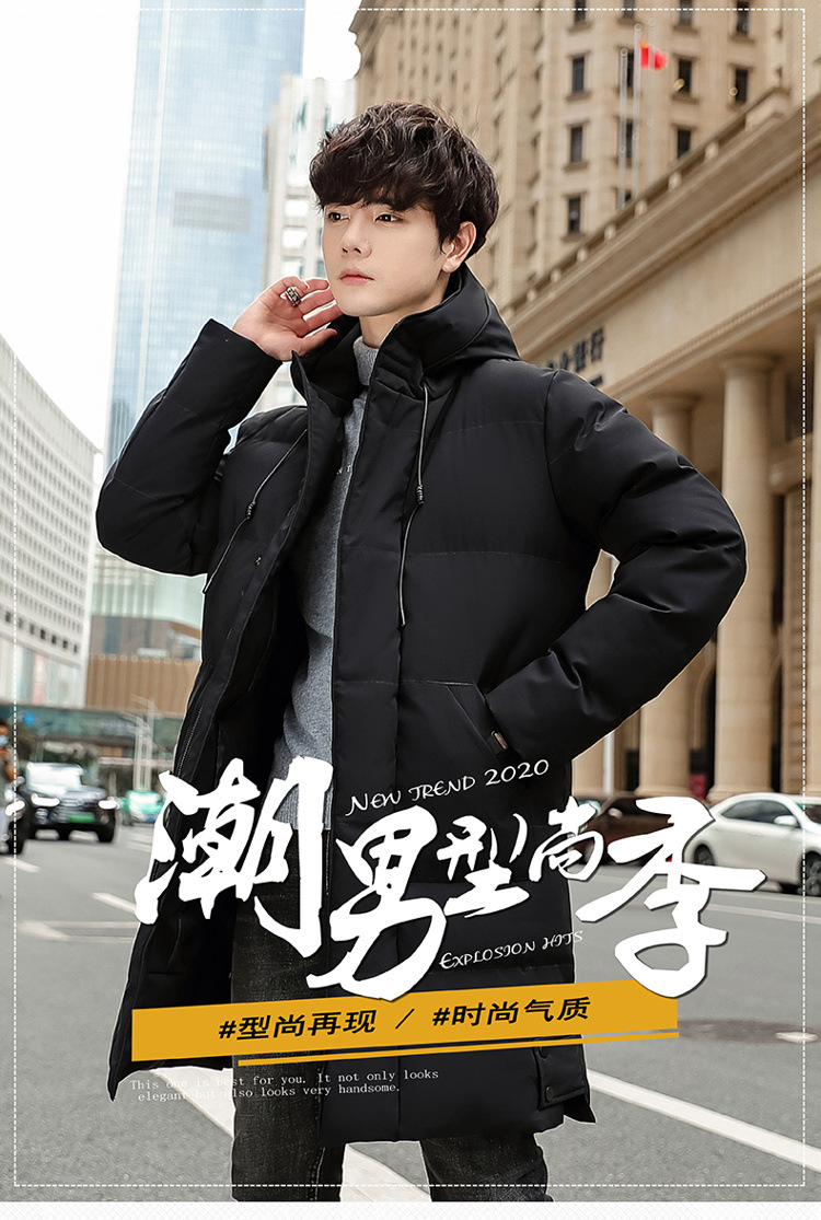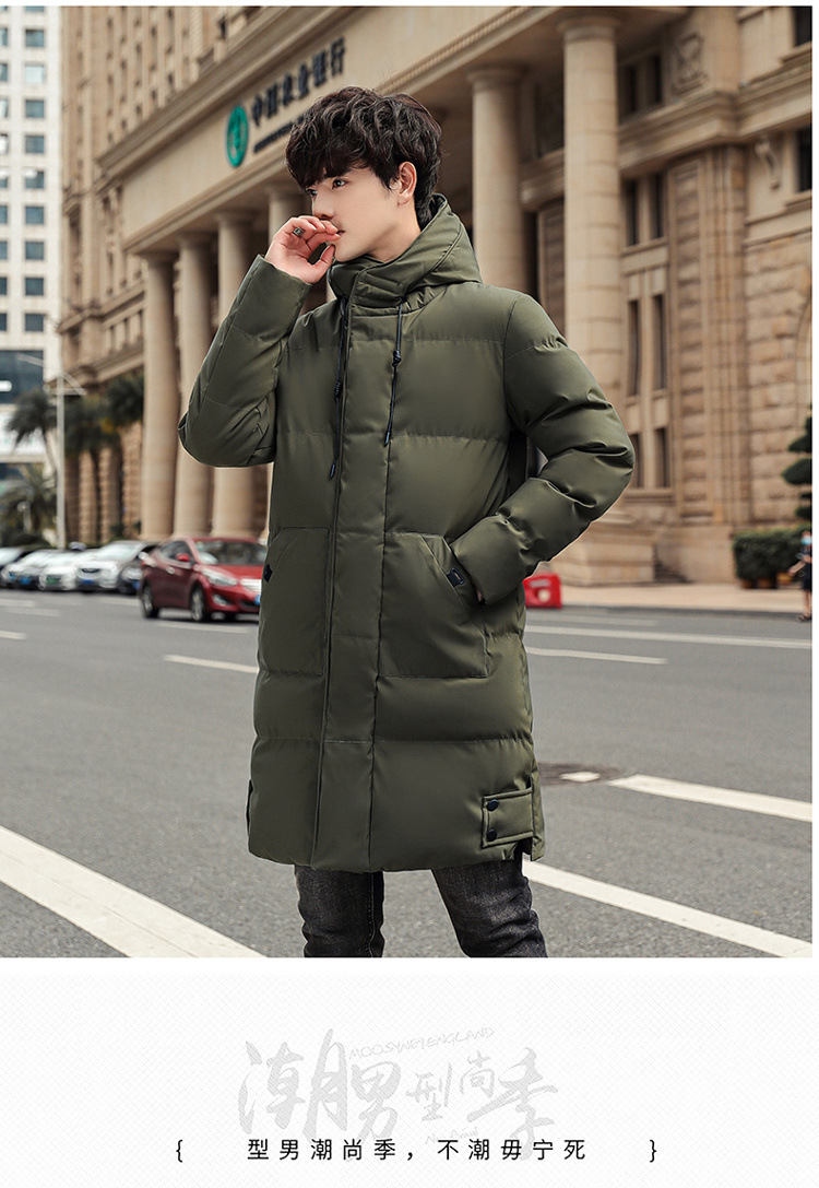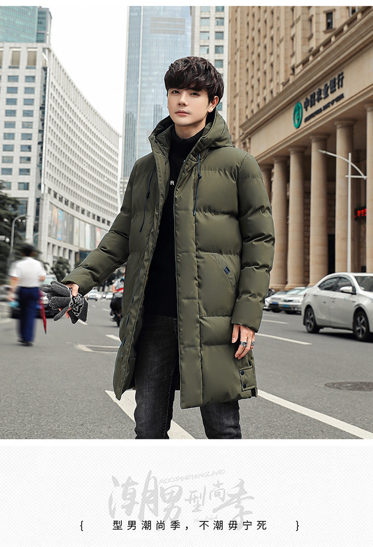 Invierno chaqueta de algodón con capuzas de gran tamaño de moda coreana largo y grueso chaqueta cálida para hombres de color sólido