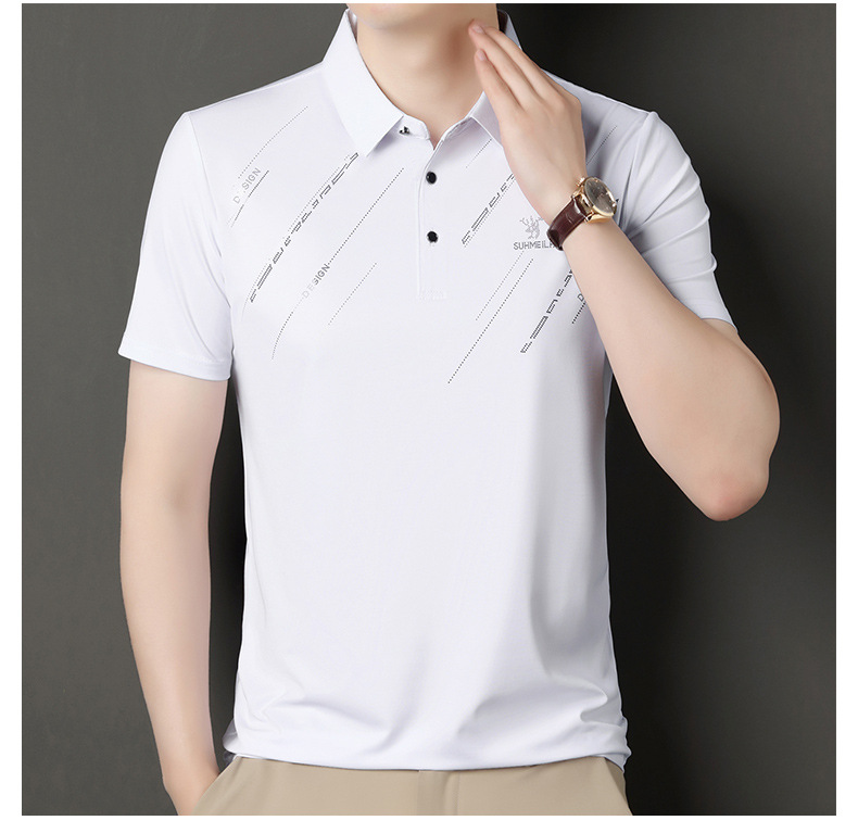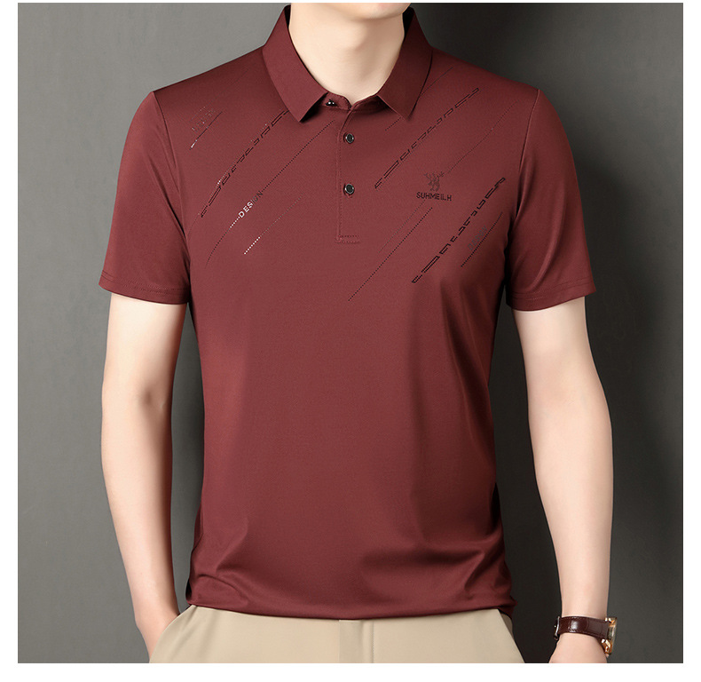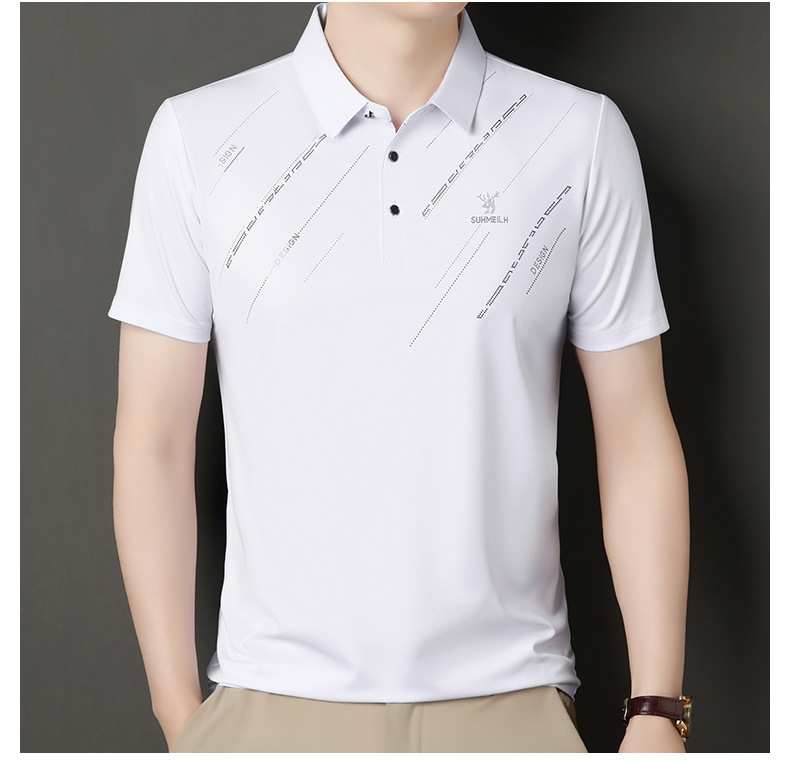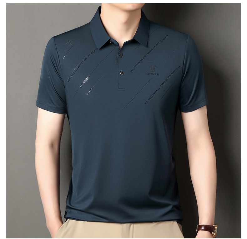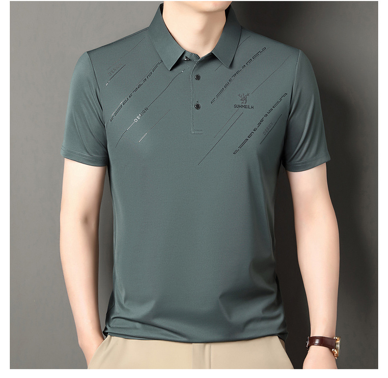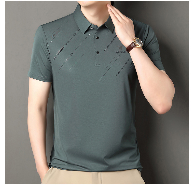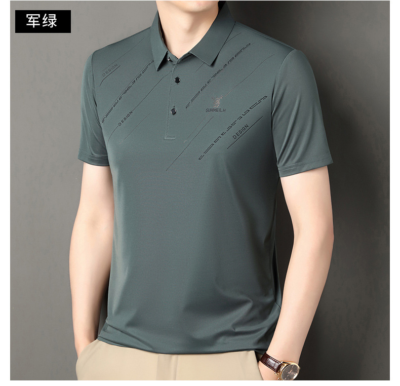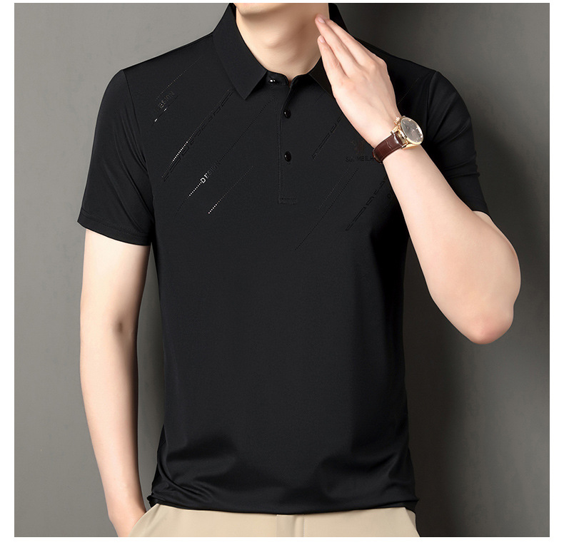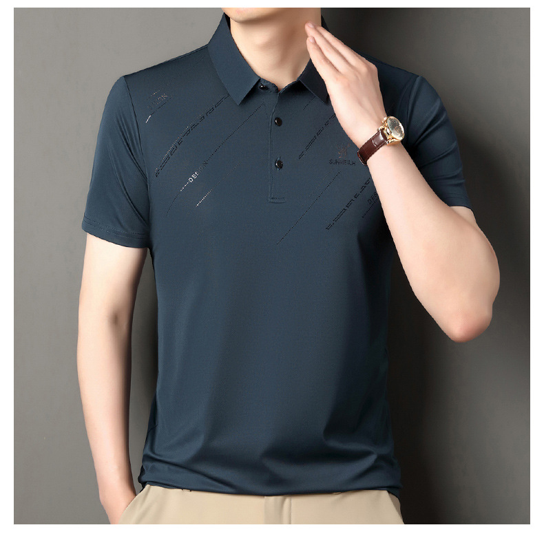 Polo para hombres 2025 nuevo verano seda de hielo seda de morera de negocios chaqueta de moda para hombres camiseta casual universal