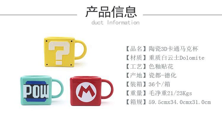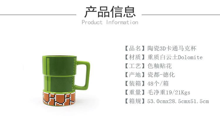 Super Mary Taza de Mario Taza de tubería Taza de hongos de dibujos animados Super Mary Taza de cuadrado