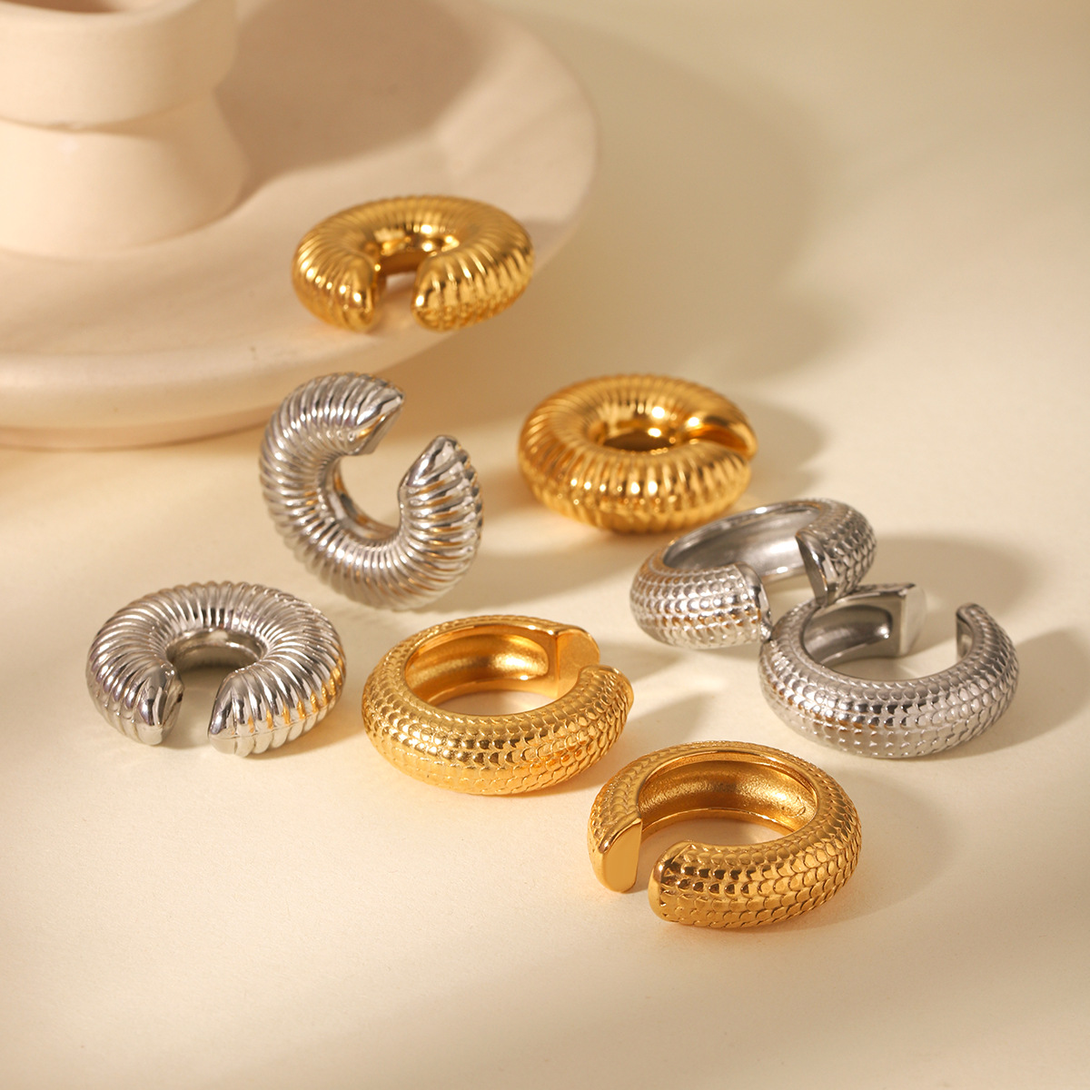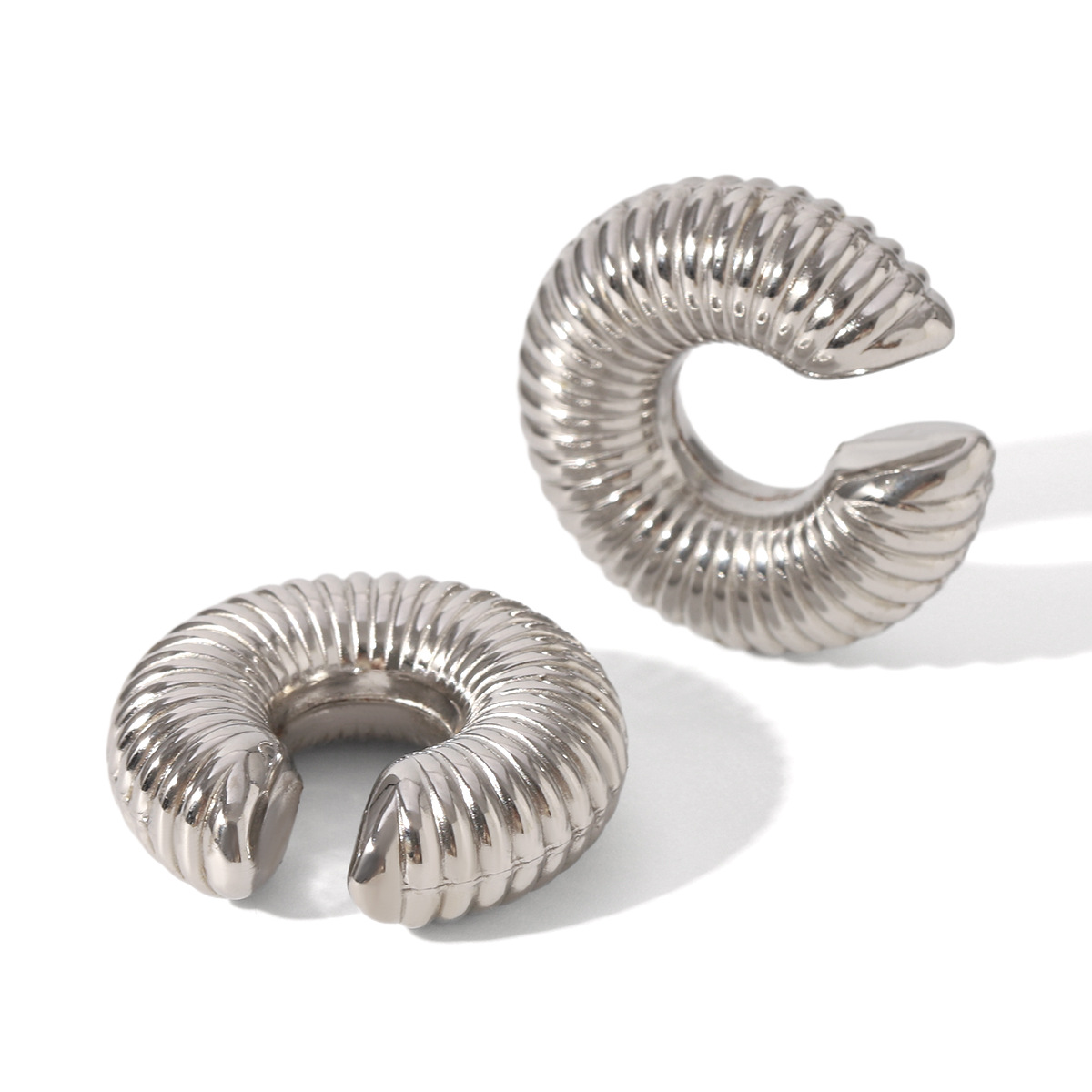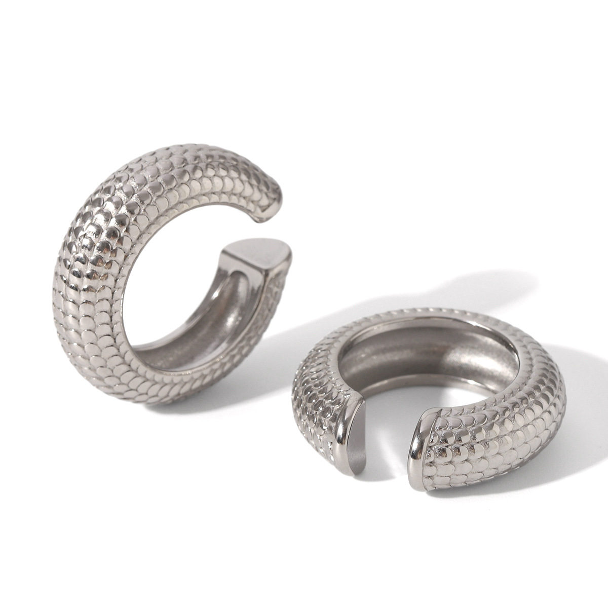 Crudo europeo y americano en forma de C textura de escala clip de oreja de acero inoxidable clip de oreja hueco rayado Pendientes de acero de titanio simples personalizados