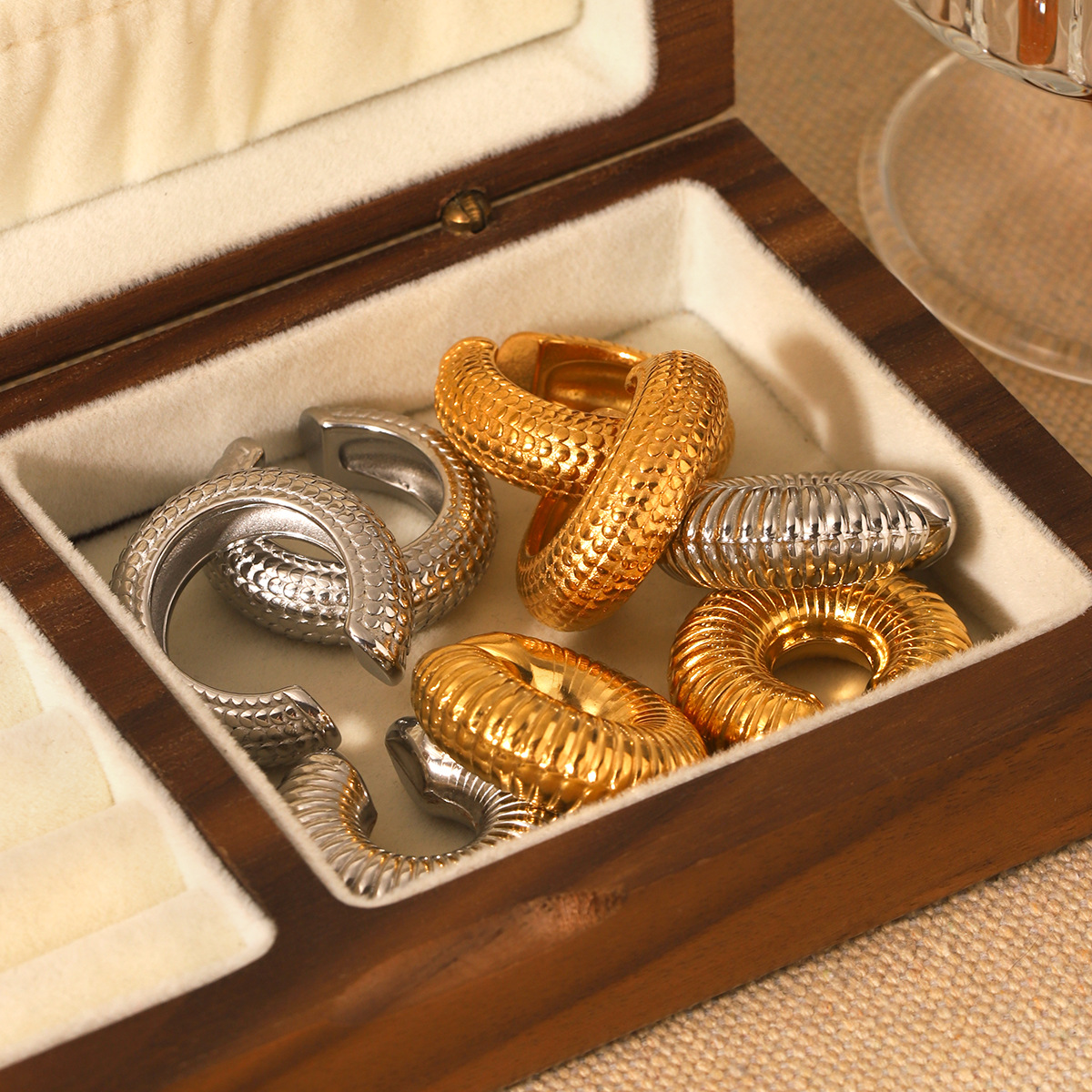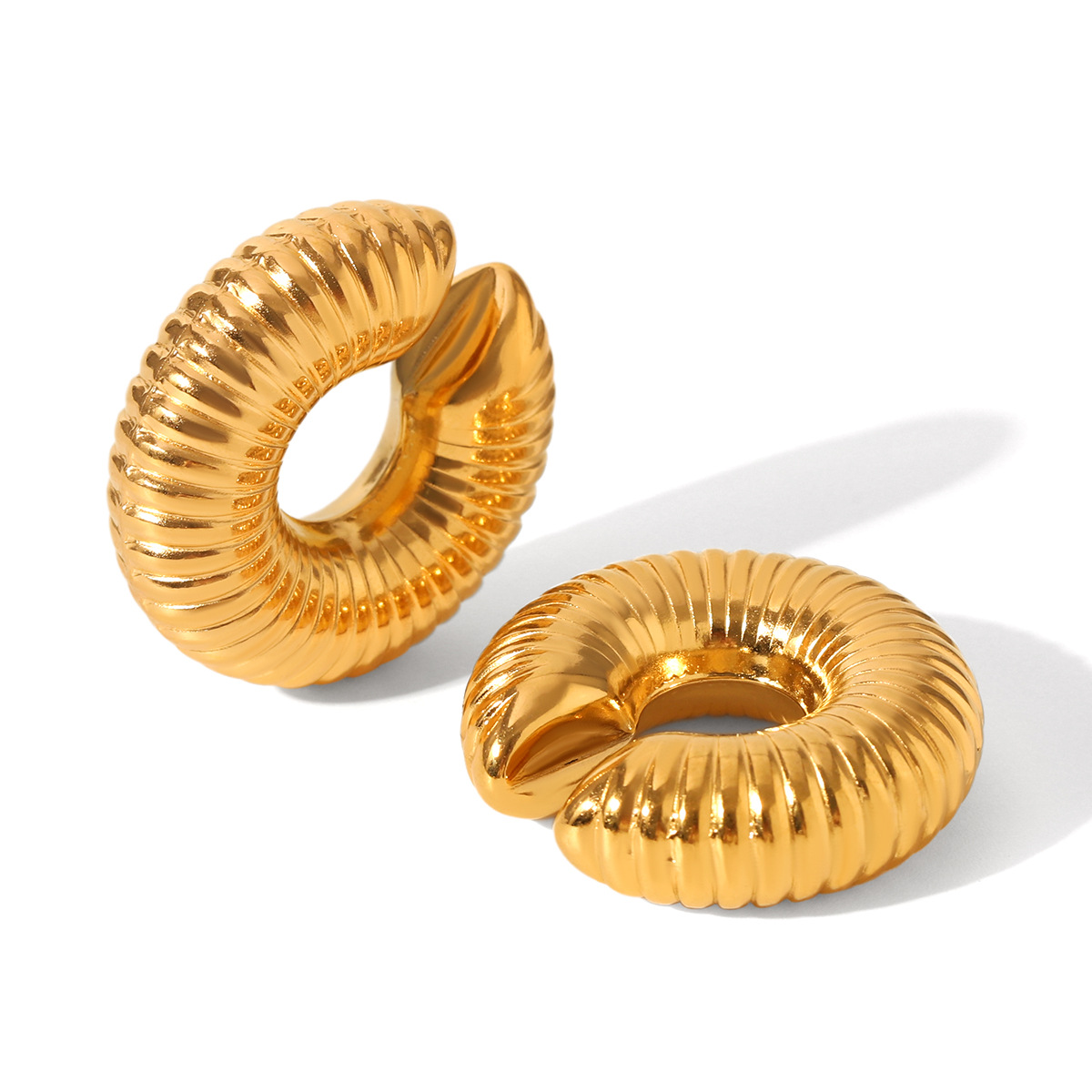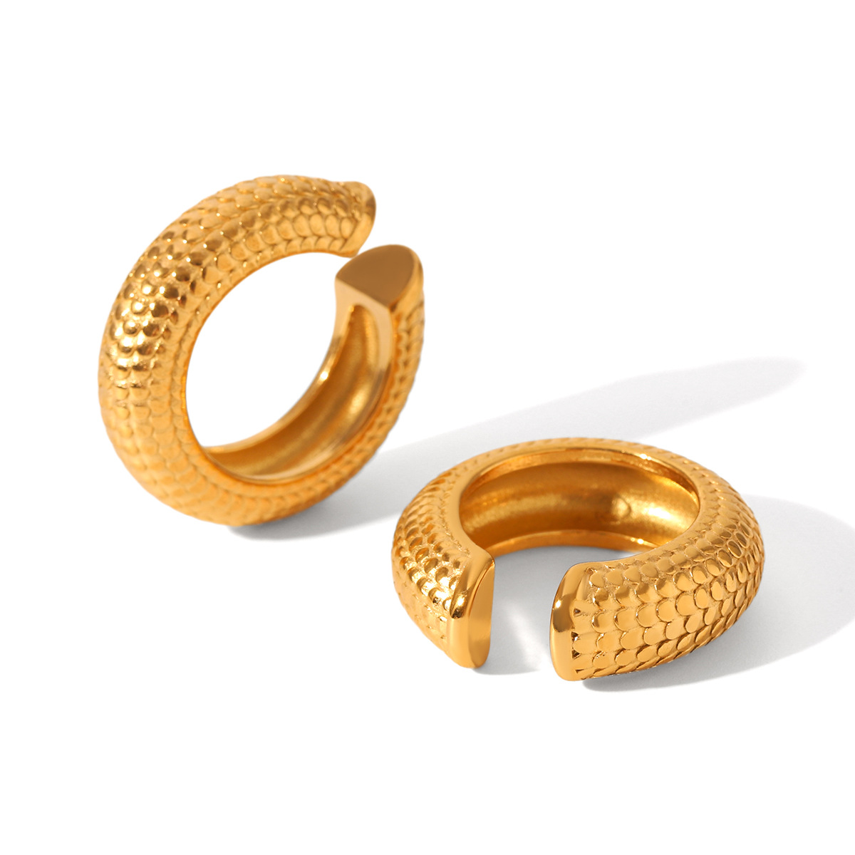 Crudo europeo y americano en forma de C textura de escala clip de oreja de acero inoxidable clip de oreja hueco rayado Pendientes de acero de titanio simples personalizados