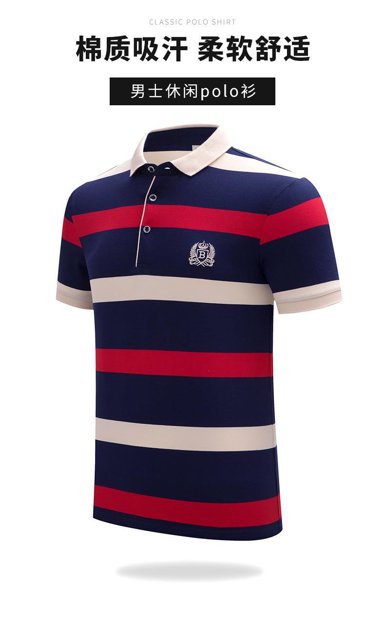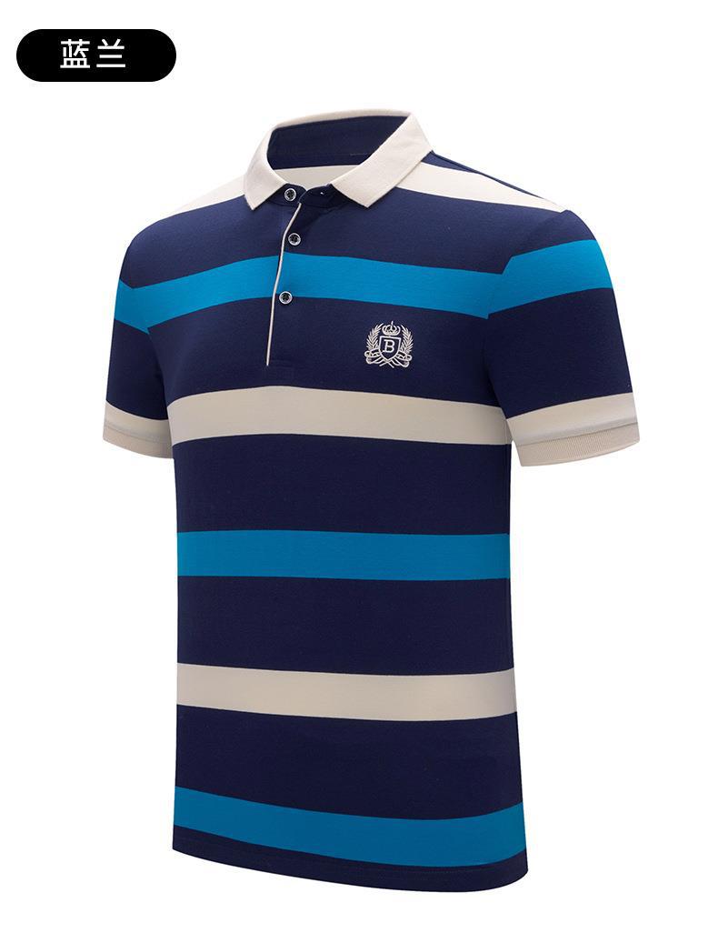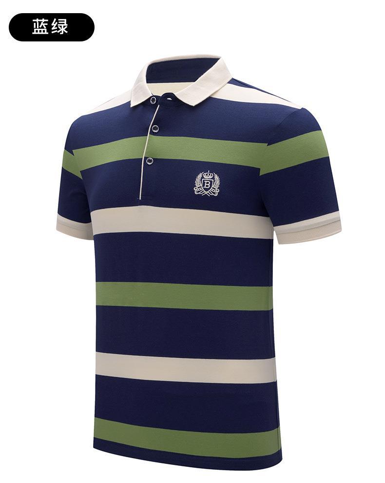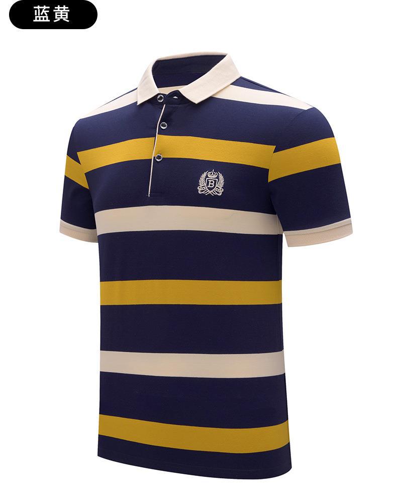 POLO hombre de alto nivel ligero de negocios camiseta de rayas verano nuevo golf de manga corta camiseta bordada con la tapa de rayas