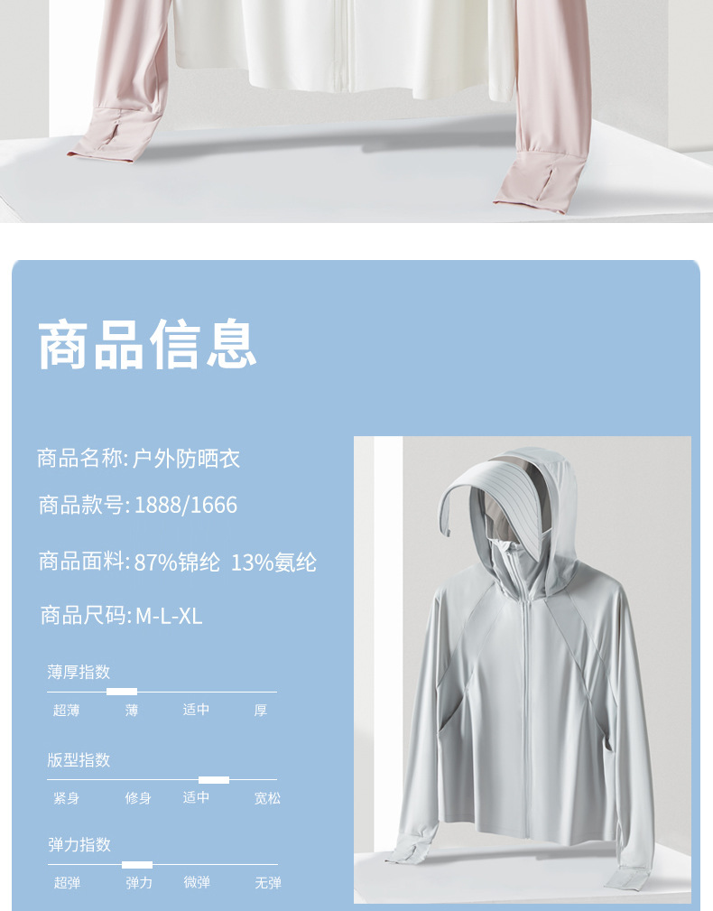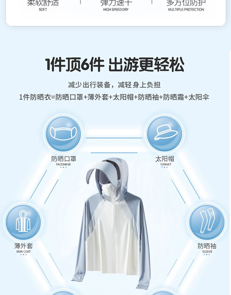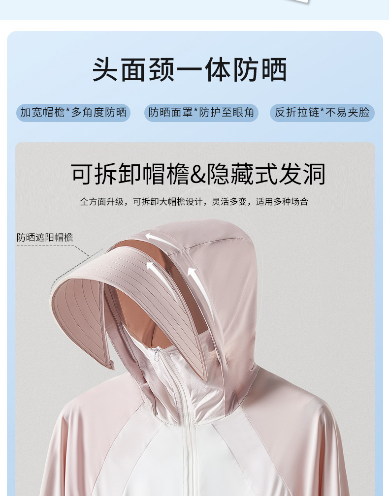 Ropa de protección solar ventilada desmontable gran gorra anti-UV delgada camiseta de protección solar de verano 1888