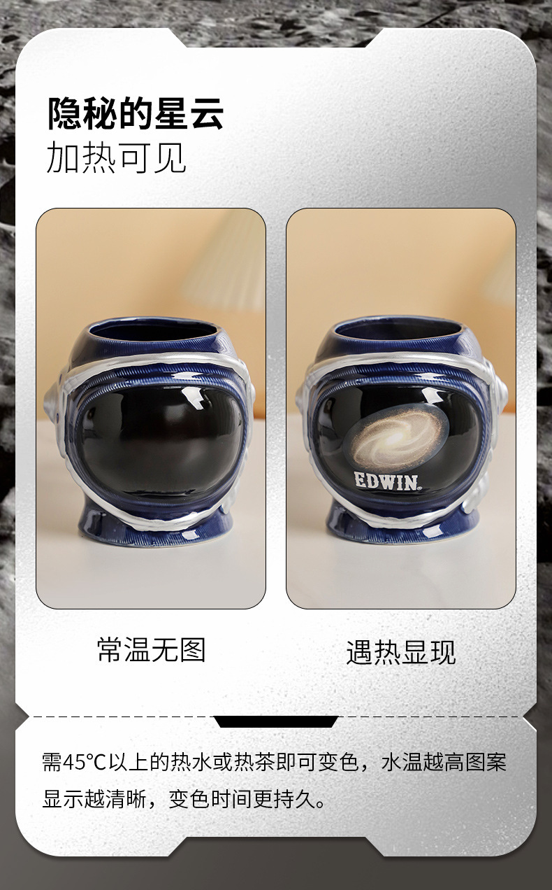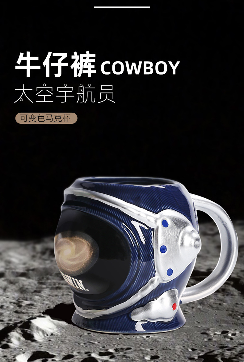 Cosmonauta espacial creativo taza de café de cerámica planetas de dibujos animados taza de leche jeans taza de cambio de color sensible a la temperatura