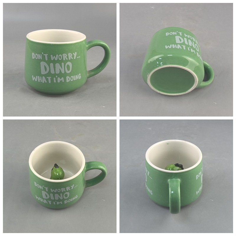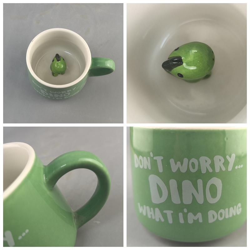 Taza de agua de cerámica de dibujos animados lindo taza 3D taza de dinosaurio taza de café verde taza de dinosaurio creativo