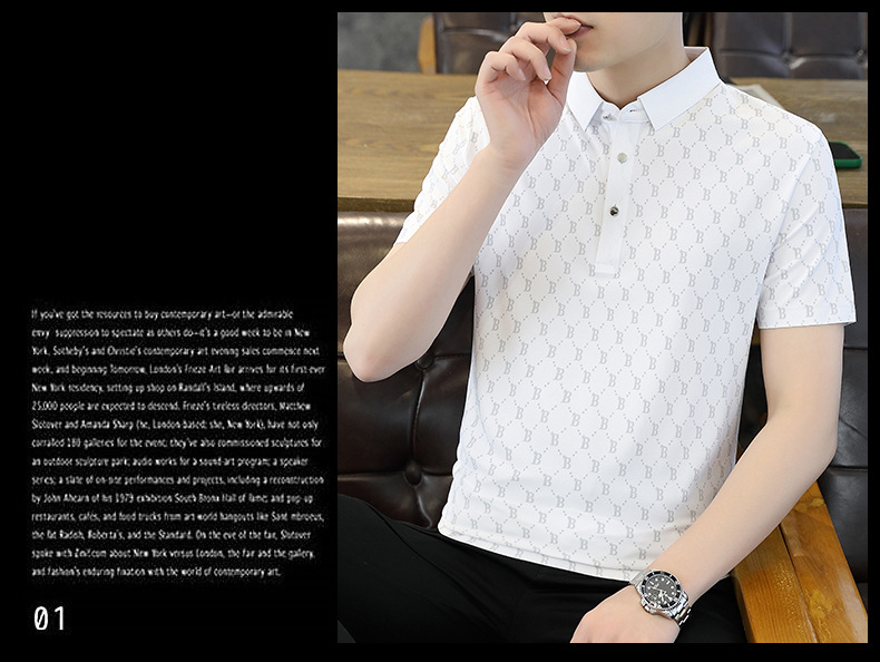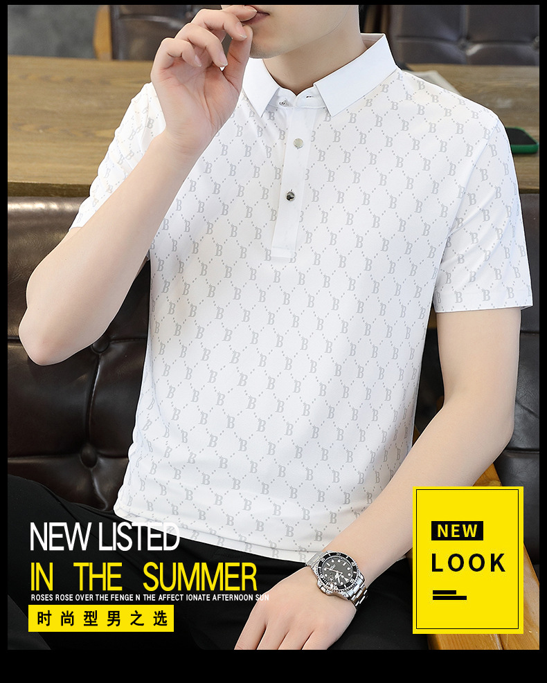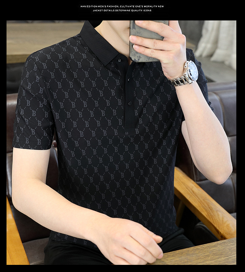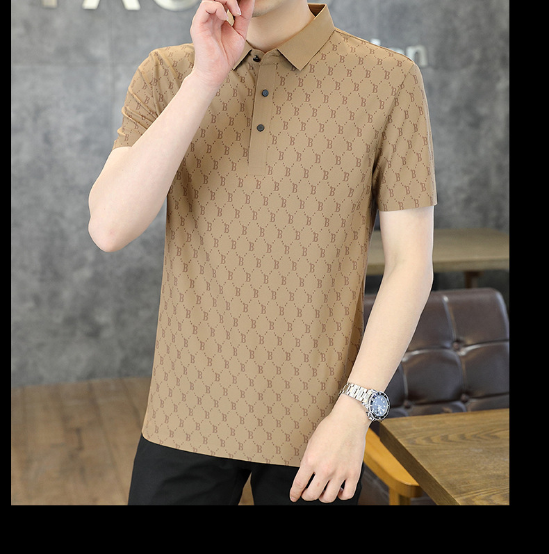 Camiseta de polo de lujo ligero sin marca para hombres verano 2024 seda de hielo coreana casual delgada camiseta de manga corta para hombres