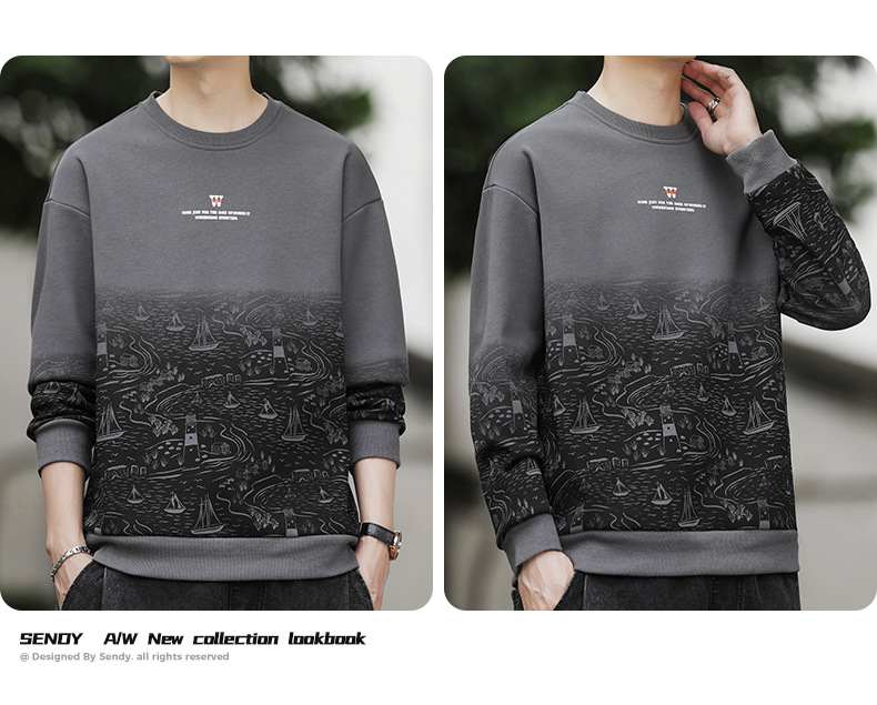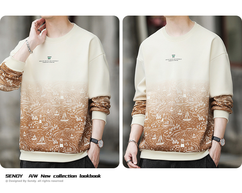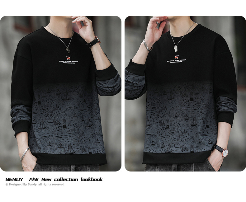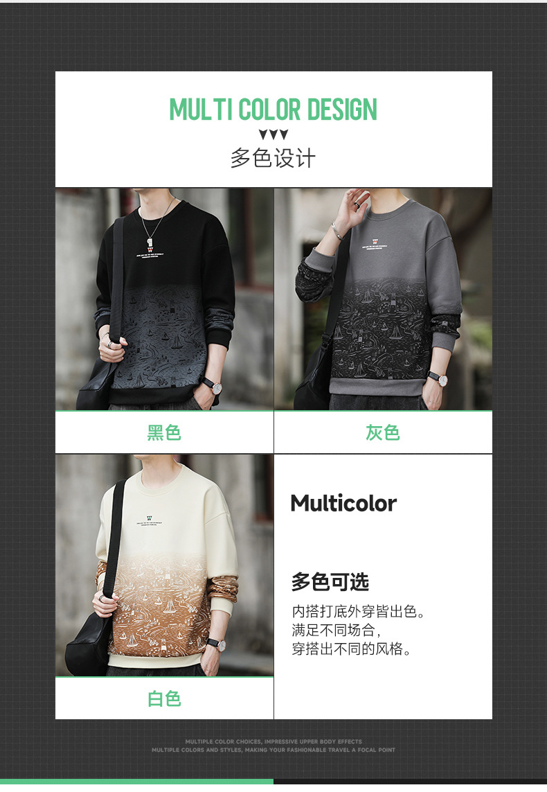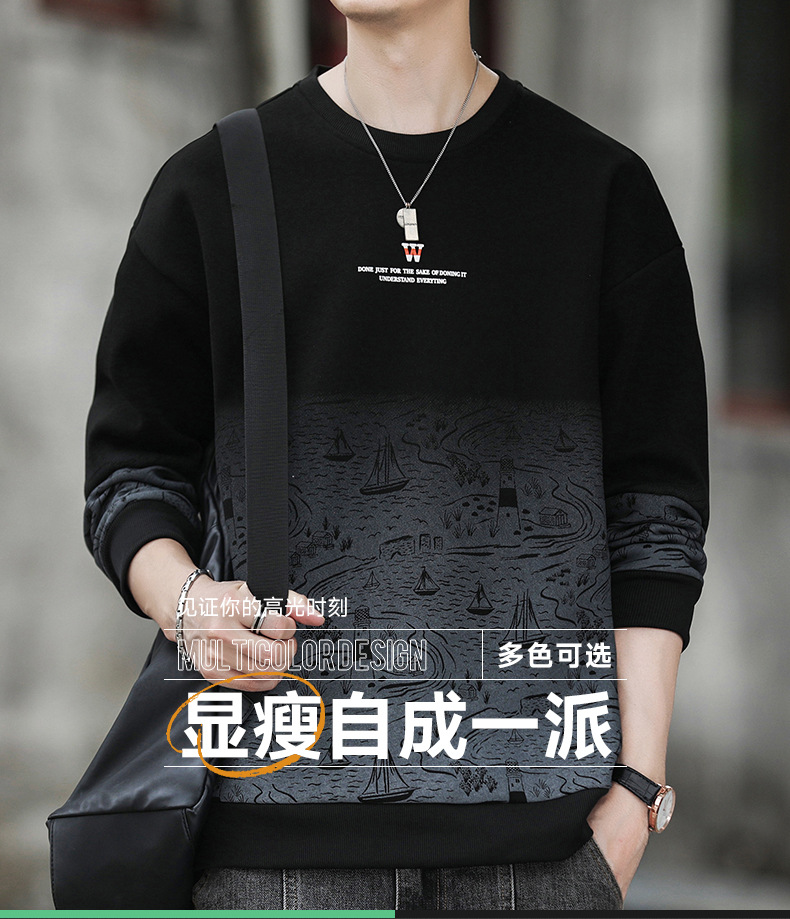 Camiseta de manga larga para hombres primavera y otoño suelta chaqueta de moda marca casual de cuello redondo ropa de moda camiseta de base para hombres