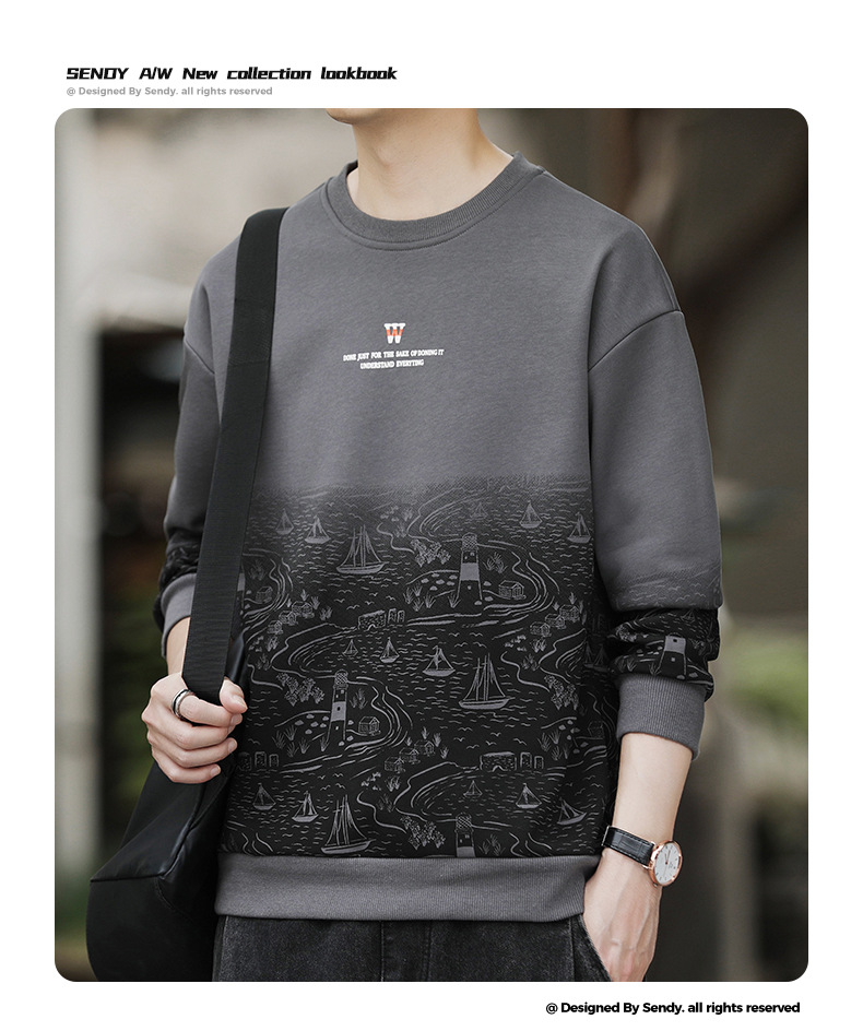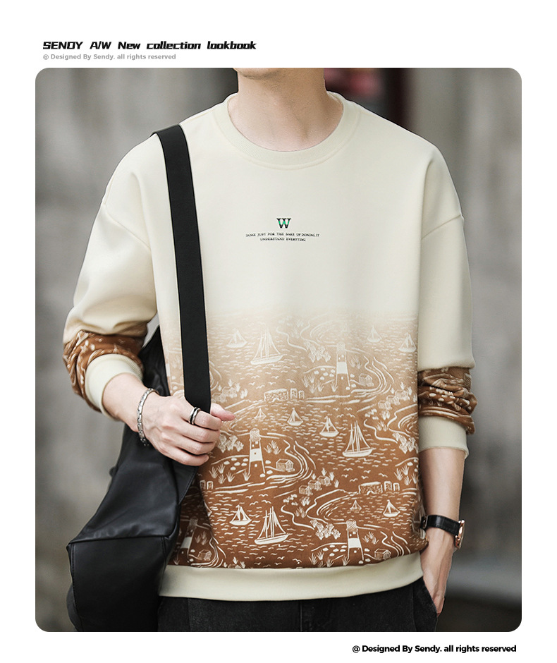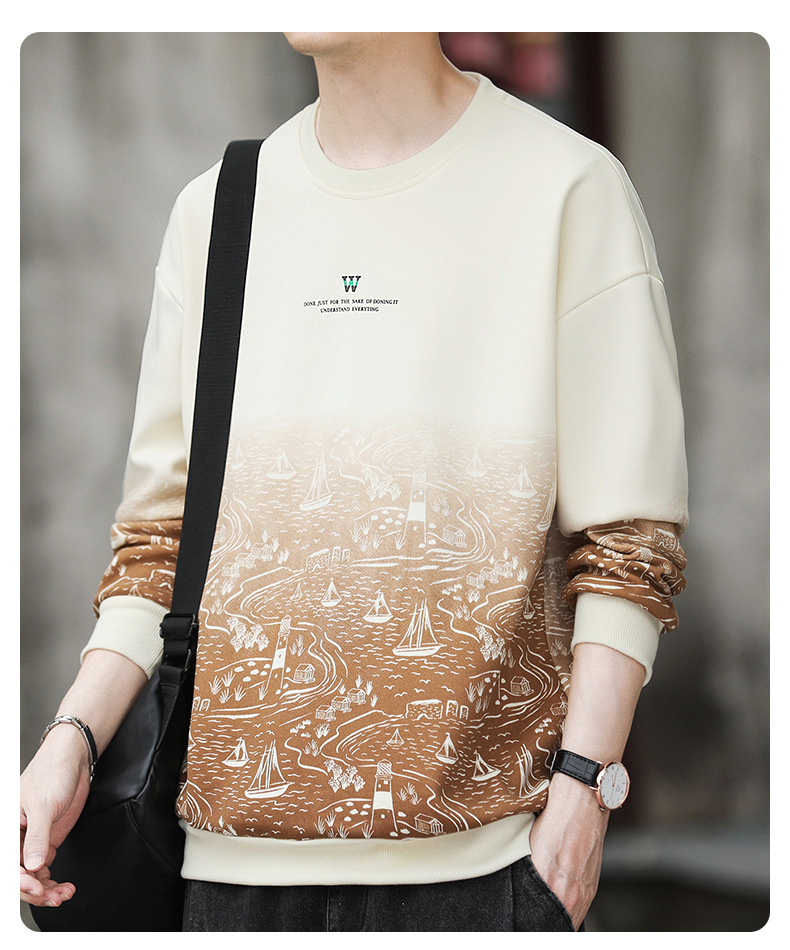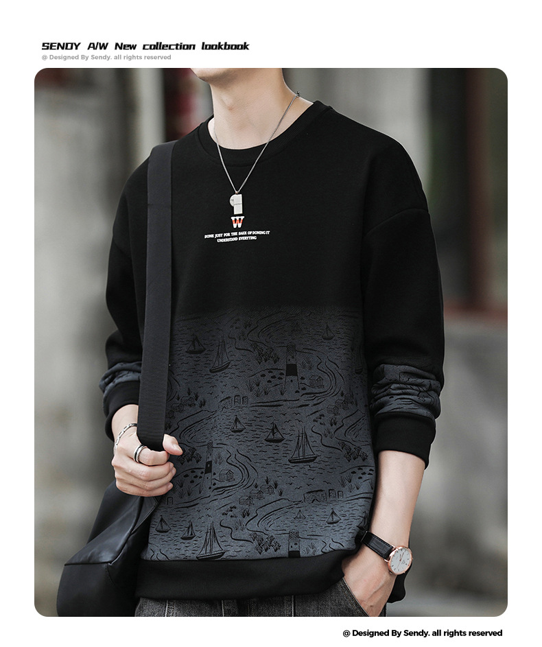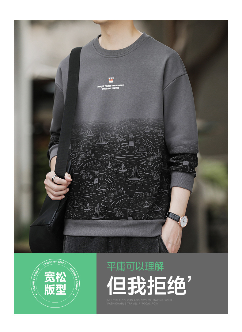Camiseta de manga larga para hombres primavera y otoño suelta chaqueta de moda marca casual de cuello redondo ropa de moda camiseta de base para hombres