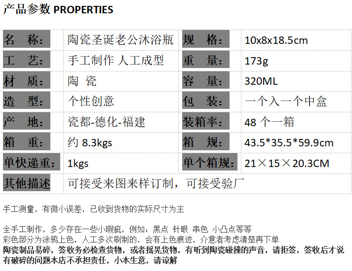 Botella de lavado de manos de Papá Noel transfronteriza, botella de baño, adorno navideño para el hogar, miniatura de cerámica artesanal.