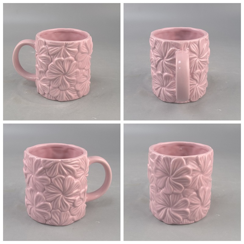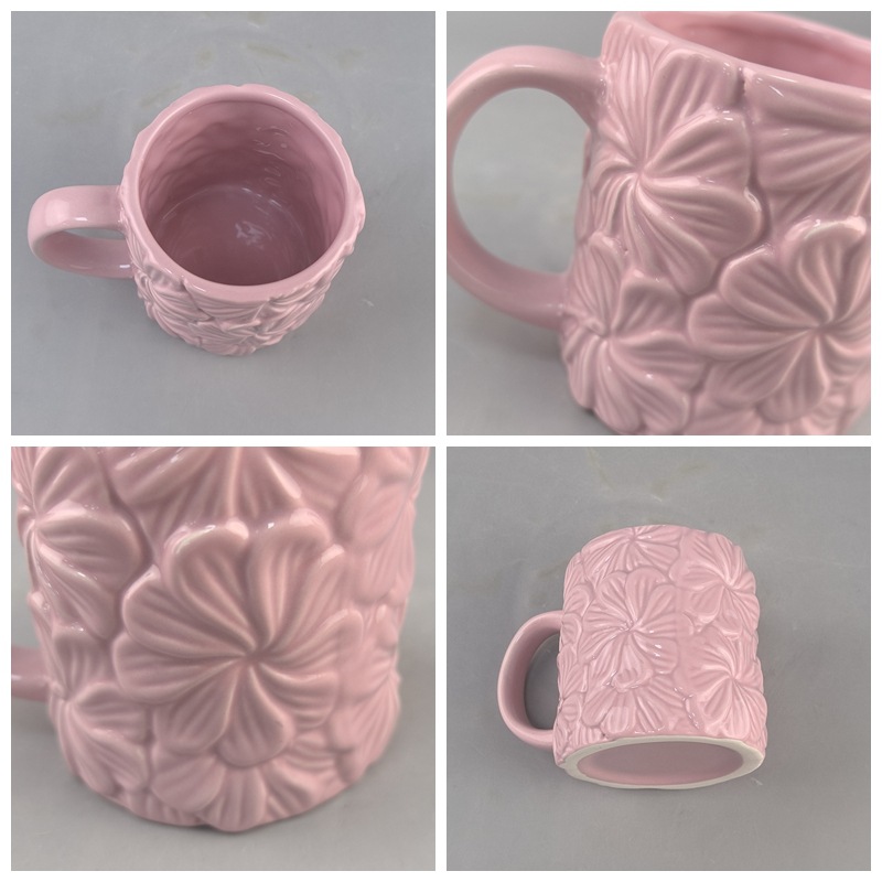 Creativo, de alto valor, exquisito, tierno rosa, flor en relieve, taza de cerámica, niña, primavera, taza de café para el hogar, agua potable