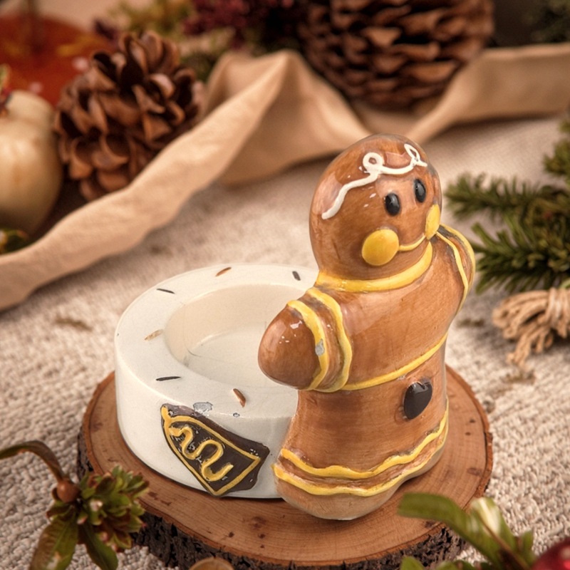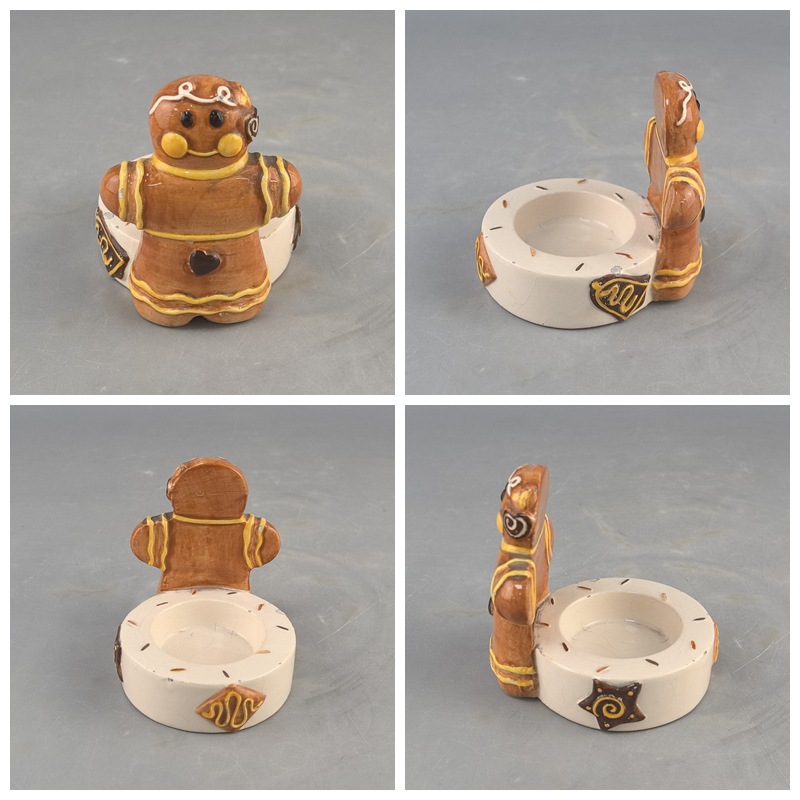 Hombre de jengibre transfronterizo Candelabro Decoración navideña Cerámica Hombre de jengibre Decoración navideña Artesanía de cerámica pintada a mano