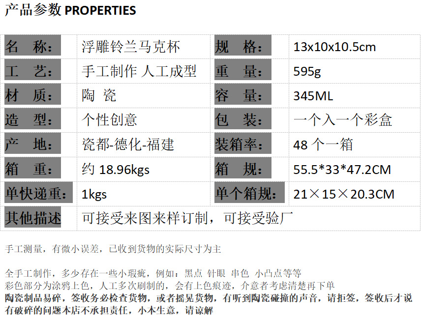 | Colores | Taza de lirio de los valles en relieve blanco puro |
