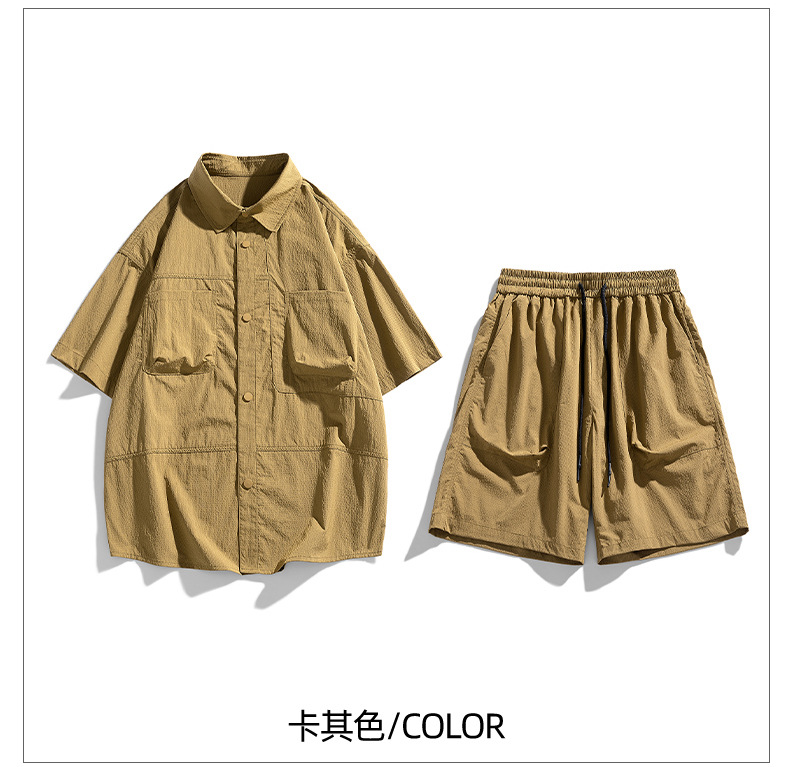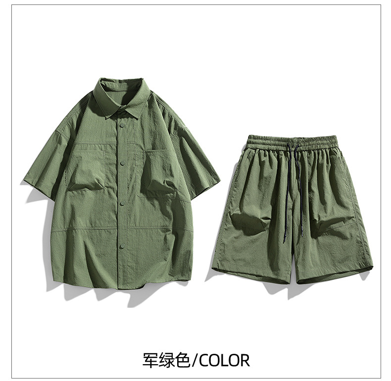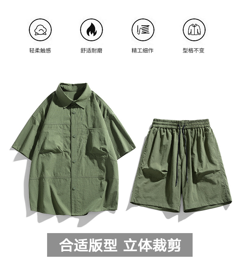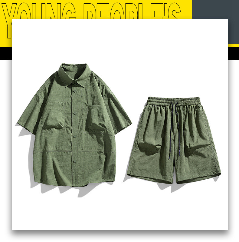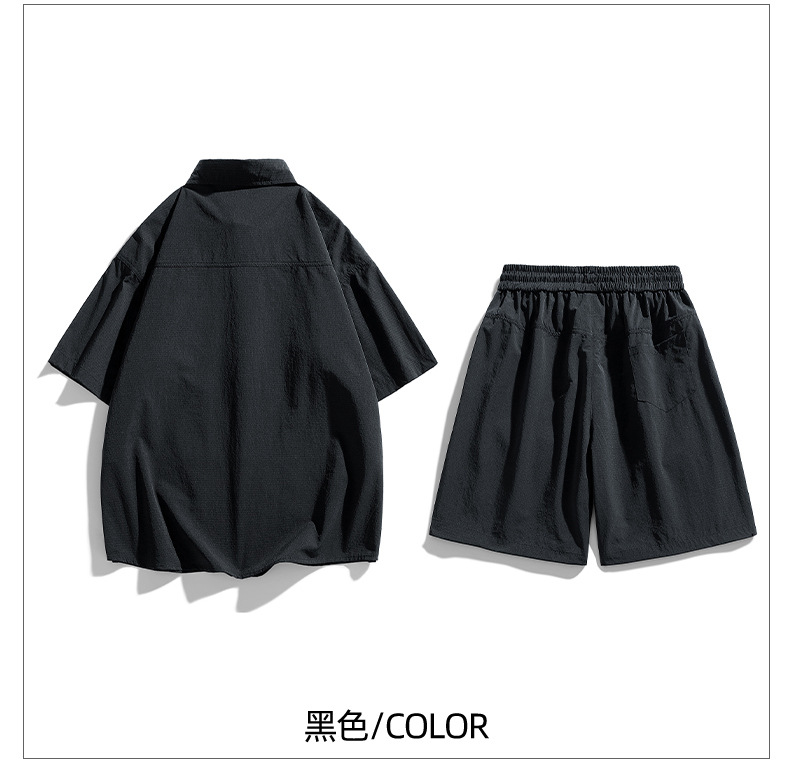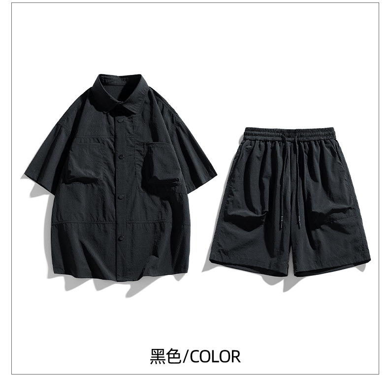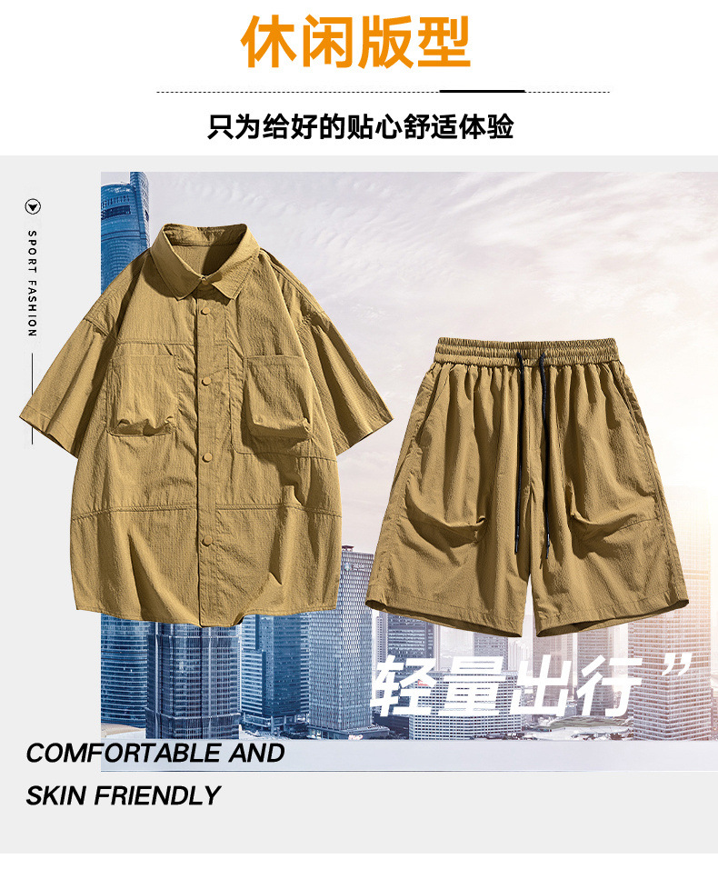 Verano hielo camisa de manga corta hombre + pantalones de cinco puntos set set set
