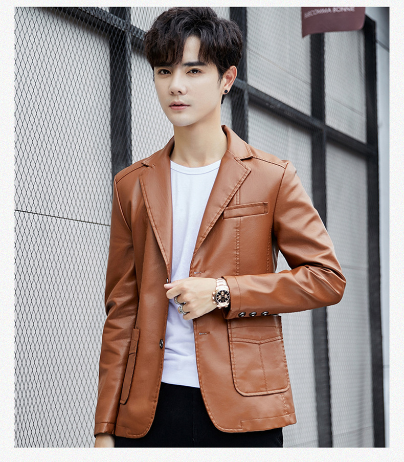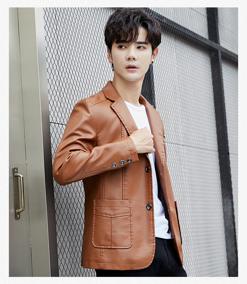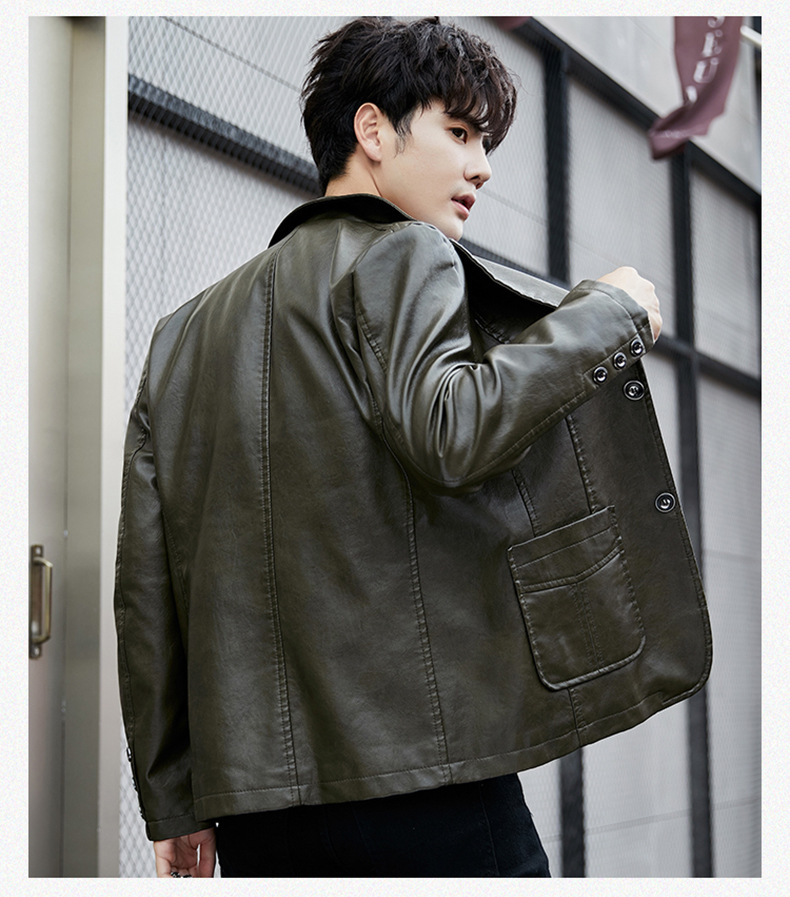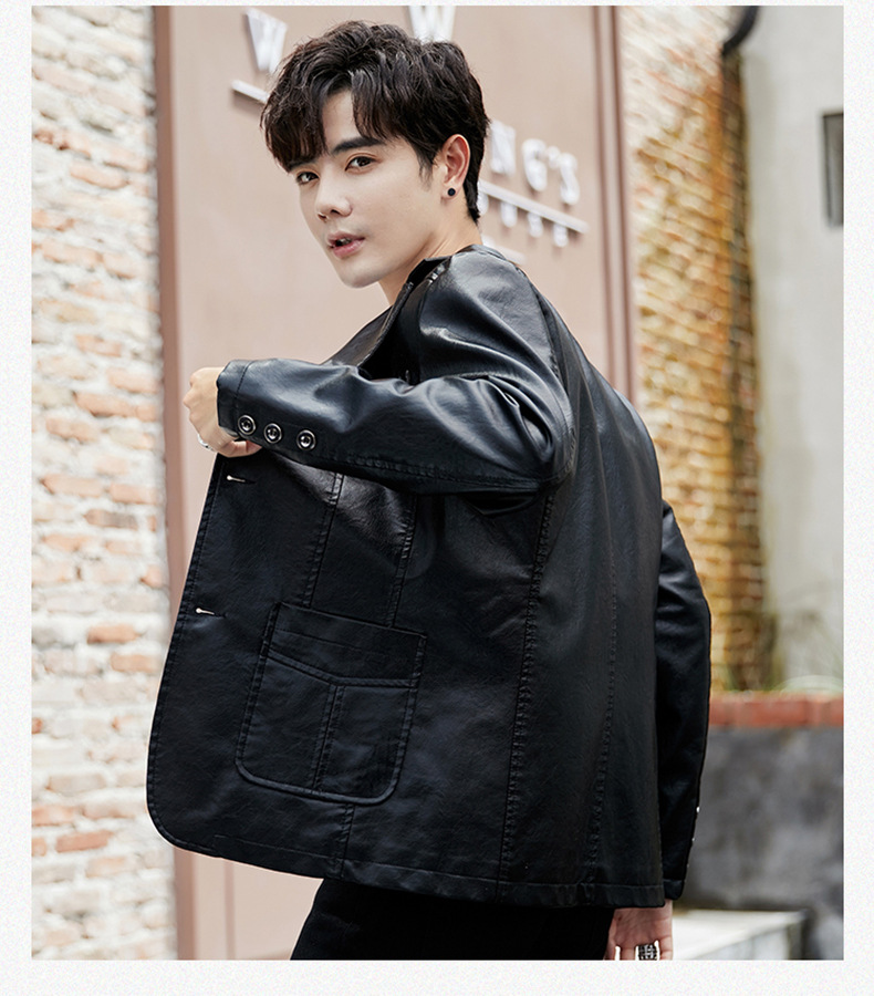 Chaqueta de cuero para hombre 2024 primavera y otoño nueva moda locomotora delgada versión coreana hermosa chaqueta de cuero de negocios de cuero para jóvenes