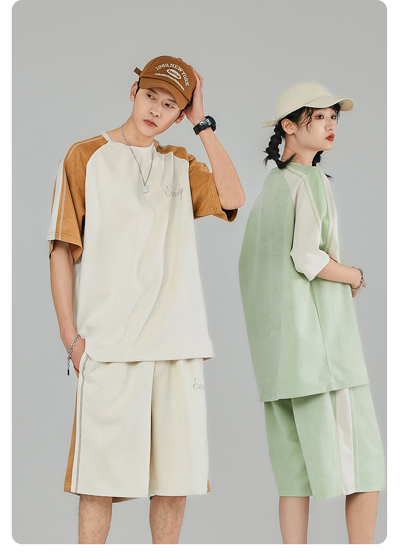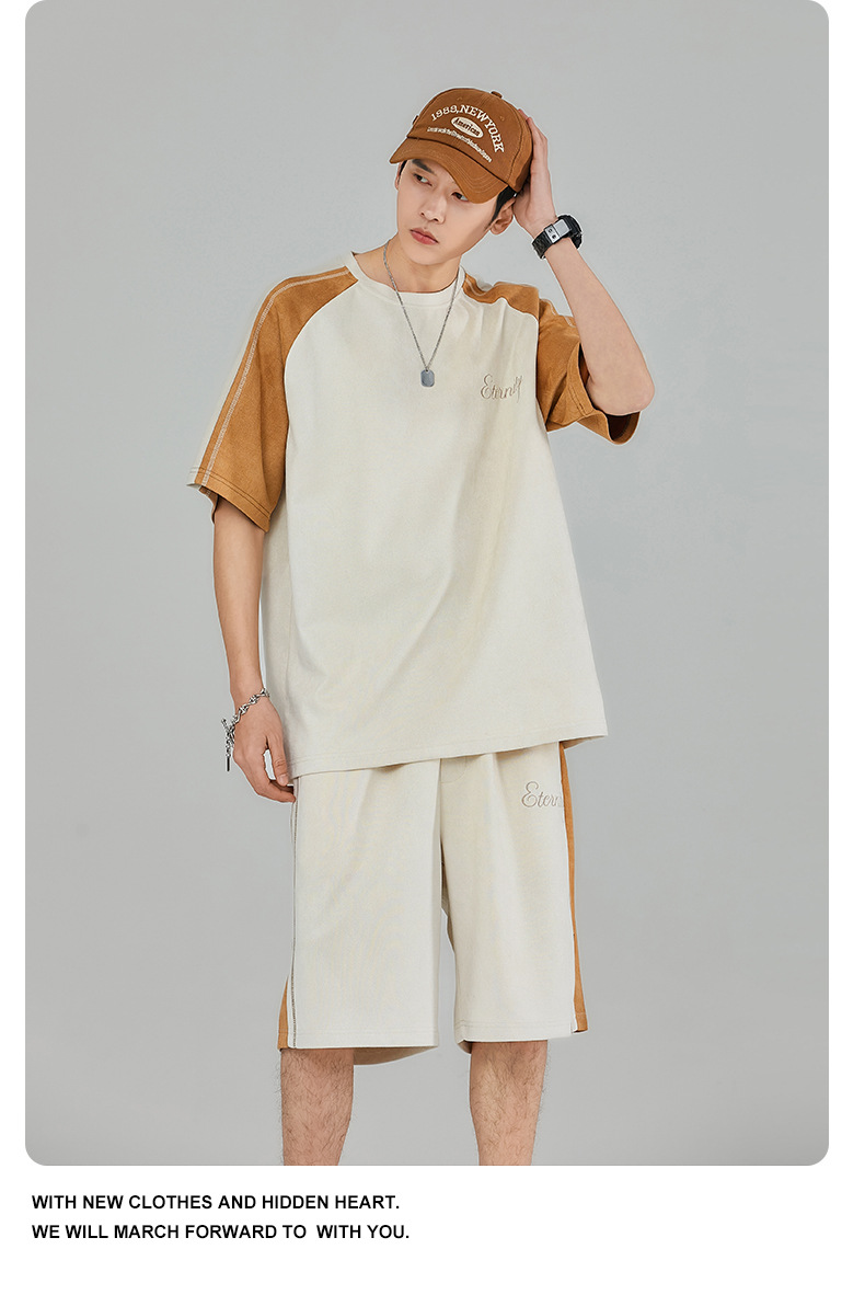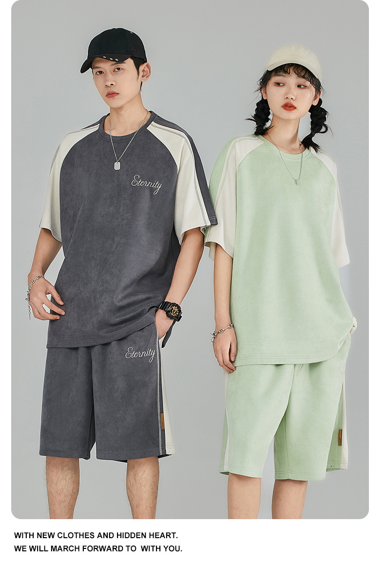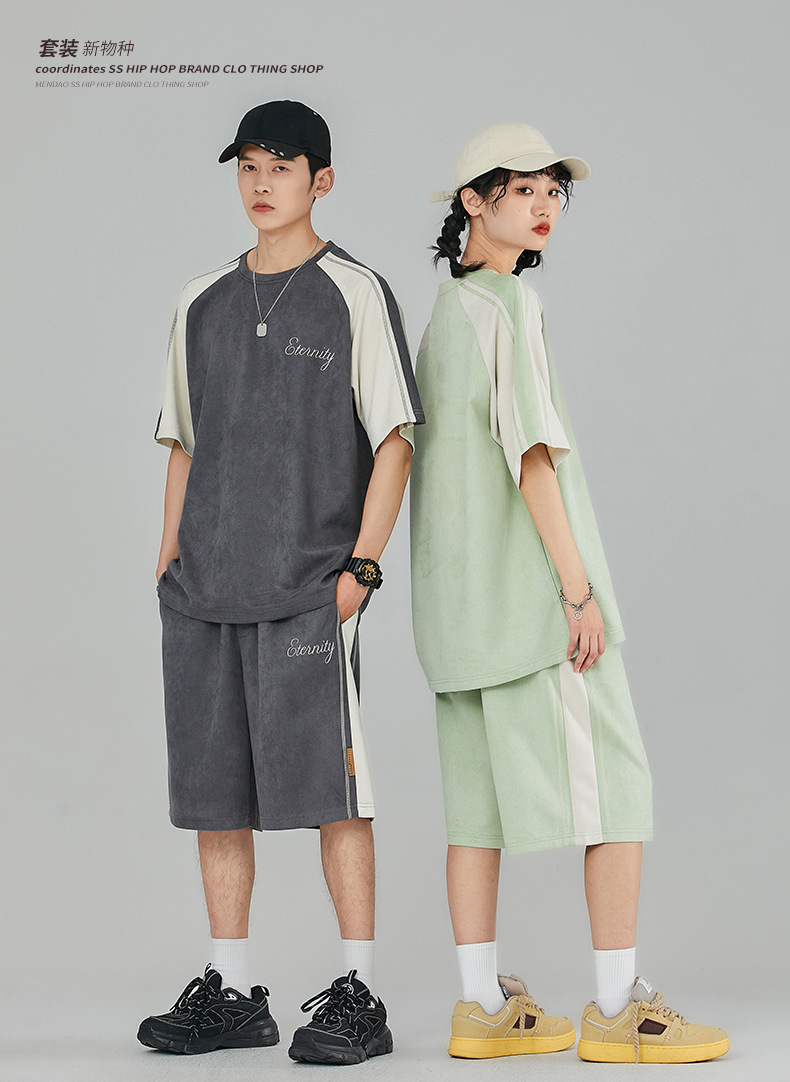 Pantalones cortos de manga corta de hombre gris oscuro letras bordadas estudiantes de secundaria guapo estilo coreano conjunto completo de ropa deportiva 28018