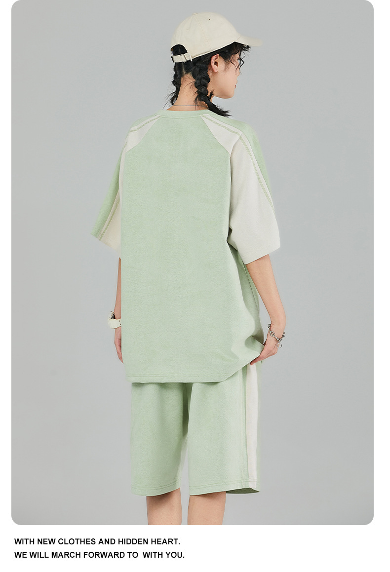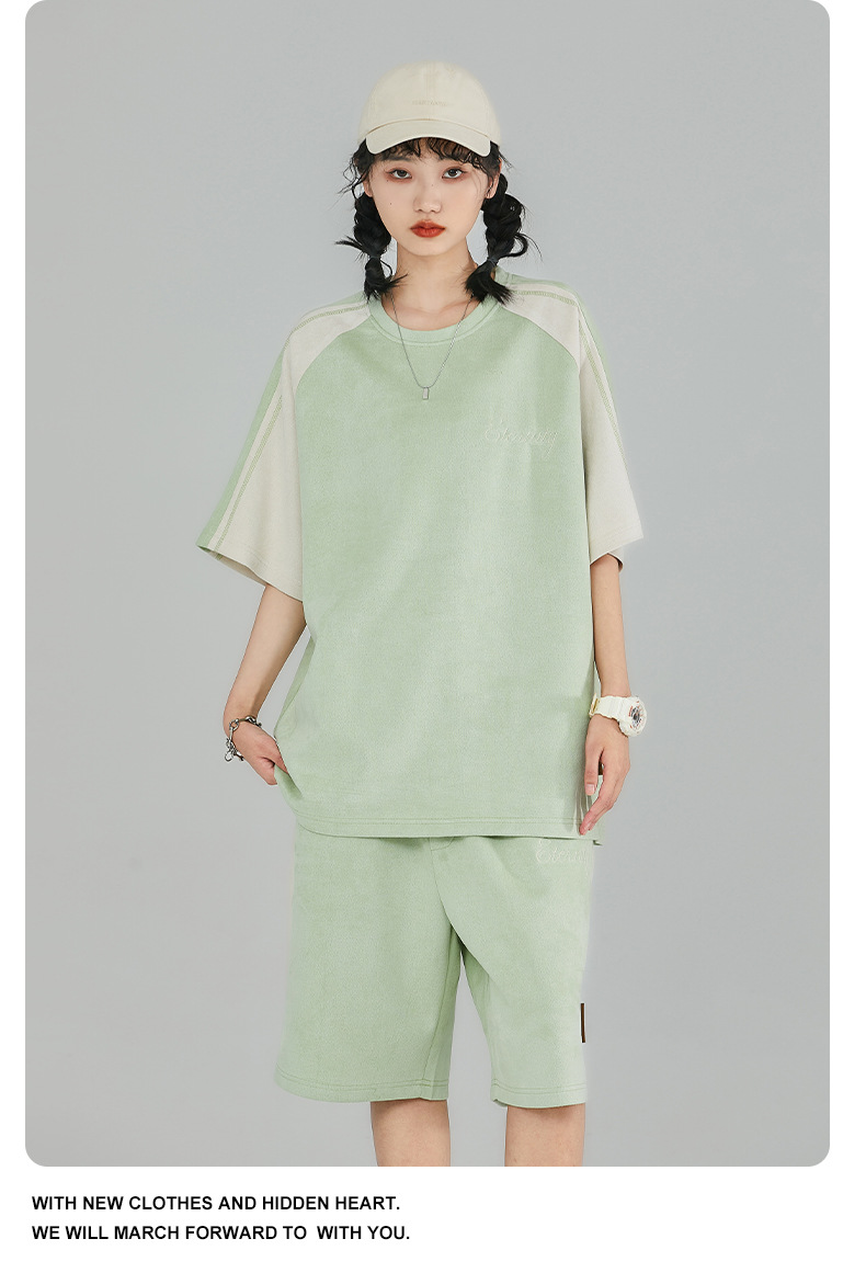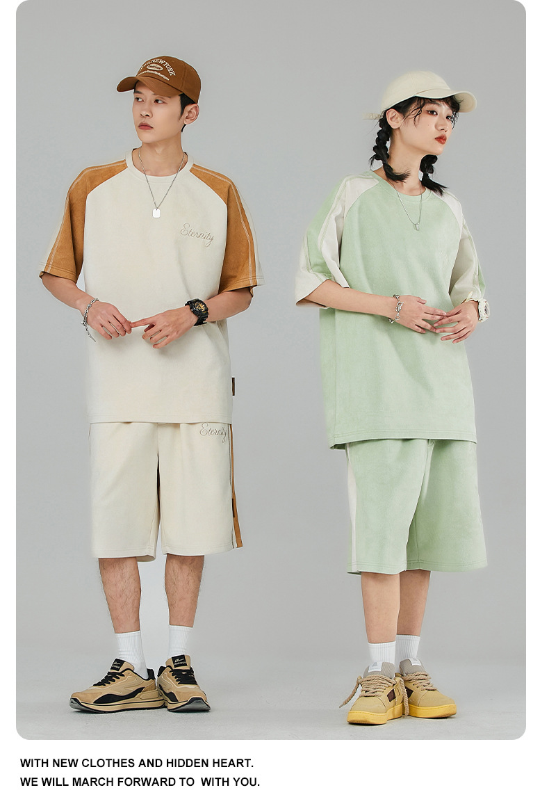Pantalones cortos de manga corta de hombre gris oscuro letras bordadas estudiantes de secundaria guapo estilo coreano conjunto completo de ropa deportiva 28018