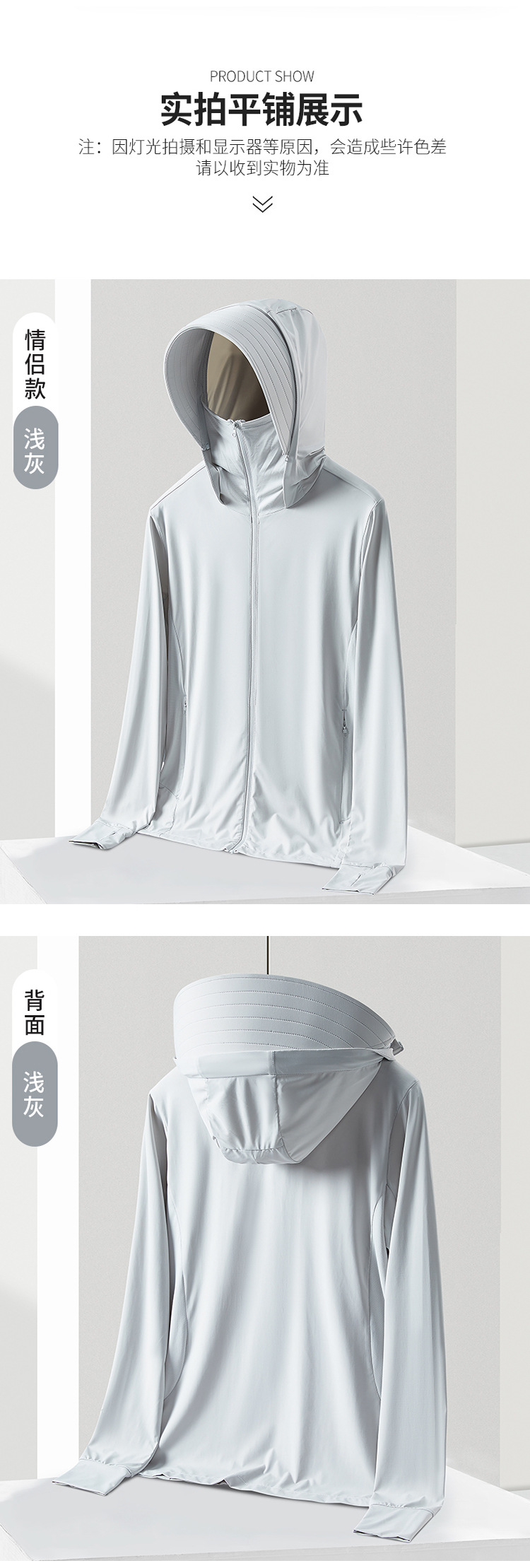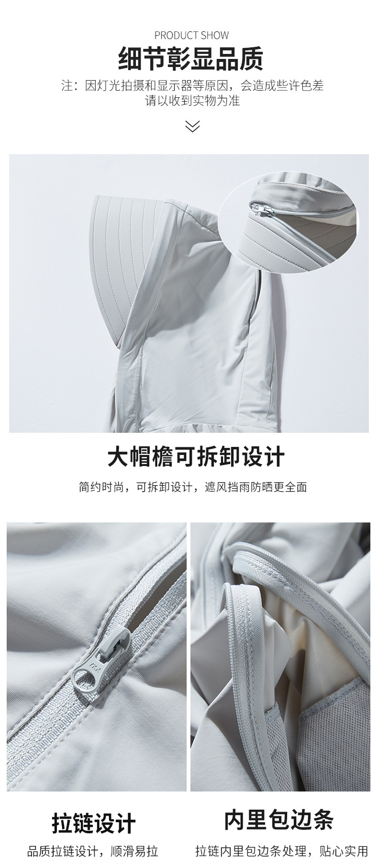 YKK cremallera primavera y verano nuevo UPF50 + chaqueta de protector solar de seda de hielo para hombres y mujeres desmontable chaqueta de piel UV
