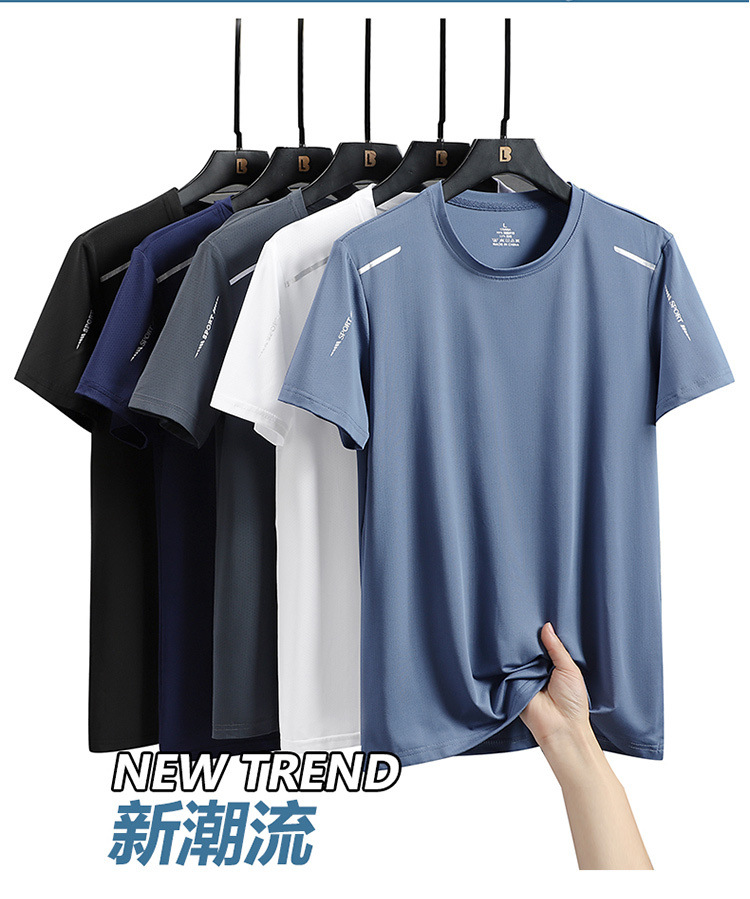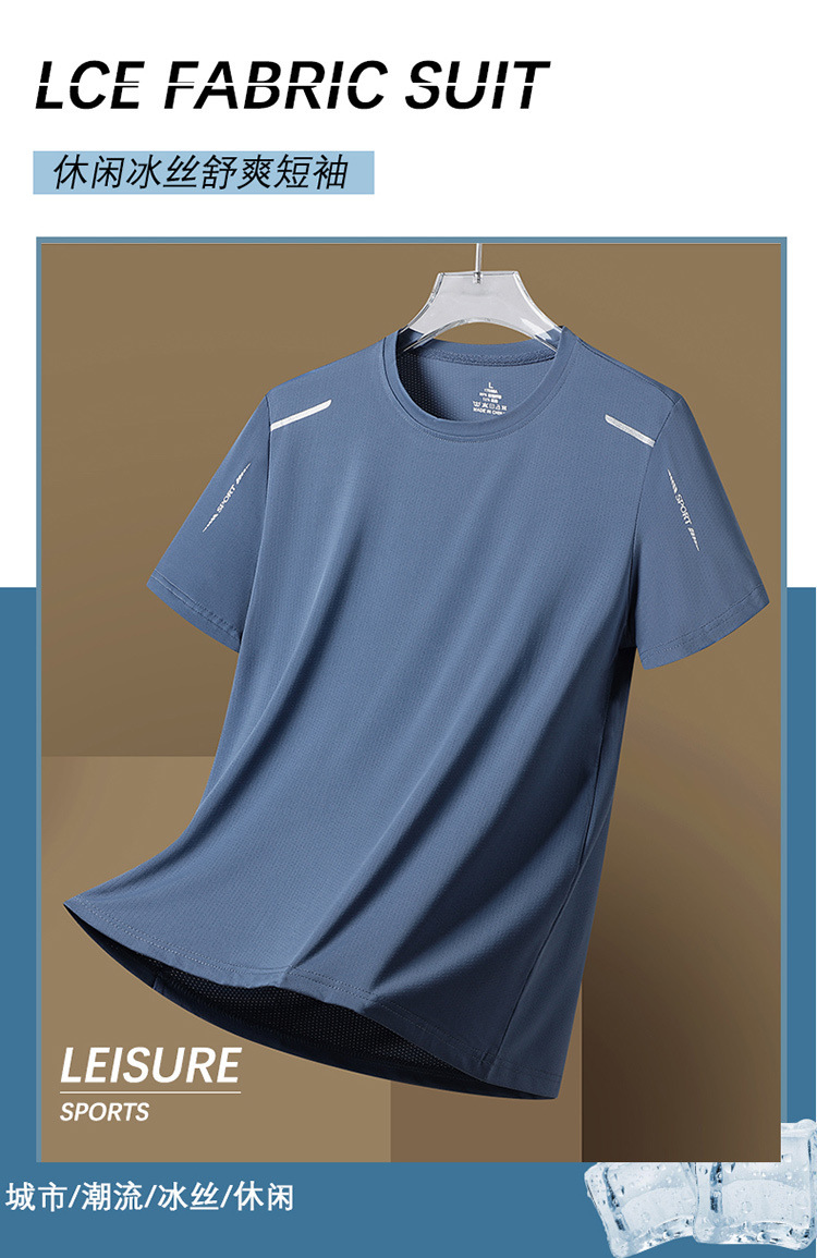 Verano hombre camiseta hielo rápido secado delgado deportivo casual ropa de gimnasio de manga corta suelta transpirable tendencia universal