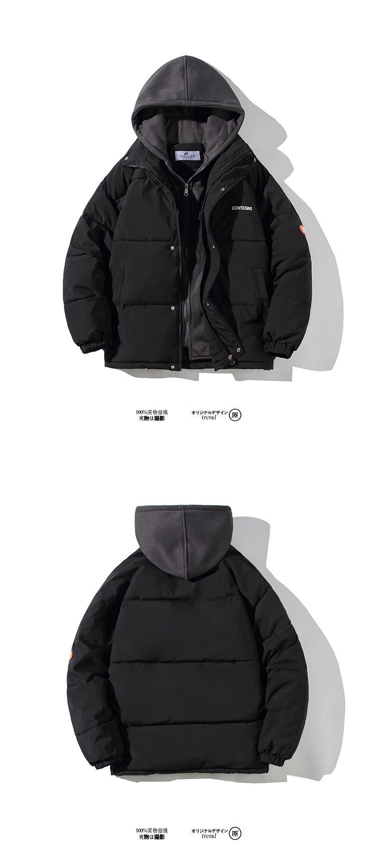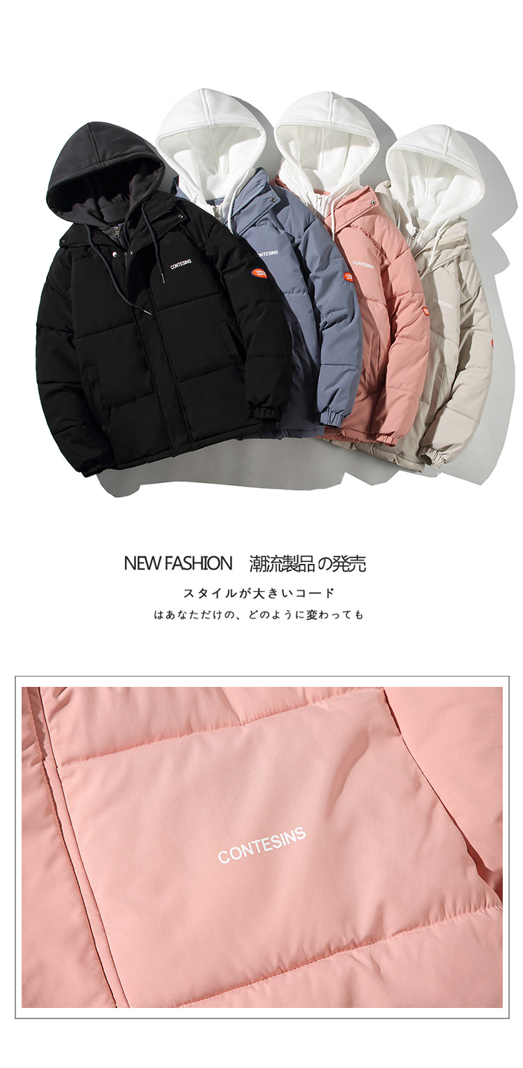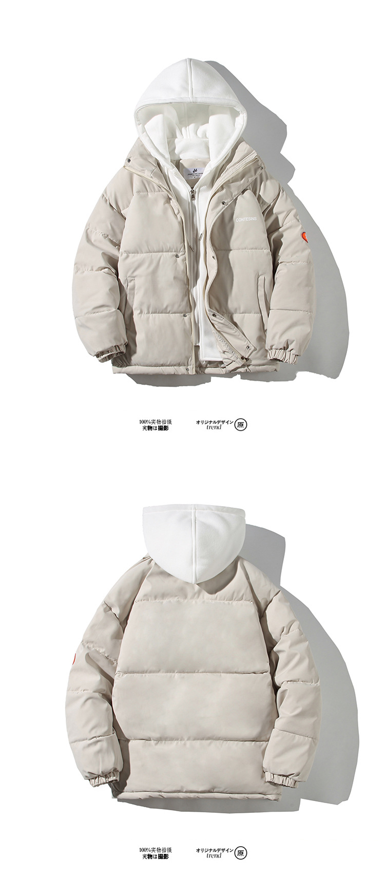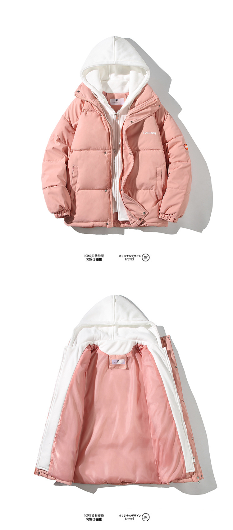 Invierno japonés nueva pareja de algodón falso dos piezas de algodón grueso joven hombre suelto abrigo con capuchón cálido