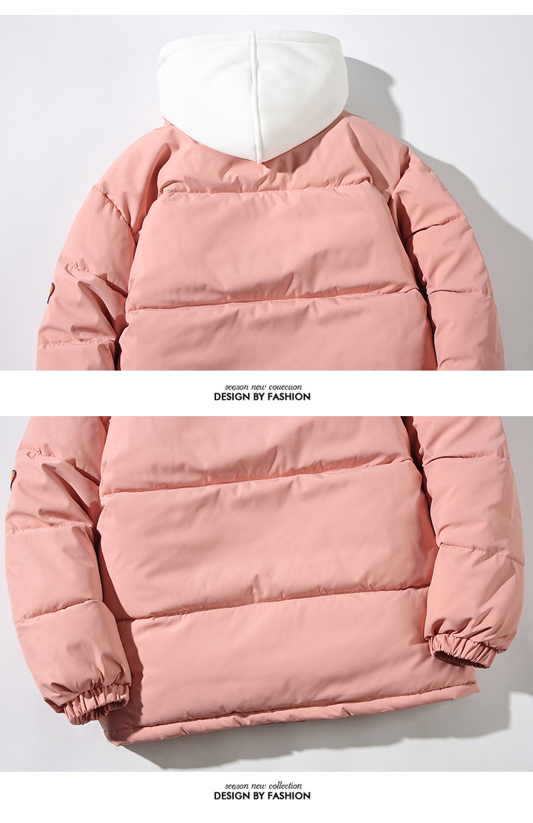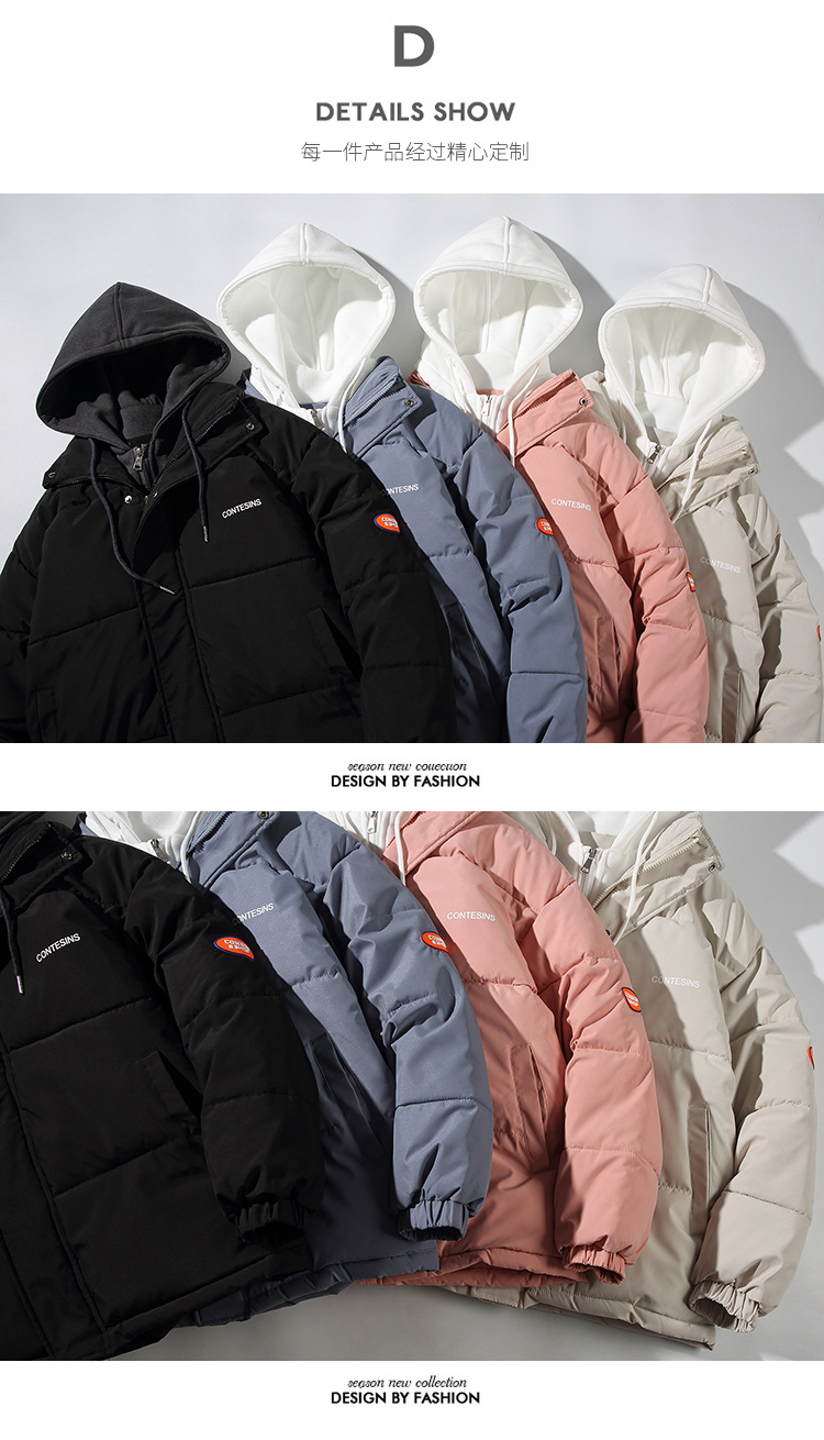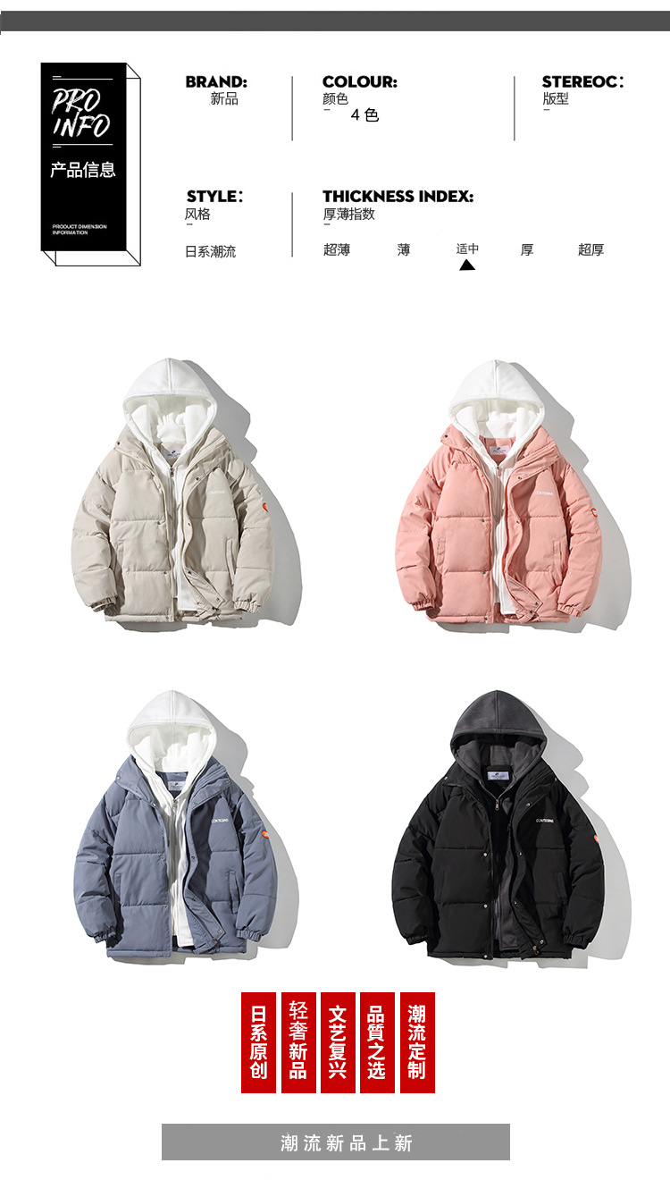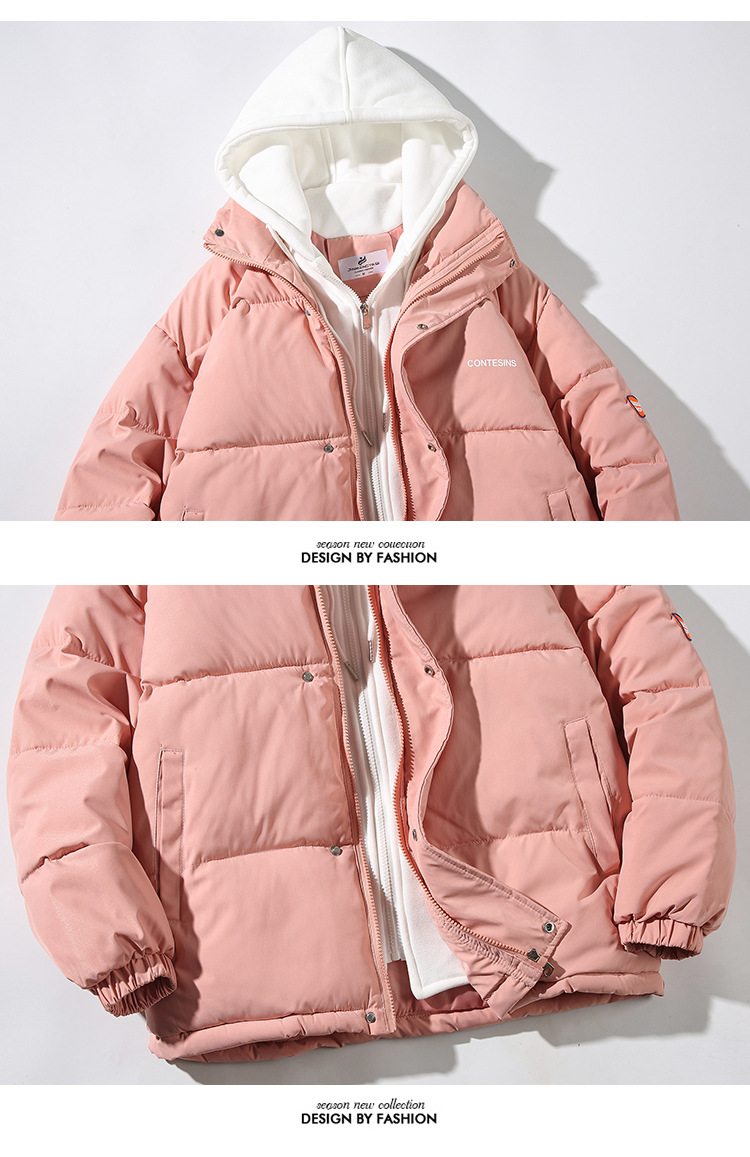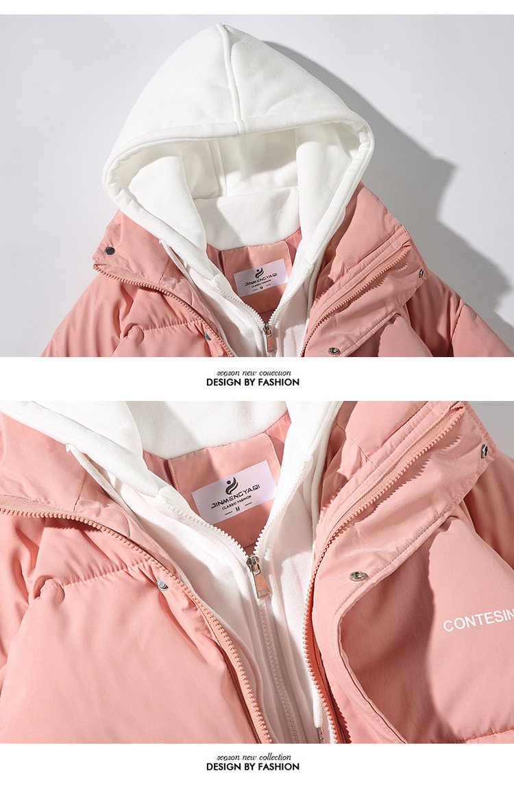 Invierno japonés nueva pareja de algodón falso dos piezas de algodón grueso joven hombre suelto abrigo con capuchón cálido