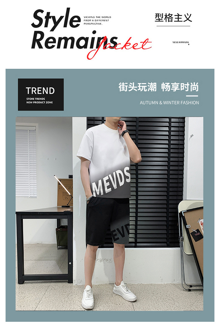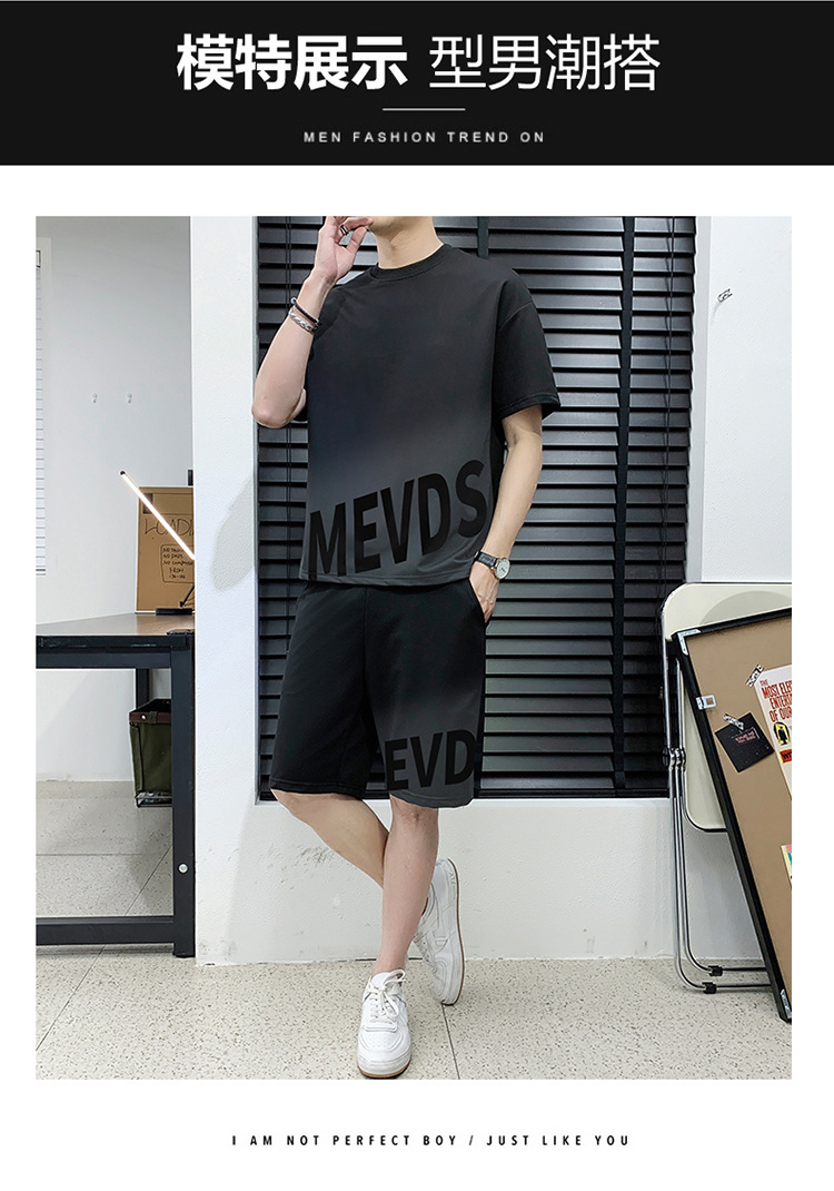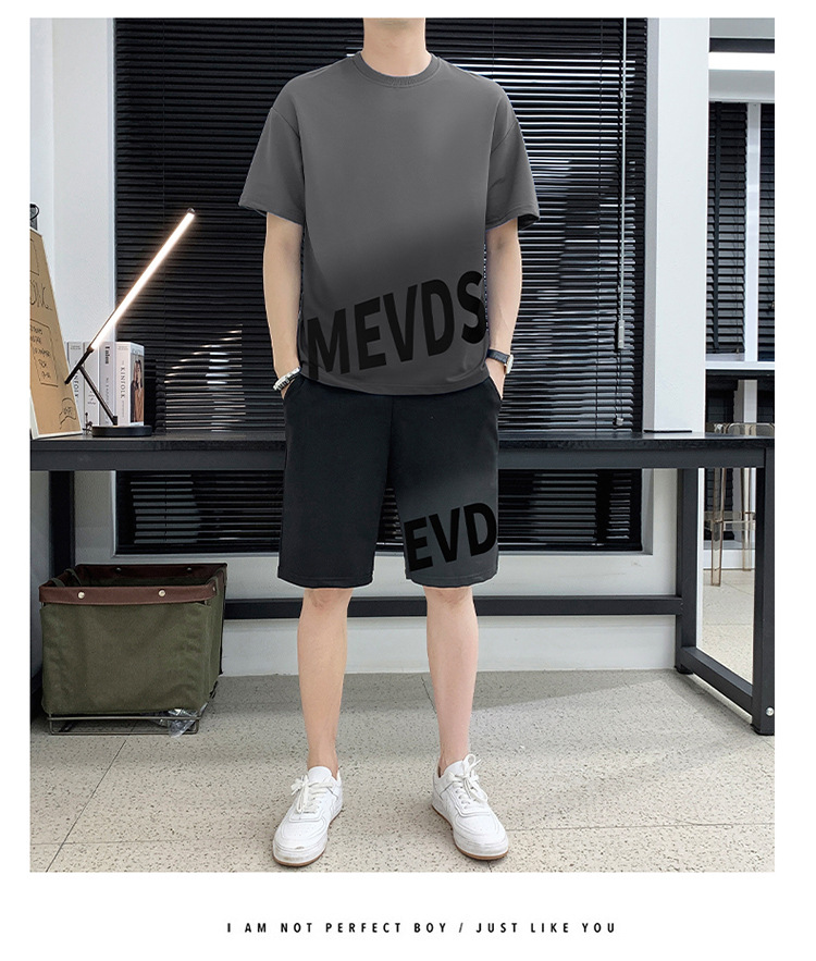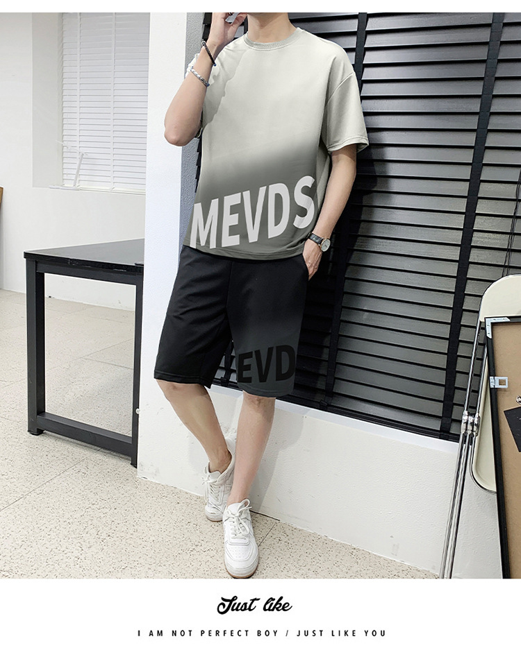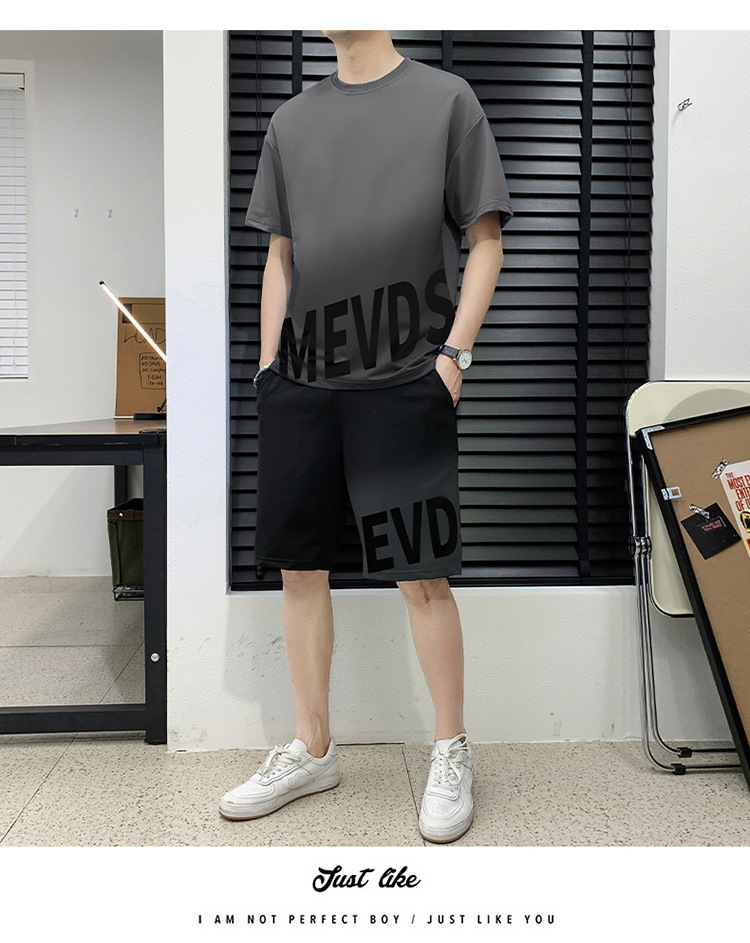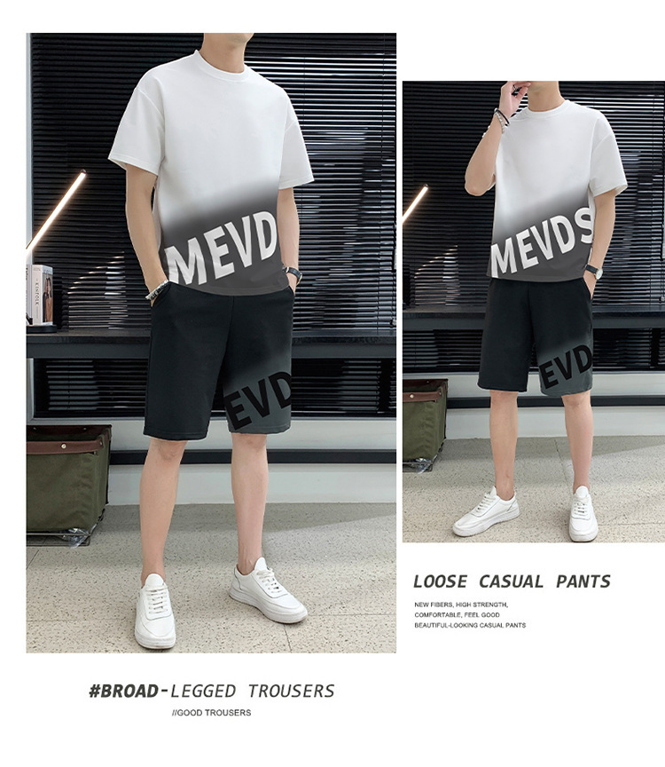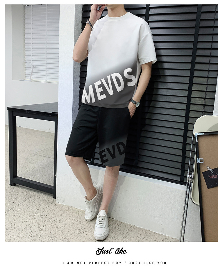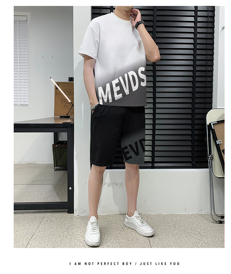 Verano hombre casual juego deportivo marca de tendencia grande suelto impresión de alta calidad juego de color gradiente