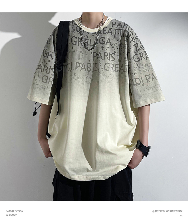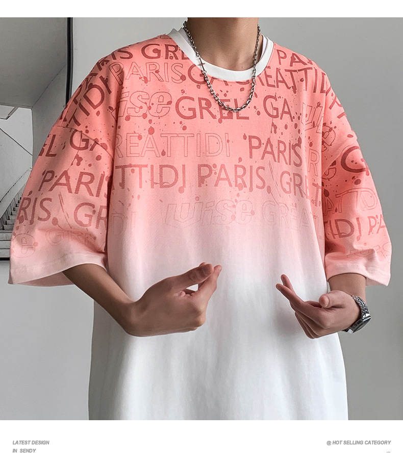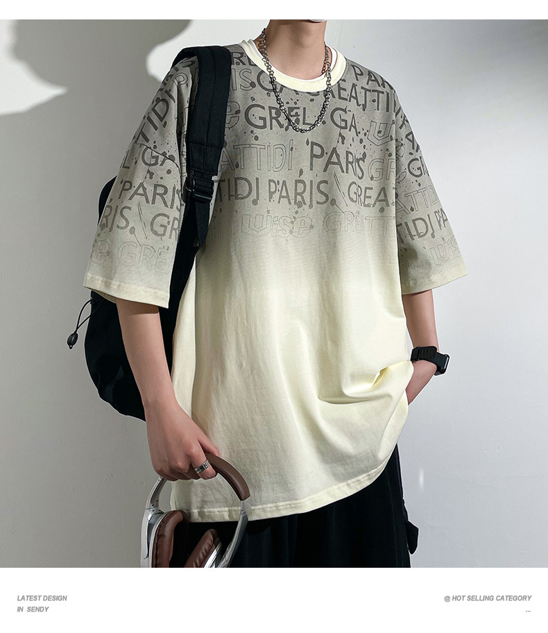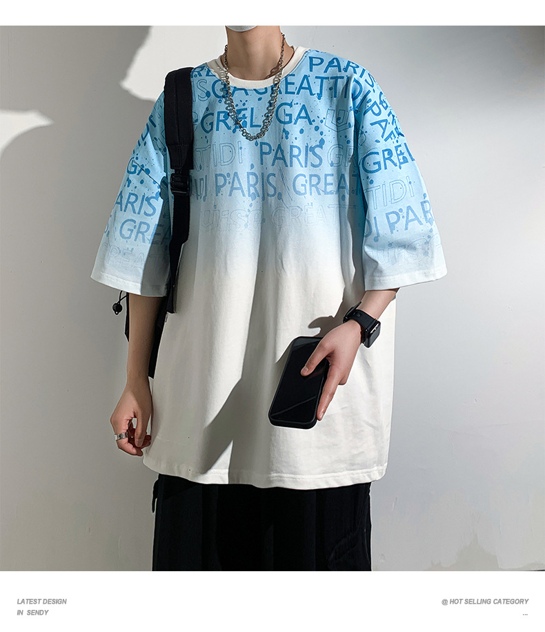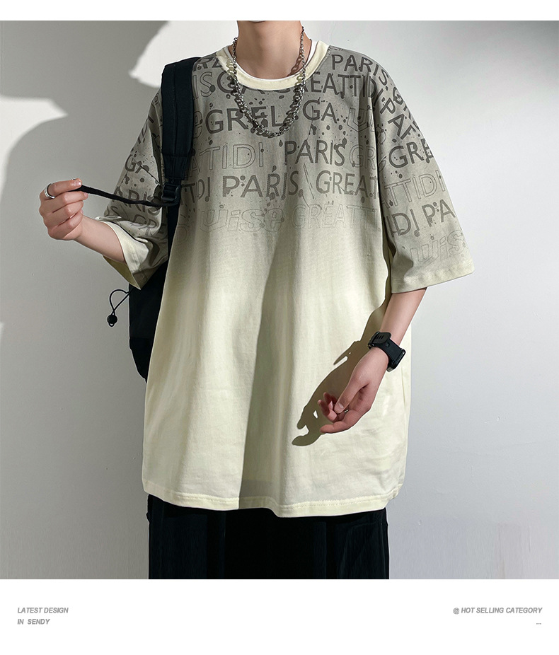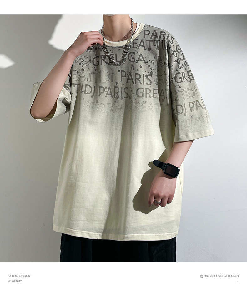 Hombre camiseta de manga corta Hong Kong vientos de tendencia camiseta de verano de cuello redondo camiseta de base casual suelta de cinco mangas para hombres