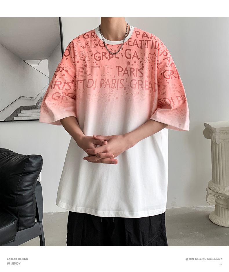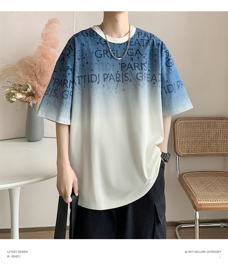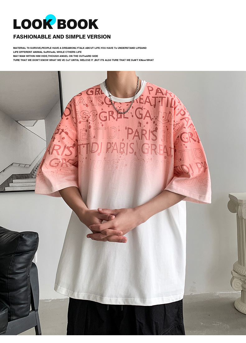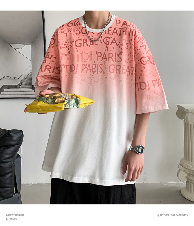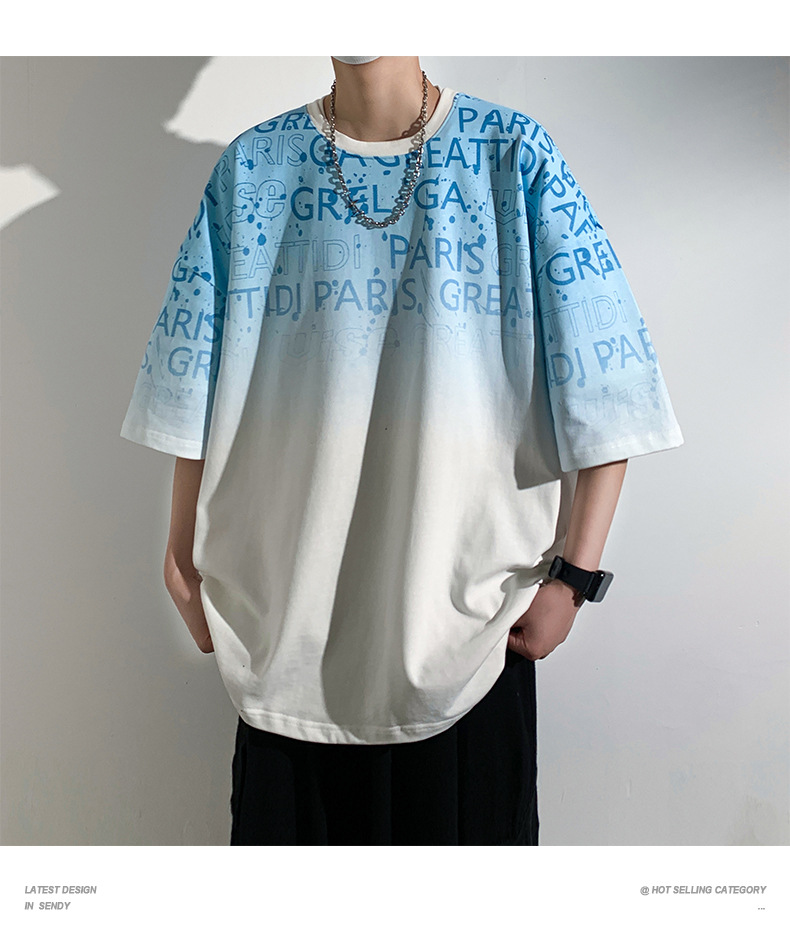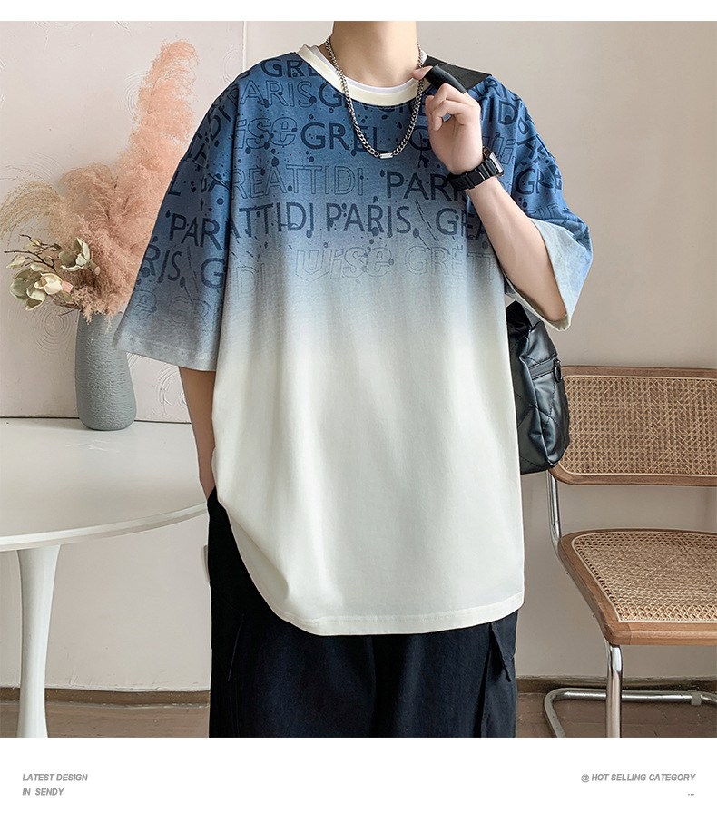 Hombre camiseta de manga corta Hong Kong vientos de tendencia camiseta de verano de cuello redondo camiseta de base casual suelta de cinco mangas para hombres
