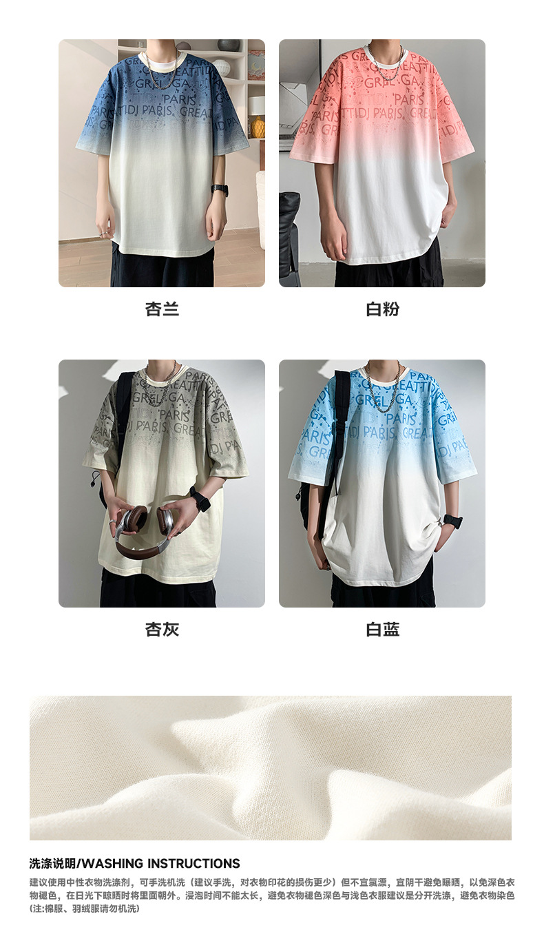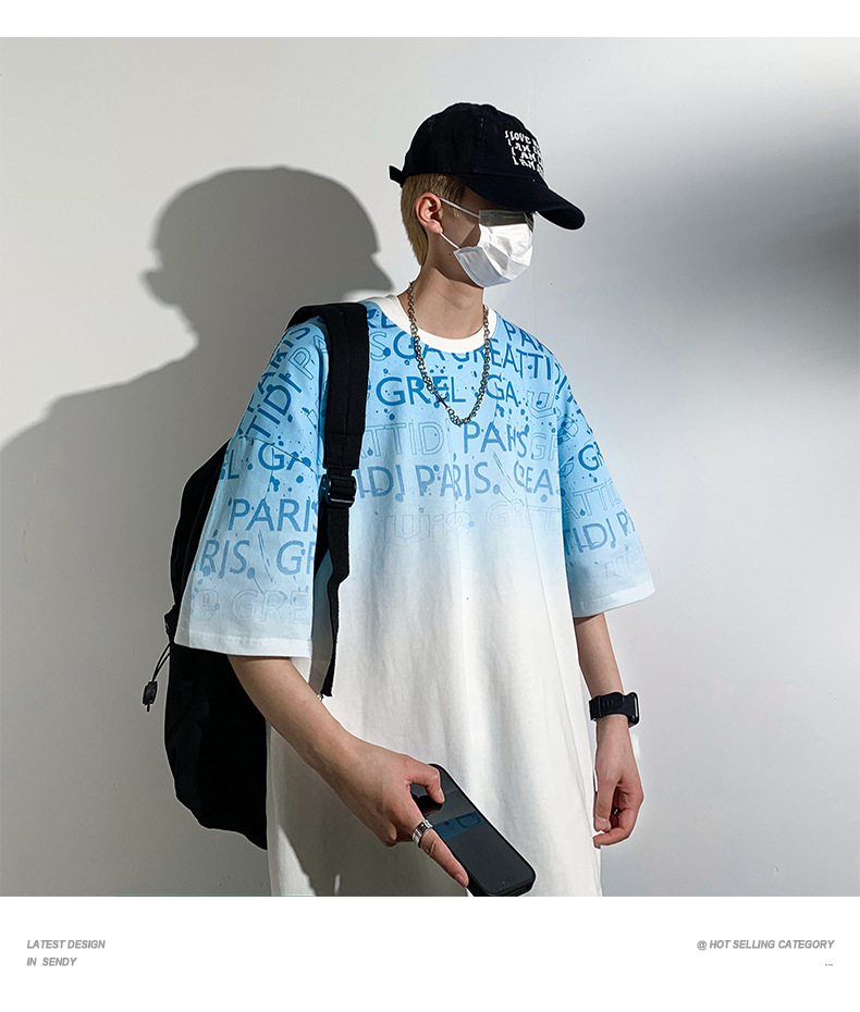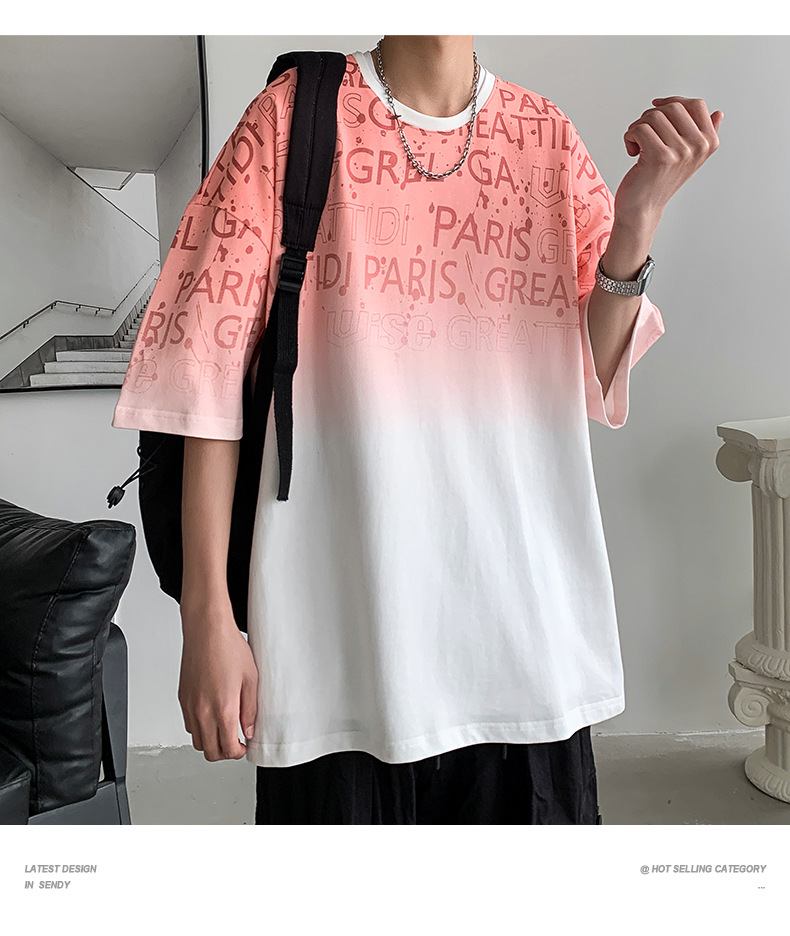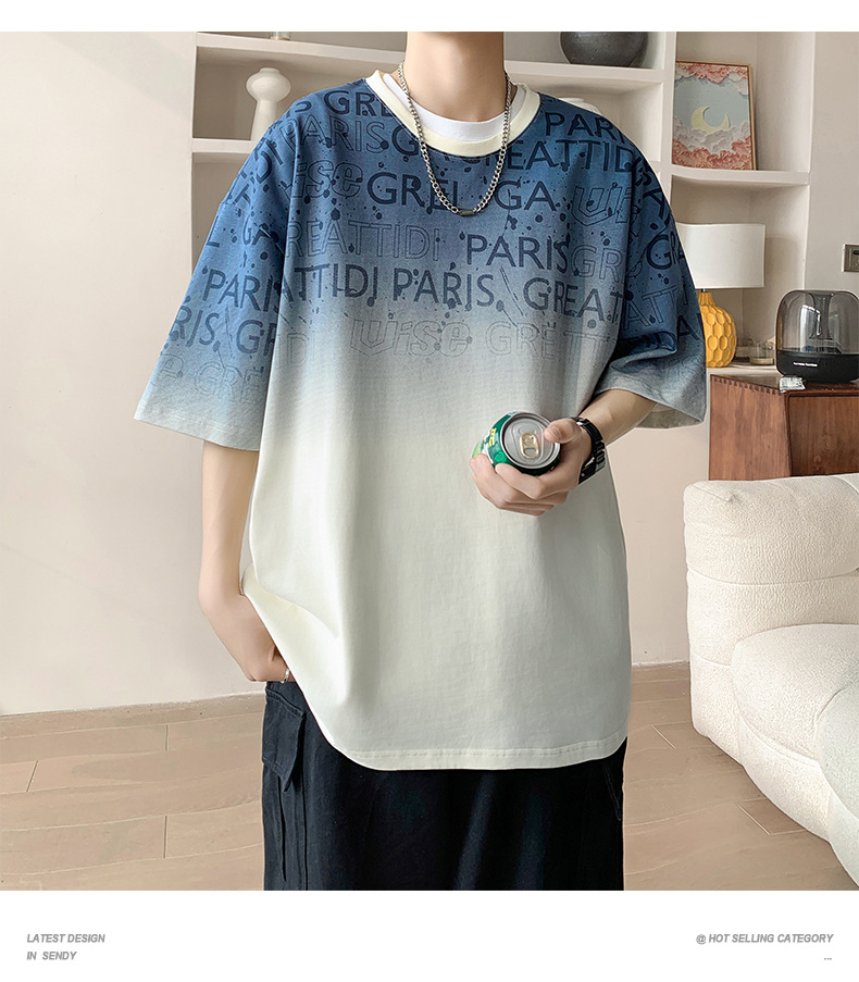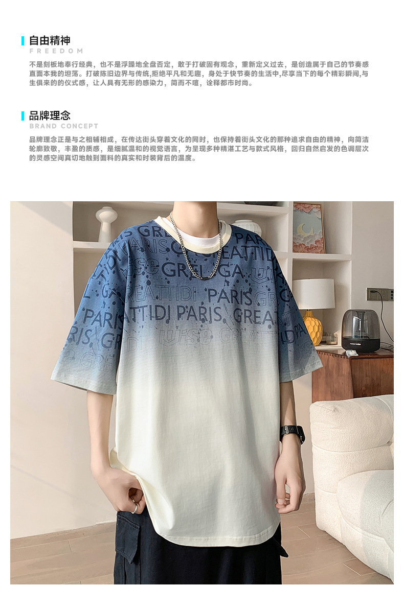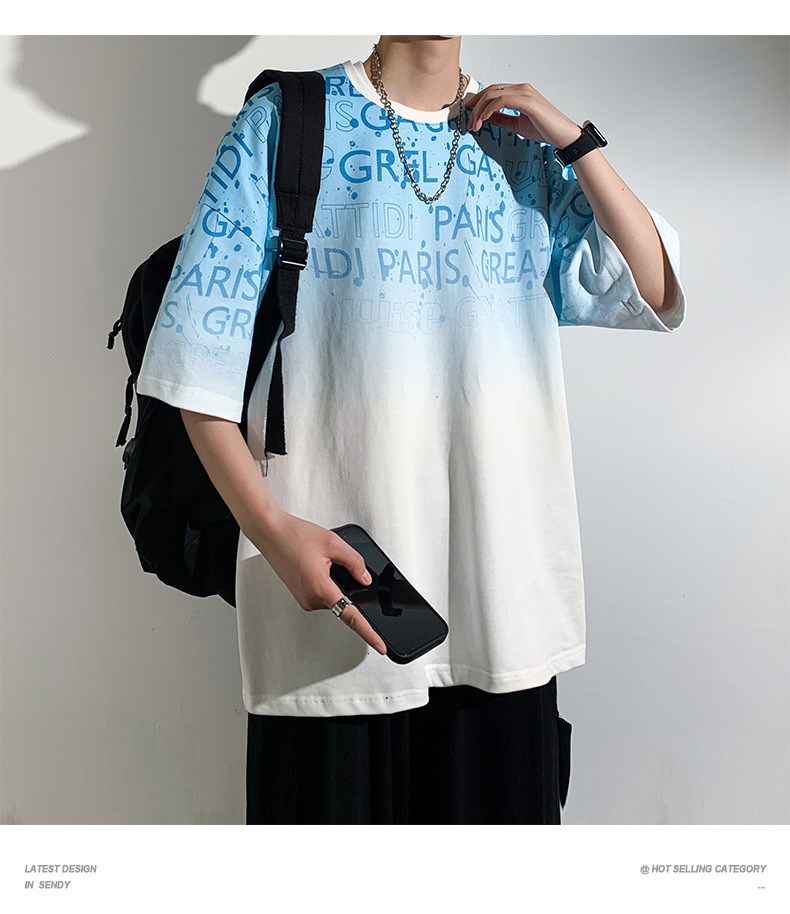 Hombre camiseta de manga corta Hong Kong vientos de tendencia camiseta de verano de cuello redondo camiseta de base casual suelta de cinco mangas para hombres