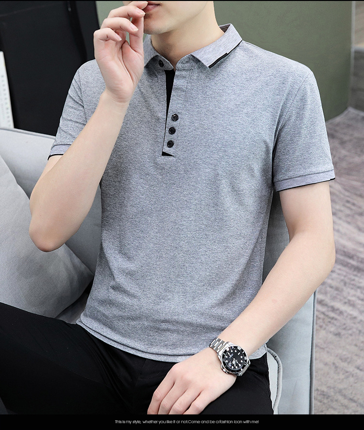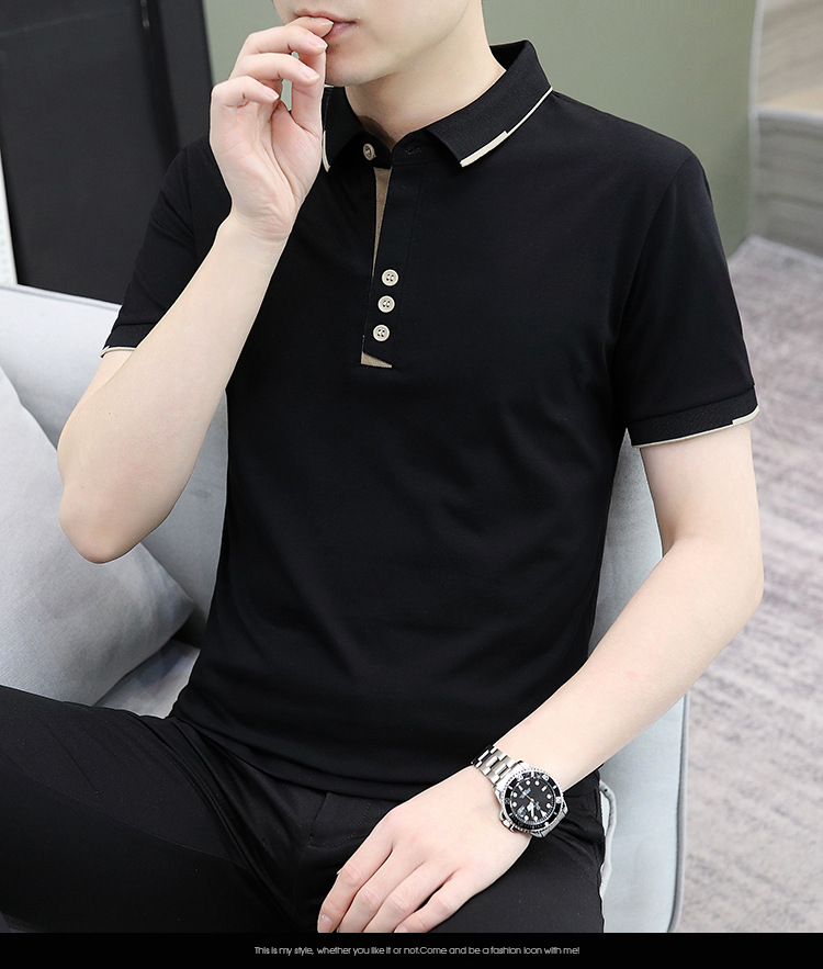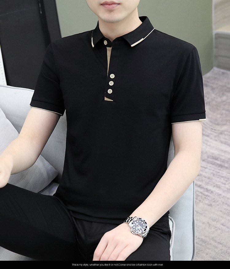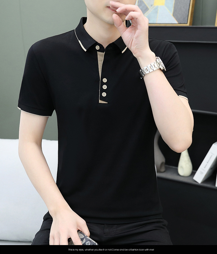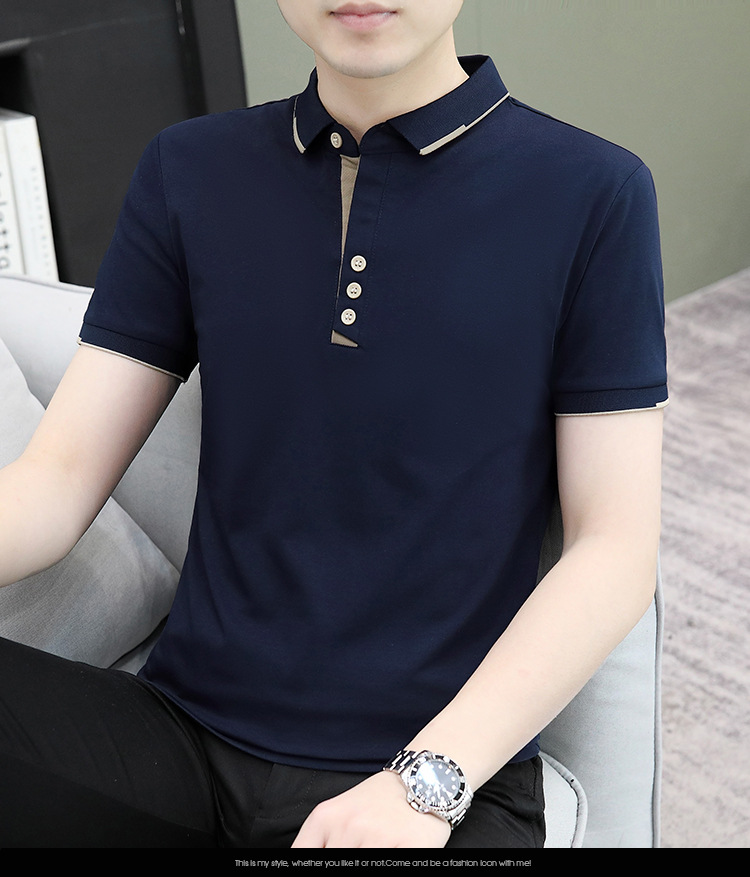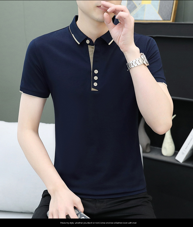Camiseta de algodón de hombre de manga corta Polo 2024 verano nuevo color sólido con solapa casual versátil camiseta de negocios de manga corta