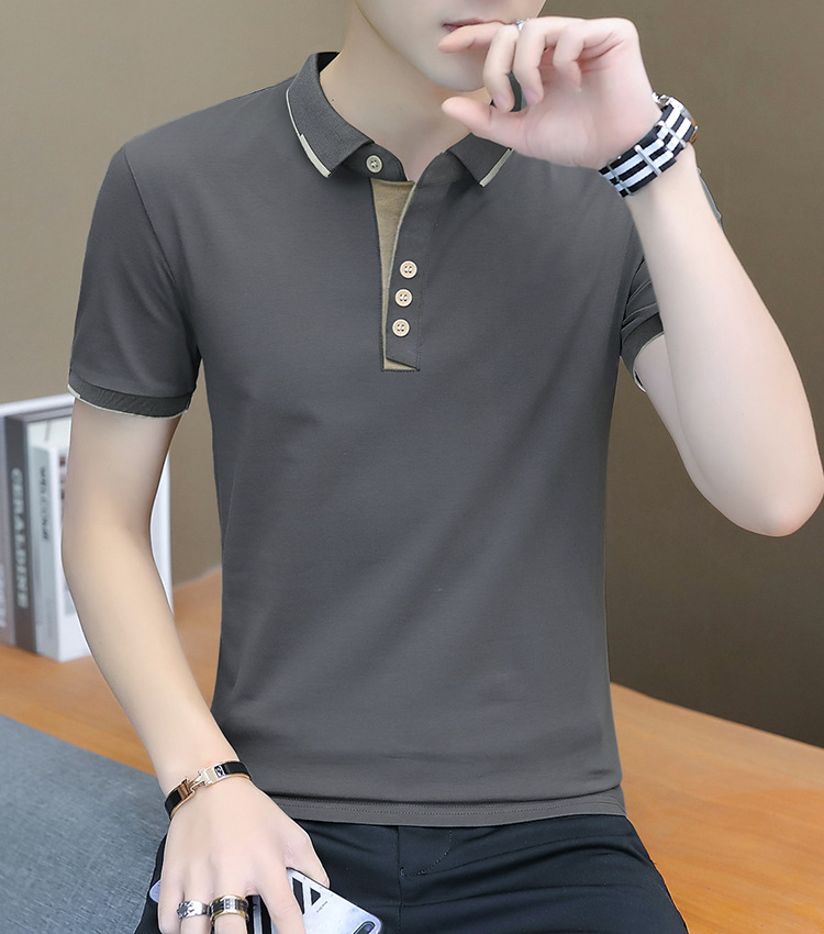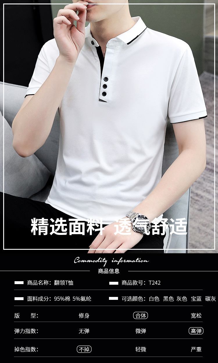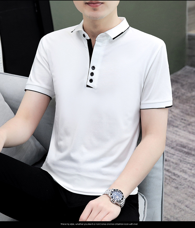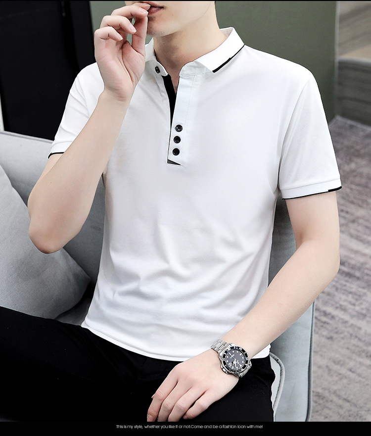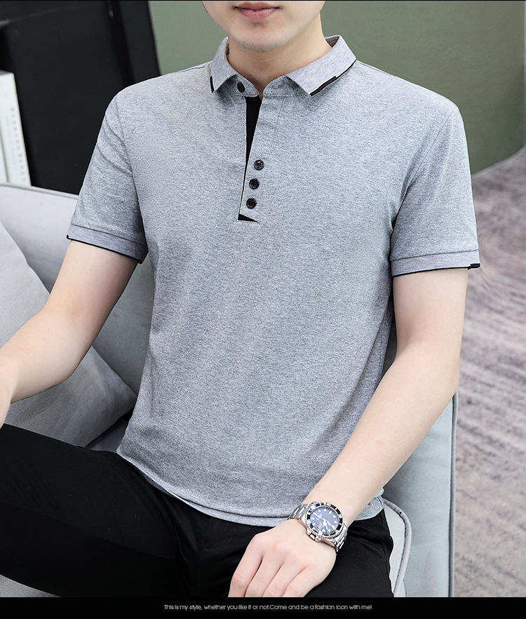 Camiseta de algodón de hombre de manga corta Polo 2024 verano nuevo color sólido con solapa casual versátil camiseta de negocios de manga corta