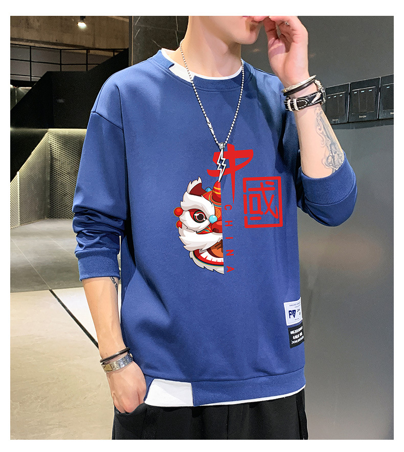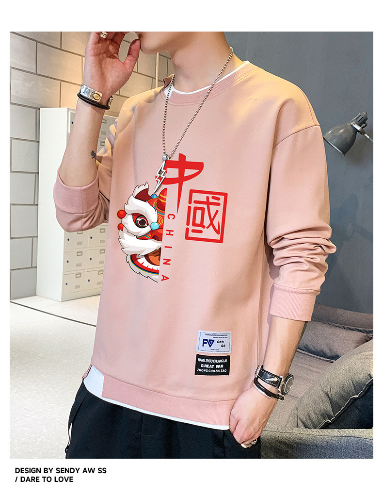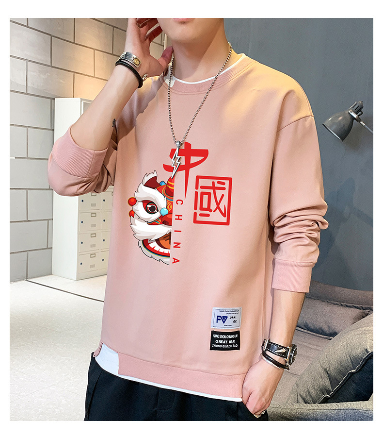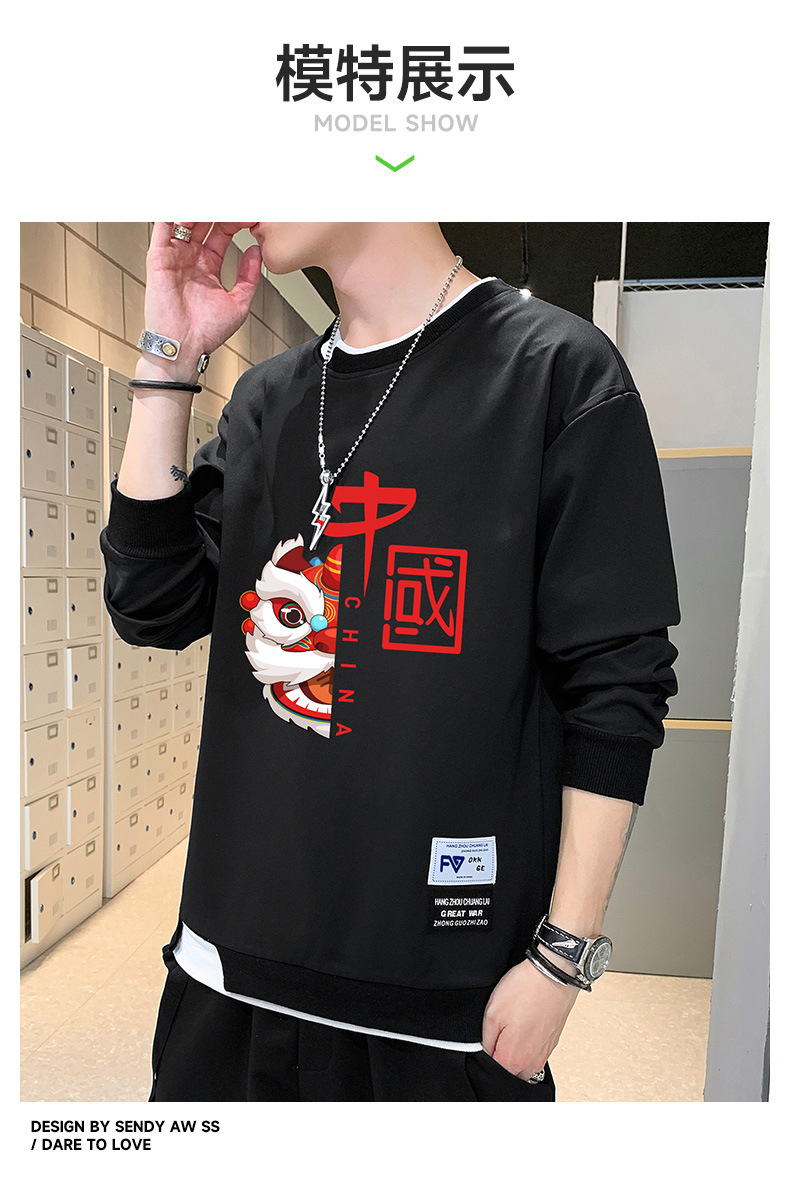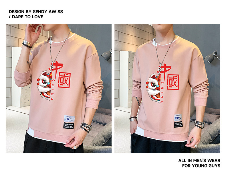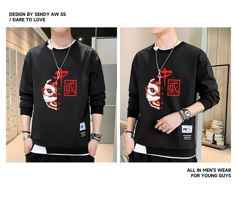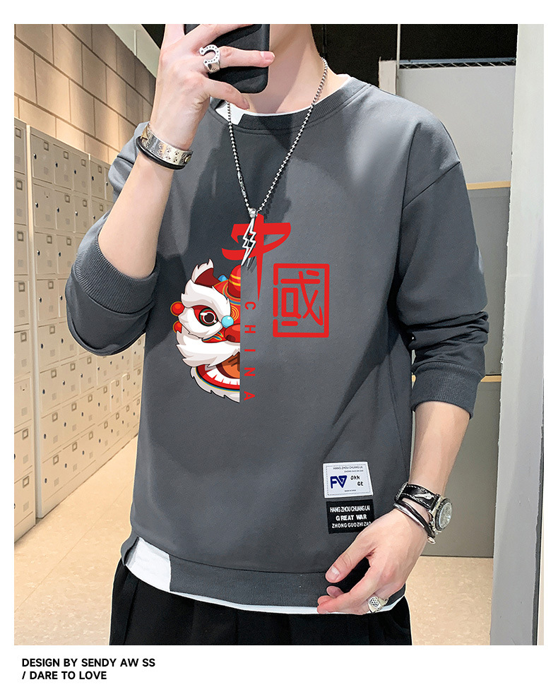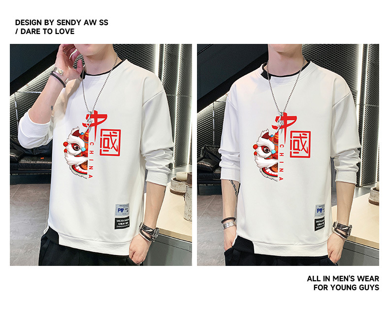 Primavera y otoño de hombre nueva camiseta de manga larga marca de moda masculina suelta camiseta de cuello redondo estilo de moda masculino de Hong Kong ropa de tamaño grande