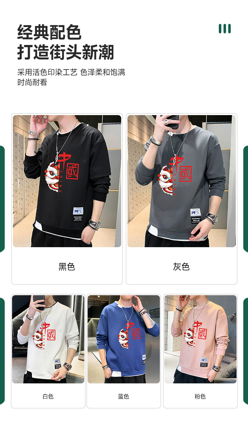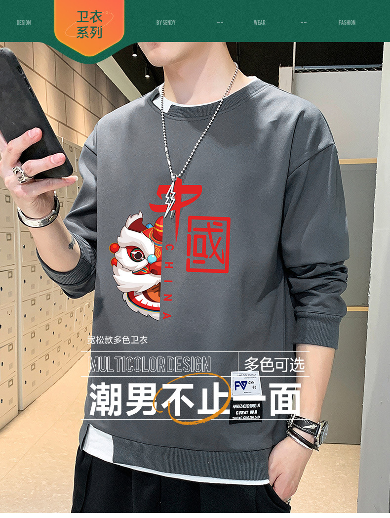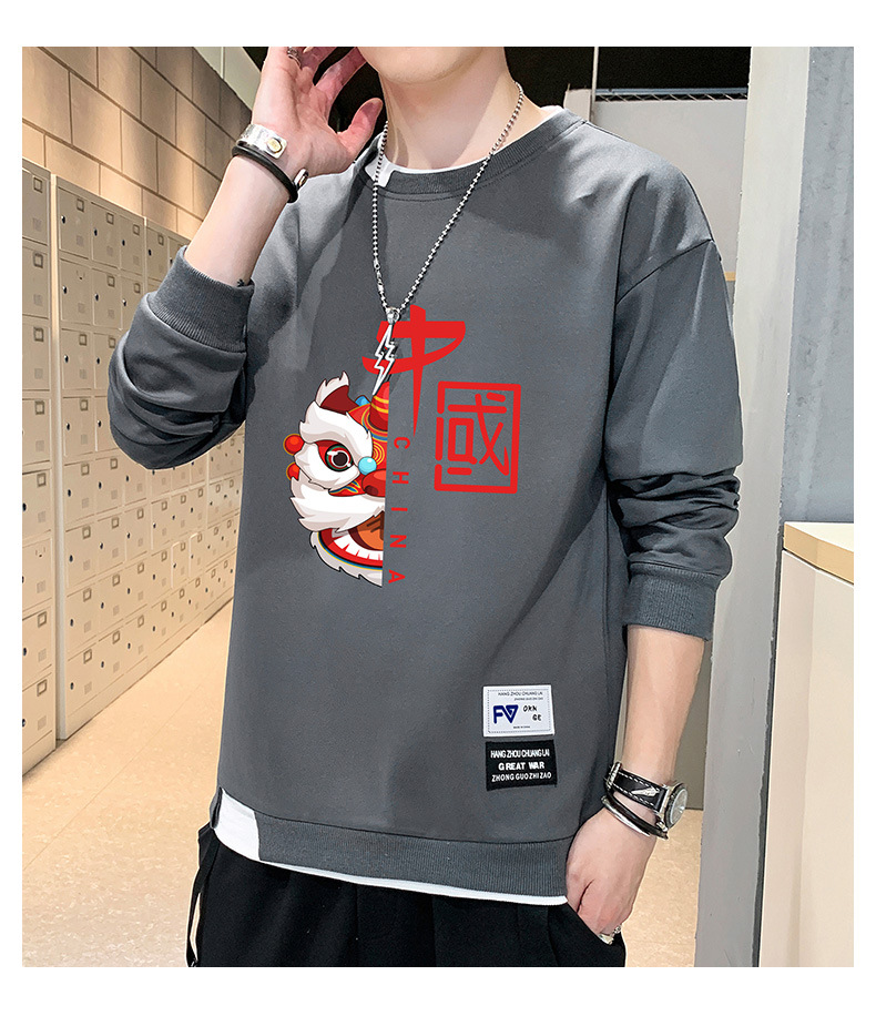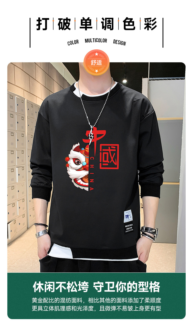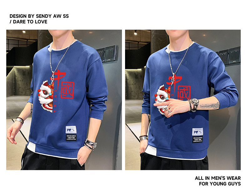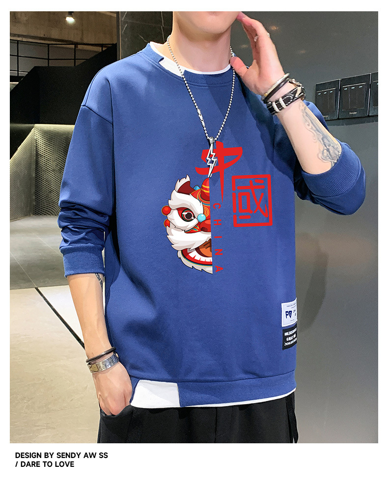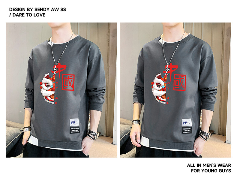 Primavera y otoño de hombre nueva camiseta de manga larga marca de moda masculina suelta camiseta de cuello redondo estilo de moda masculino de Hong Kong ropa de tamaño grande