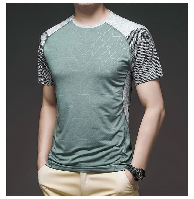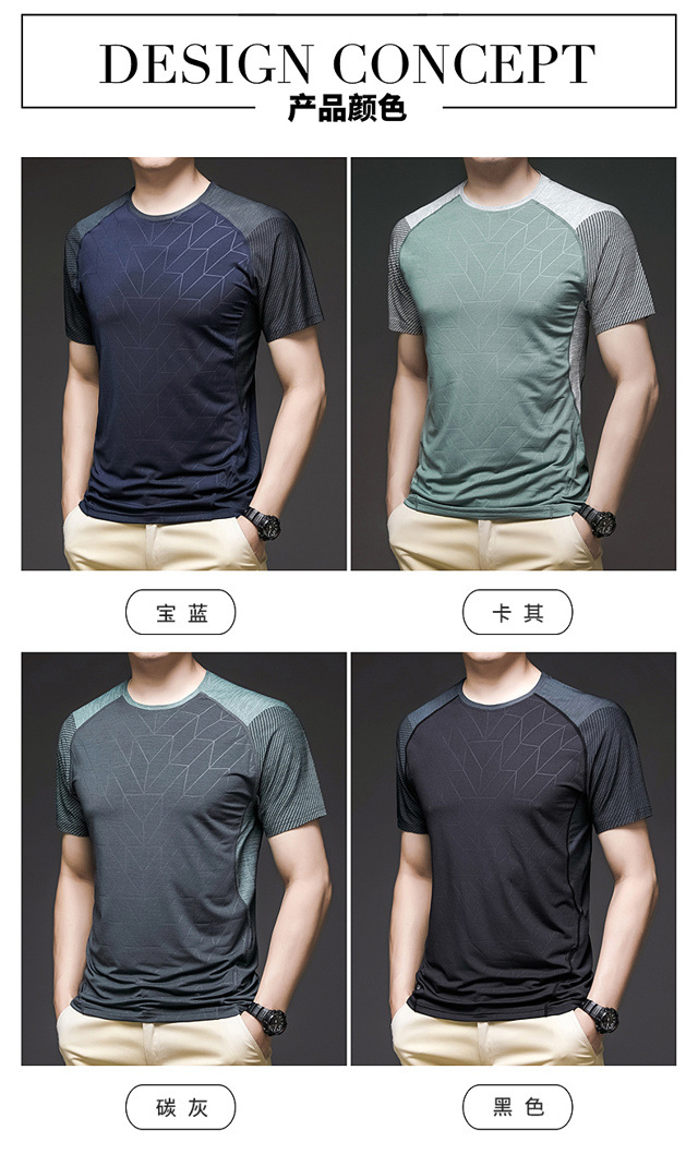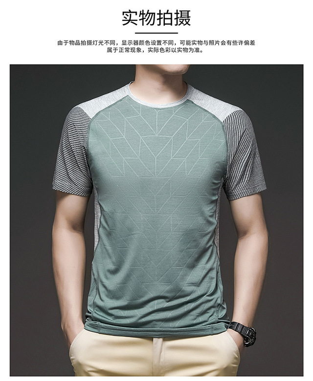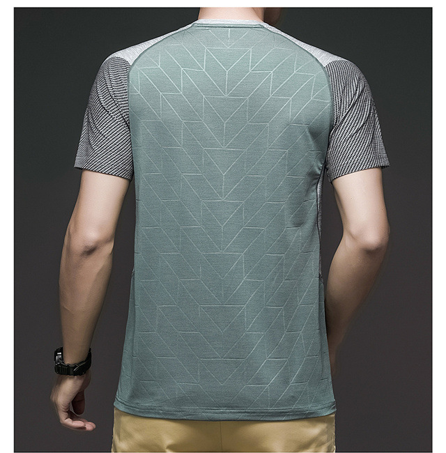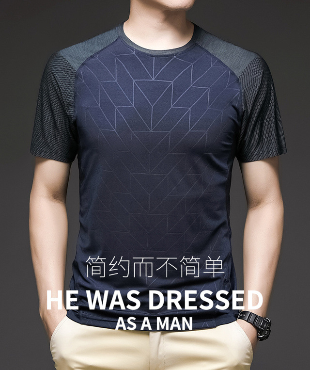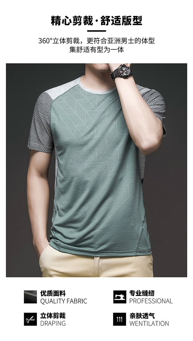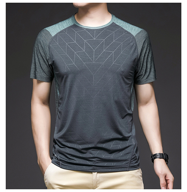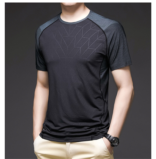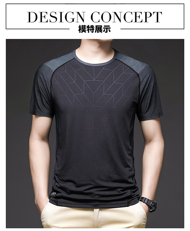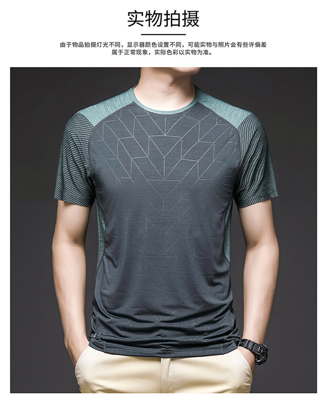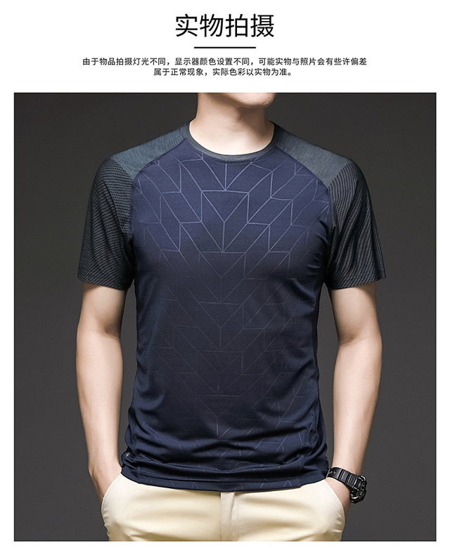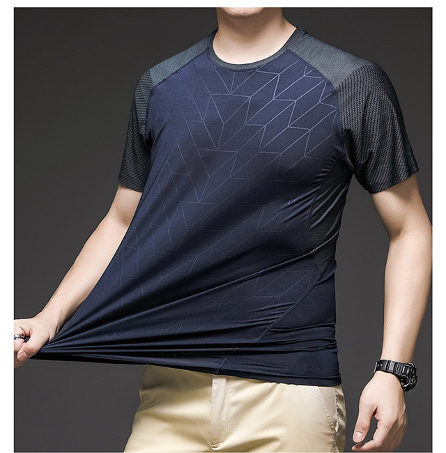 Camiseta de seda de hielo de manga corta para hombres, camiseta de secado rápido, estampado oscuro, moda de cuello redondo, nueva camiseta deportiva de fitness, delgada y transpirable.