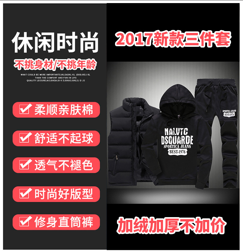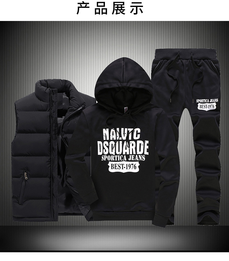 Otoño y invierno nuevos hombres encapuchados letras chaqueta chaqueta chaqueta de plumón chaleco de algodón chaleco de tamaño grande tres piezas set hombre